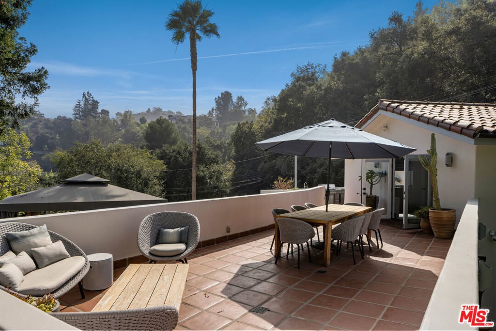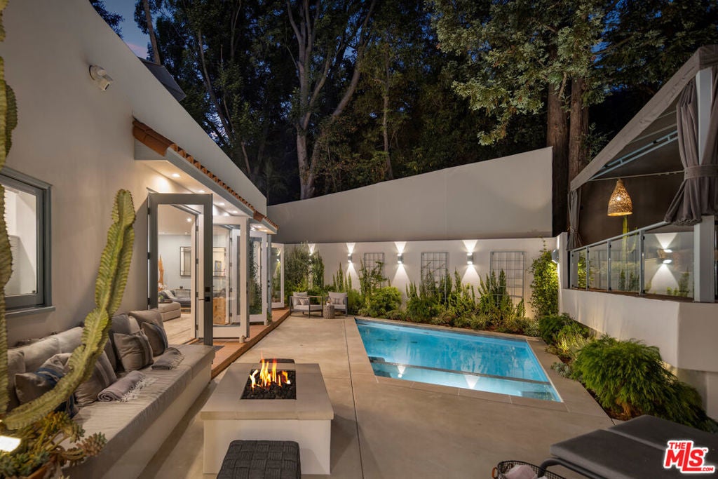 Nestled in the vibrant heart of Laurel Canyon, just minutes from the legendary Sunset Strip, this newly renovated ~3300sqft Spanish contemporary smart home embodies the essence of Hollywood Hills living. Located in the coveted Wonderland School District and eligible for Mulholland Tennis Club membership, this residence blends modern luxury with true bohemian spirit. The four bedroom and four bathroom main house features a spacious open-concept living and dining area, bathed in natural light, flowing seamlessly to an indoor-outdoor backyard oasis. Entertain effortlessly with a fire pit, pool & spa, and a rooftop BBQ & cabana lounge. The chef's kitchen boasts top-tier appliances, two luxurious primary suites offer spa-inspired ensuite bathrooms with steam showers, while a generous guest bedroom (with ensuite) and additional full bathroom on the main floor provide ample space for family or visitors. The detached two-car garage and extra private parking for two more vehicles, four spots in total, add convenience and functionality. The upstairs primary suite opens to a sun-soaked rooftop deck with treetop canyon views, perfect for sunset sound baths, morning yoga, or al fresco dining. The backyard boasts a separate ~600 sq. ft. guest house, complete with its own entrance, bedroom, bathroom, kitchen, and private outdoor space. Live the California dream in the canyon, where timeless charm meets contemporary elegance. Also available furnished - please inquire.