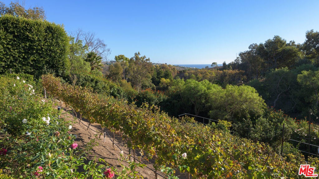 Welcome to an exceptional luxury estate where elegance meets breathtaking views. Upon arrival, a circular driveway with a double-gated entry leads you through beautifully manicured lawns and pristine landscaping. The stately approach ascends to a grand front porch, offering commanding mountain vistas. A double-door entry invites you into a foyer with soaring ceilings, recessed lighting, and crown molding, set against the backdrop of stone tile floors and expansive front windows.Straight ahead, sliding wood doors reveal a formal living room with two-story ceilings, a grand stone fireplace, and sliding glass doors that vanish into pocket walls, opening to an ocean-view deck stretching the length of the home. Adjacent, the formal dining room features a sparkling chandelier, French windows, and a balcony overlooking the lush front yard.The family room boasts high-beamed ceilings, an entire wall of built-ins, and another grand fireplace. It, too, opens onto the expansive deck, offering both private and shared dining areas, all with sweeping ocean views. The gourmet kitchen is a chef's dream, with stone counters, a six-burner range, double ovens, and a large island with bar seating. Adjacent, a sunlit breakfast room with rounded walls and cathedral ceilings opens to the deck through French doors.An impressive home theater await that includes plush seating, a concession room, and direct backyard access. Nearby, a wine cellar with a tasting room sets the stage for intimate gatherings. The entertainment room, complete with a wet bar and billiards, offers seamless access to the outdoor oasis.The home's private quarters include multiple luxurious bedrooms, each with en-suite bathrooms and panoramic views. The master retreat is a sanctuary with wood floors, a chandelier, and a private deck overlooking both the ocean and pool. The two spa-like master baths feature a freestanding tub, marble shower, and double extensive closets.The backyard is an entertainer's paradise. Multiple lounging and dining areas, a sport court, and a rectangular pool with an in-ground Jacuzzi are framed by ocean views. Outdoor amenities include a fully equipped kitchen, fire pit, and pergola-covered dining space. Beyond, a serene garden with box planters, citrus trees, and even vineyards complete the estate's lush grounds.With a three-car garage and space for over 15 vehicles for guest parking, cutting-edge security systems, and meticulous design throughout, this estate offers unparalleled luxury and privacy in an extraordinary setting.