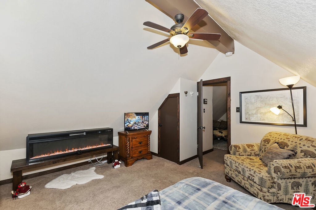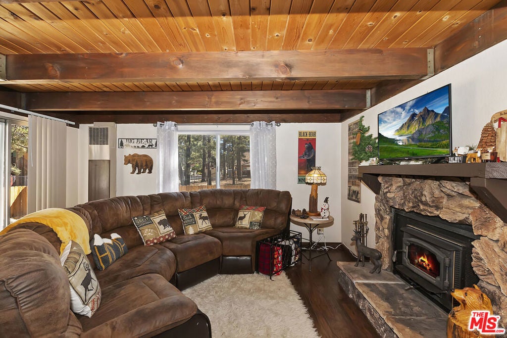 Turnkey, fully furnished, and ready just in time for the snow season, this beautifully remodeled Big Bear cabin is the perfect mountain retreat or short-term rental investment. Thoughtfully upgraded for comfort and peace of mind, the home features a new fiberglass front door (2024), updated electrical (2021), a new water heater (2022), a newer roof (approximately six years old), and a spacious Trex deck installed (2021) ideal for enjoying fresh mountain air, colorful sunsets, and clear starry skies. A washer and dryer are also included, and the property comes with a seller-paid First American Home Warranty valid through February 2026. Located on a desirable corner lot with easy access via HWY 38, the home welcomes you with an open-concept living area, vaulted A-frame ceilings, and a cozy wood-burning fireplace perfect for relaxing after a day on the slopes. The updated kitchen boasts stainless steel appliances, a built-in wine rack, and stylish newer flooring, making it as functional as it is inviting. Two loft-style sleeping areas provide flexible accommodations, with a queen bed and full-size futon, great for hosting guests. Just minutes from ski resorts, Big Bear Lake, hiking trails, the Village, and the zoo, this cabin puts you close to all the best local attractions while offering the comfort and charm of a private retreat. Whether you're searching for a peaceful vacation home or an investor seeking a high-demand Airbnb, this property offers a rare turnkey opportunity. Don't miss your chance to own this move-in-ready mountain gem before the winter season hits full swing!
