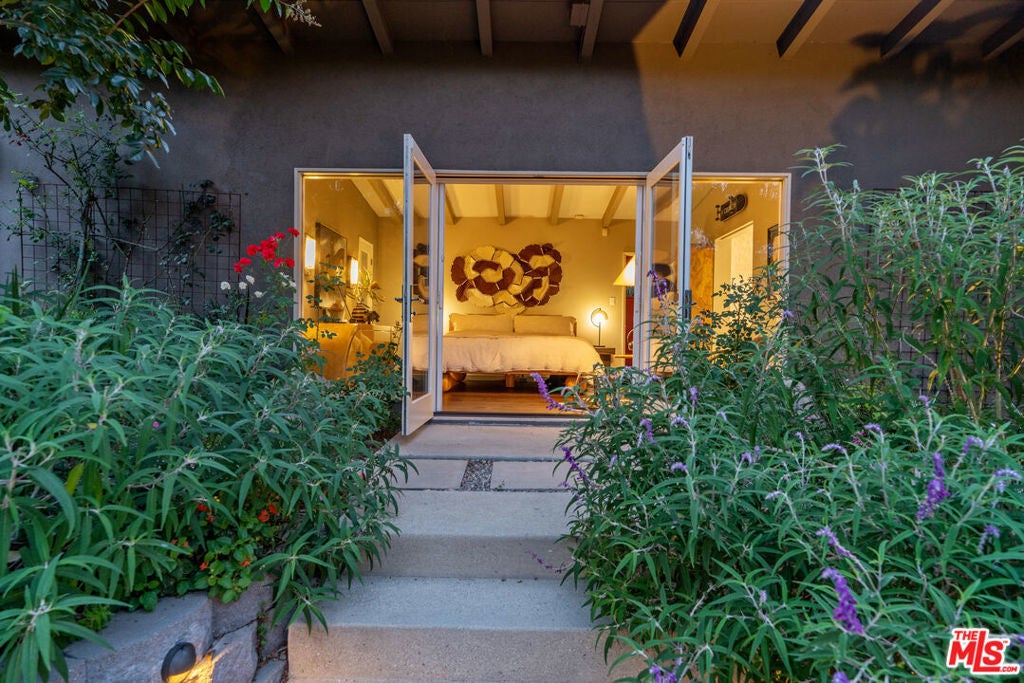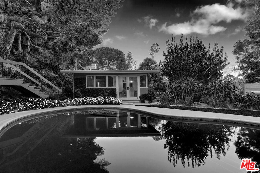 The Rodenberg Residence | c.1954 Mid-Century Modern Masterpiece | Secluded within the storied hills of Laurel Canyon, the Rodenberg Residence is a true Mid-Century Modern retreat designed in 1954 and privately tucked behind gates on an expansive double lot. A rare find, this Palm Springs inspired Post & Beam offers the kind of privacy and architectural pedigree that defines the Hollywood Hills celebrity lifestyle. Walls of glass invite the outside in while preserving a serene sense of seclusion, flooding the interiors with natural light and framing canyon and garden views. The open living space anchored by a sculptural fireplace and custom built-ins feels both expansive and intimate, ideal for quiet evenings or chic entertaining. The skylit chef's kitchen, outfitted with stainless appliances, is designed for gatherings that flow seamlessly out to the pool and deck. Here, the classic kidney-shaped pool and generous terraces create a private oasis for sun-drenched afternoons or starlit nights. The primary suite is a sanctuary within a sanctuary complete with a spa-like bath and doors that open directly to a discreet outdoor hot tub, perfectly hidden for private moments of relaxation and escape. With rear access to a private two-car garage from a concealed shared drive, this residence offers both convenience and discretion. The Rodenberg Residence is more than a home it is an architectural hideaway, where Mid-Century glamour meets ultimate privacy in the Hollywood Hills.