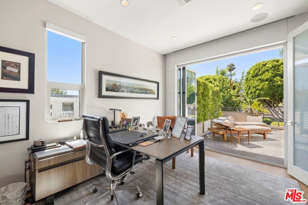 Tucked behind gates and surrounded by mature greenery, this ultra-private modern retreat sits on one of West Hollywood's most coveted blocks and epitomizes indoor-outdoor living at its finest. Just moments from Beverly Hills, the residence has been reimagined by its current owner to evoke the experience of a world-class luxury hotel. A foliage-lined entry leads into a hidden garden, a magical courtyard oasis that flows effortlessly into the living room. The first floor embraces a true open-concept design, with interiors that seamlessly expand to the front and rear gardens, creating a sanctuary of light, privacy, and calm. Wide-plank hardwood floors and a sleek fireplace anchor the living room, while the chef's kitchen dazzles with Miele appliances, a large island, and custom cabinetry. The adjacent dining and family room open onto a backyard escape complete with a covered, heater-equipped lounge, a sparkling pool with fountain, and a spa-all enclosed by soaring hedges for total seclusion. The attached garage, currently configured as a bespoke storage suite, offers flexibility for additional living, creative, or fitness space. Upstairs, the primary suite is a study in luxury, with abundant custom closets (including a converted third bedroom), refined window treatments and built-ins, a balcony, and a marble spa-like bathroom with dual sinks and a glass-enclosed shower. The second bedroom is bathed in natural light and spills onto a romantic rooftop patio. Additional amenities include a Control4 home automation system, motorized blinds throughout, and a comprehensive security system with cameras. Set in an unmatched central location, the home is minutes from the acclaimed dining, shopping, and nightlife of Robertson, Melrose, and Beverly Hills.