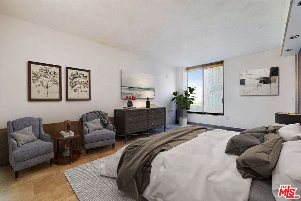 An exceptional opportunity awaits along the prestigious Wilshire Corridor. This 2-bedroom, 2-bathroom condo is ready for your vision and design, offering the perfect canvas to customize your dream residence. The unit features an open concept floor plan with sliding glass doors that open to a private balcony providing natural light. Located in a full-service mid-rise building, residents enjoy premier amenities including 24-hour valet and concierge, a rooftop lounge with BBQ and panoramic vistas, pool, spa, and a well-appointed fitness center. Additional features include in-unit laundry, 2 side-by-side parking spaces in the controlled access garage, plus storage lockers above the parking spaces. Ideally situated near world-class shopping, dining, and entertainment, this property combines unmatched potential with the convenience of one of Los Angeles' most desirable locations. Purchasers may use any lender they choose to finance the purchase of a property. However, the seller requires that all non-cash offers must be pre-qualified by NewRez Home Loan Division prior to offer acceptance. To help visualize this unit's floor plan and to highlight its potential, virtual furnishings may have been added to photos found in this listing.