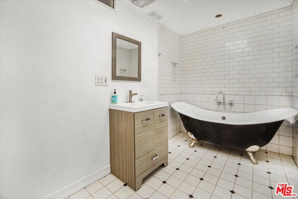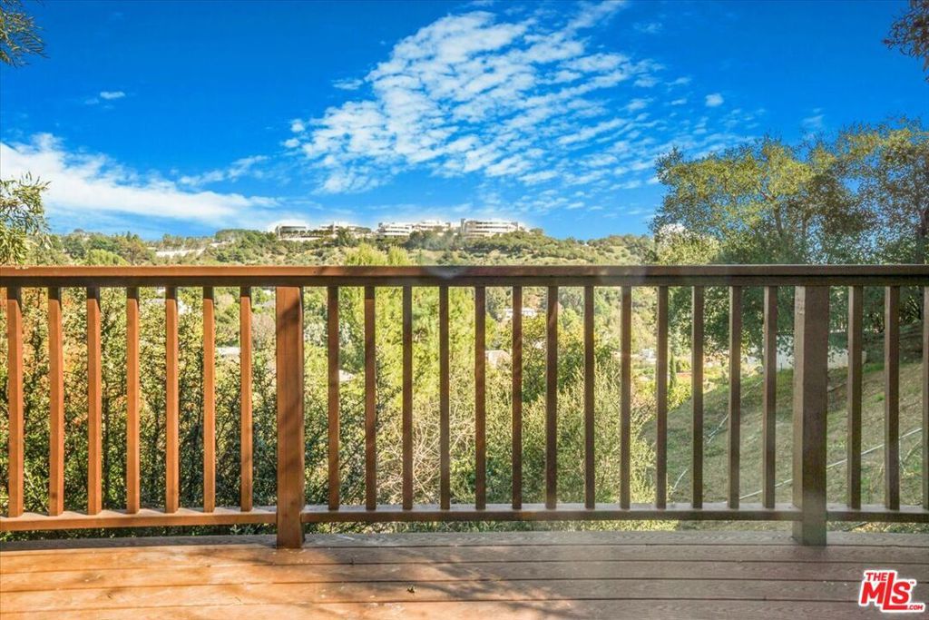Enter into a spacious great room adorned with a stunning stone fireplace, stone flooring, and soaring pitched beamed wood ceilings enhanced by skylights and recessed lighting. Expansive windows and sliding glass doors seamlessly connect the indoor space to a large deck with a hot tub, where you can soak in breathtaking panoramic views of the Getty Museum. The kitchen boasts brand-new appliances, perfect for culinary enthusiasts. The primary suite offers direct deck access, ample closet space, and an elegantly designed bathroom, featuring floor-to-ceiling designer tile, a luxurious claw-foot tub, and a separate shower. Additional highlights include a skylight in the secondary bathroom and direct entry to a spacious two-car garage where the washer and dryer are located. No sign is on the property. Another house 1 bed 1 bath fully equipped, detached home is located on the lot is also available for lease for $3,500/mo.
