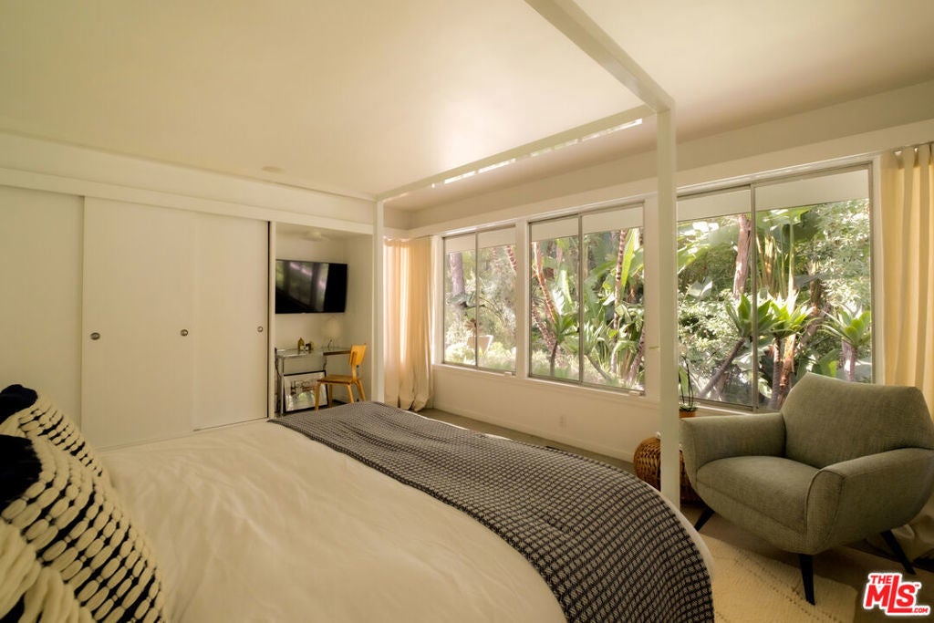 Property is also available for lease at $10,500 per month. Tucked at the end of a quiet cul-de-sac in the prestigious Outpost Estates, this rare Mid-Century Modern residence is a work of architectural heritage and timeless design. Conceived by notable architect, Dennis Wehmueller, a protge of Frank Lloyd Wright and the architect behind the Los Angeles Municipal Art Gallery among other well-known post war projects. This home reflects the principles of organic modernism seamlessly merging structure, landscape, and light. Sensitive updates preserve the integrity of its original design while enhancing comfort with today's refined luxuries.The property is situated just minutes from Hollywood and the Sunset Strip, yet profoundly removed from the city below. Set behind tall, mature hedges, the home functions as its own private sanctuary. The interiors boast garden views from every vantage, drawing you outward and inspiring private outdoor entertaining. Walls of glass dissolve boundaries between interior and exterior, flooding the living spaces with natural light and framing panoramic views of Runyon Canyon and the surrounding hills. Inside, authentic modernist details polished concrete floors, custom cabinetry and Bisazza tile, combined with radiant-heated floors, coved lighting, and custom built-ins to create a warm, sophisticated environment. The open plan flows effortlessly from the living room with fireplace to the dining area and sleek kitchen, extending out to a covered terrace for year-round indoor/outdoor living.Electronic window shades, an advanced media system, and a two-car attached garage add ease and modern functionality. Surrounded by lush landscaping and tree top vistas, the property offers both serenity and significance a rare opportunity to inhabit a piece of Los Angeles' architectural lineage in one of its most sought-after neighborhoods.