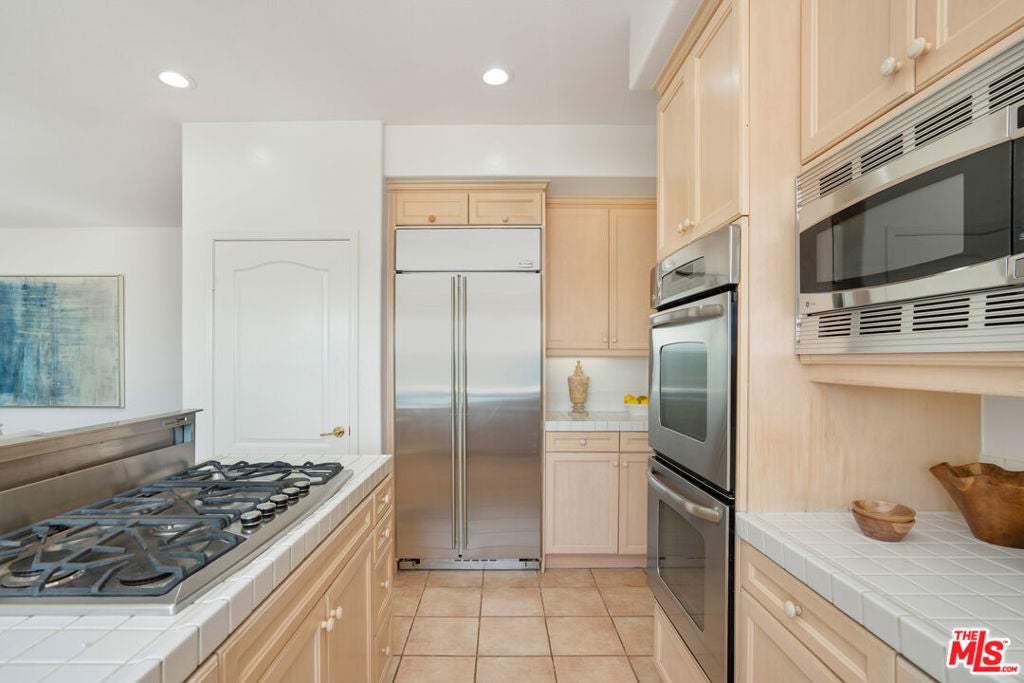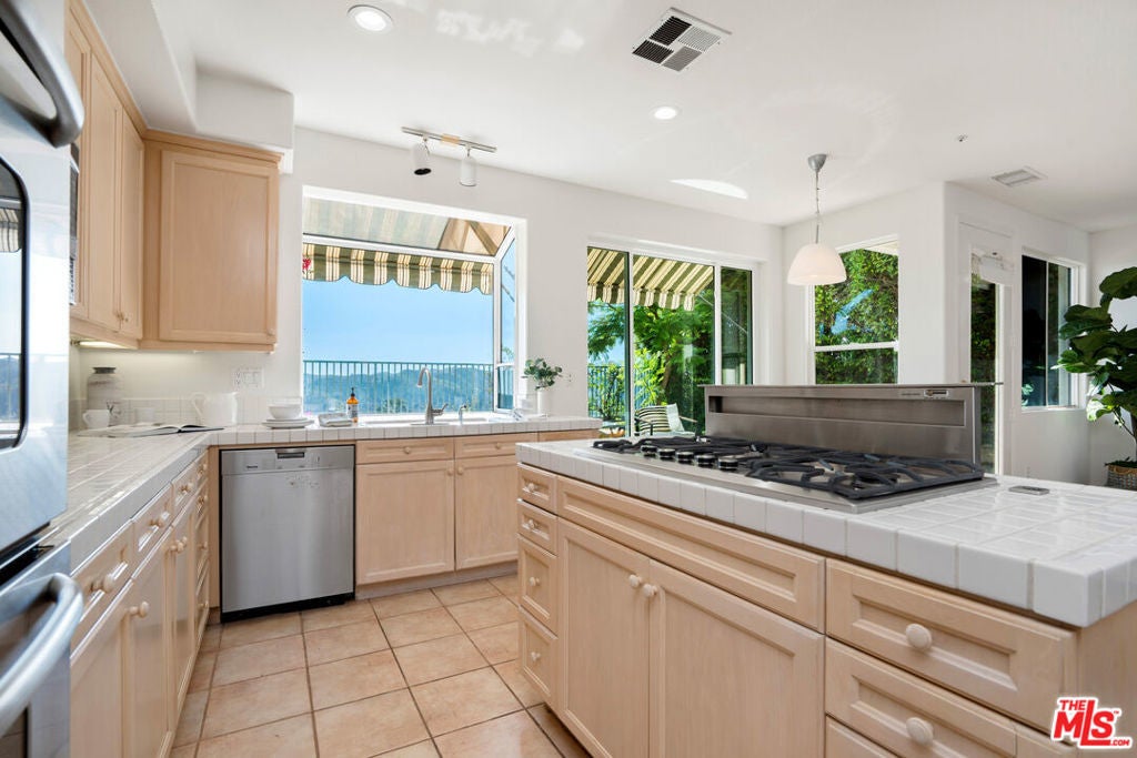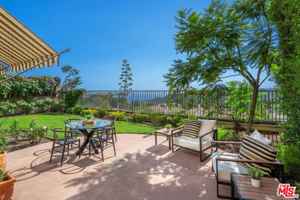 Perched in the exclusive Summit Club of the Palisades Highlands, this immaculate Mediterranean estate offers the best of coastal California living. With 4 bedrooms, 3 baths, and 2,781 sq ft on a nearly 11,000 sq ft lot, the home captures sweeping ocean and Santa Monica Mountain views from nearly every room. A dramatic two-story entry with soaring ceilings, hardwood and stone floors, and elegant French doors welcome you into light-filled living and dining spaces. The gourmet kitchen features a center island, breakfast area, and premium GE Monogram refrigerator, GE Profile double ovens, Miele dishwasher, and gas cooktop with downdraft, opening seamlessly to the family room with fireplace and the private, rose-lined patio and grassy lawn perfect for entertaining against spectacular sunsets. Upstairs, the romantic primary suite delights with a sitting area, fireplace, cedar-lined walk-in closet, spa bath with soaking jacuzzi tub, dual vanities, and a private view balcony. Three additional bedrooms offer flexibility for family, guests, or office space. A three-car garage, inside laundry, and membership in the Summit Club with resort-style pool, spa, tennis, basketball, gym, clubhouse, and exclusive private dog park complete this rare offering. Minutes to Palisades Village, Sunset Boulevard, and Will Rogers State Beach, this timeless retreat blends serenity, elegance, and the ultimate Highlands lifestyle.