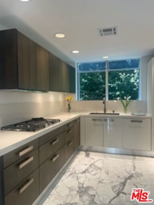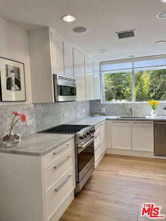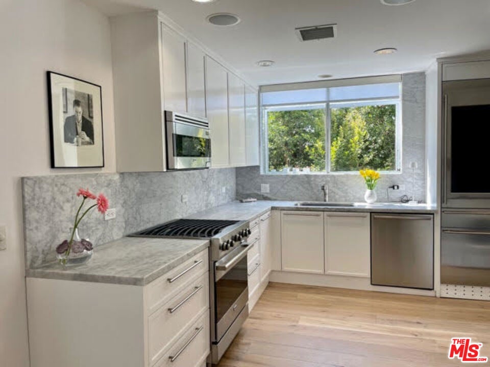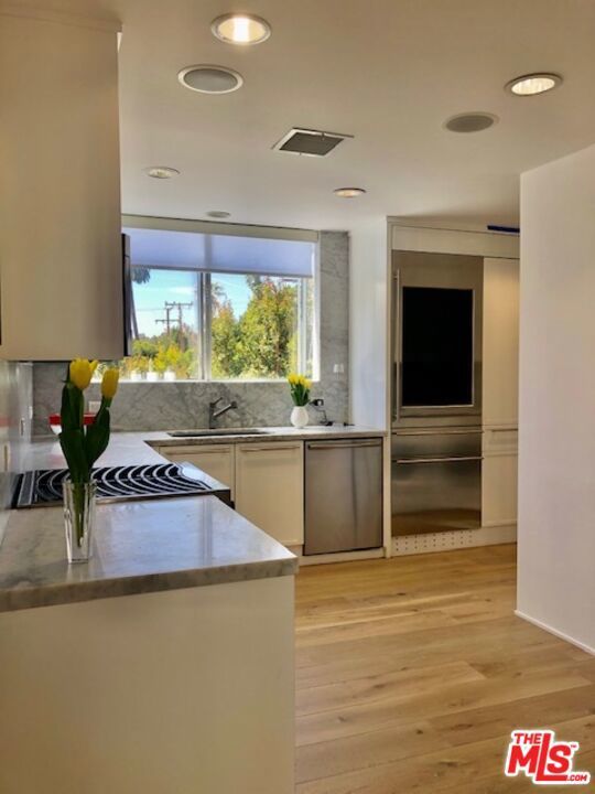 Vista Grande Royale is comprised of just 3 luxury condos, each with private elevator entrance, their own entire floor of the building and their own APN. The complex offers floor plans of 1600 Square feet to more than 1670 square feet. The ground floor unit includes a rare private back yard with access off the master bedroom while the Penthouse unit enjoys a huge private roof terrace with views in all directions. Vista Grande Royale is a charming residential building located on a tree-lined single family home atmosphere within minutes to Soho House as well as world class shopping and restaurants of Beverly Hills. This 3-unit New York style Triplex or Brownstone is located in the coveted Norma Triangle area of Southern California. The Owners Penthouse unit and the 2 additional luxury units offer exceptional income potential for owner user. PH and ground floor units currently month to month