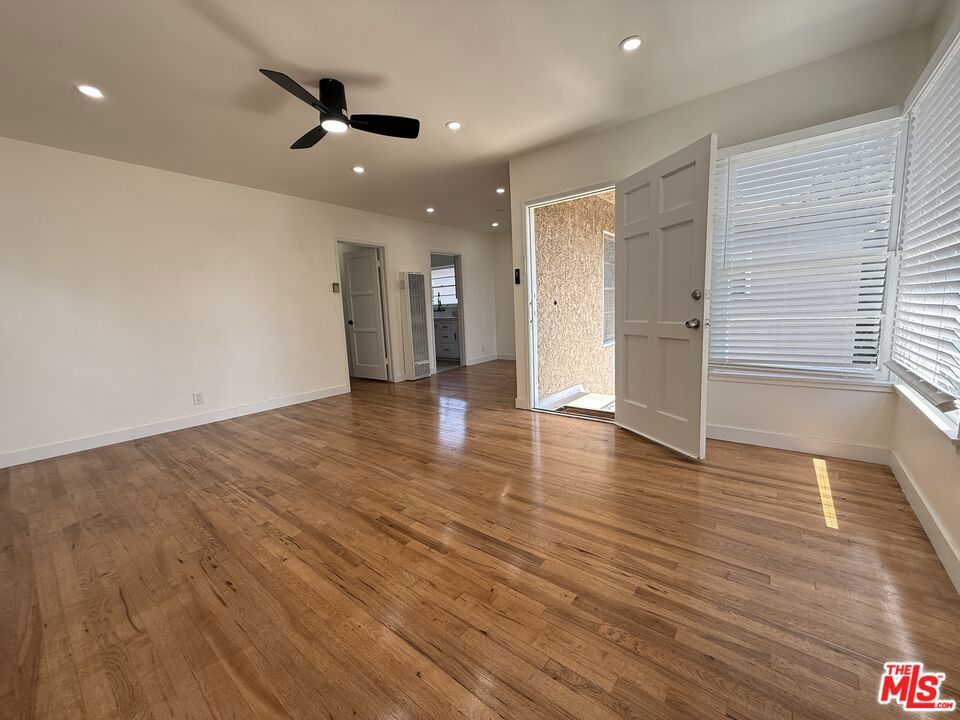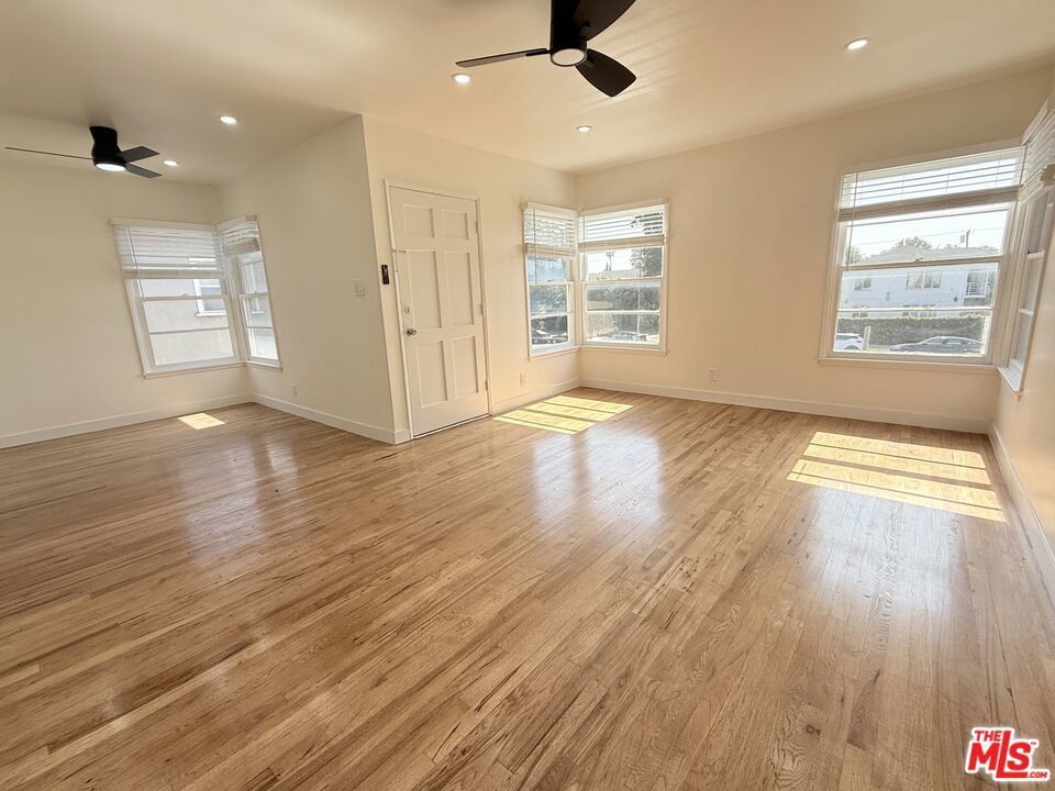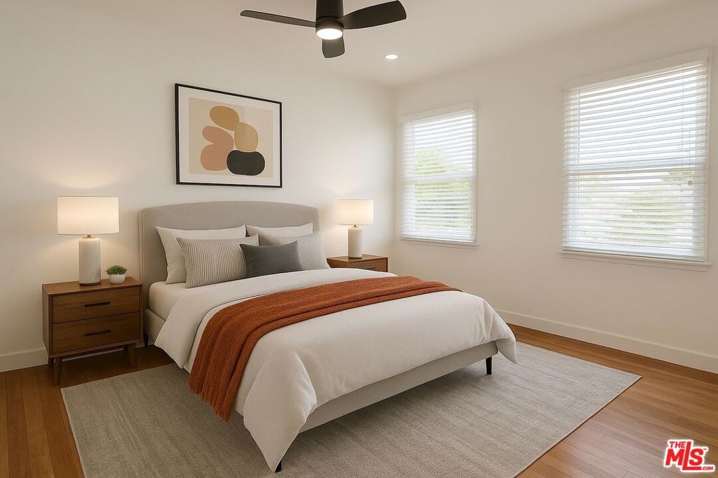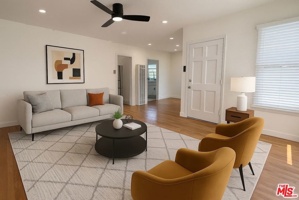Bright, Spacious Top Floor Unit for Lease! You will be the first tenant to enjoy this newly renovated, updated and freshly painted 2-bedroom duplex apartment in prime West LA, set way back from the road on a large lot, for added privacy. This unit features newly refinished, gleaming hardwood floors throughout, new heating units, ceiling fans, and window treatments. The bright living room includes a bay window and flows seamlessly into the open-plan dining area. The just-remodeled kitchen offers generous cabinet and counter space, sparkling newly resurfaced countertops, double sinks, disposal, and brand new stainless steel gas appliances (see photos). New, full-size washer/dryer has been added in the service porch & the side exit leads downstairs to the side patio and private access to a the garage with auto door & storage. To the rear of the home are 2 large, sunny bedrooms with neighborhood views and ample space for a large bed + office/or sitting area, new ceiling fans, door hardware, and spacious closets. The newly remodeled bathroom includes a pristine double sinks, cabinets, hardware, new mirrors, new commode, and a re-enameled tub and tile surround. 2618 Barrington Ave. offers a spacious living environment that feels like a home and is super close to all that the Westside has to offer and easy access to the 405 and 10 freeways. All of this and a public EV CHARGING STATION directly in front of the unit. Pets may be allowed on a case by case basis. Note: Some photos are virtually staged.