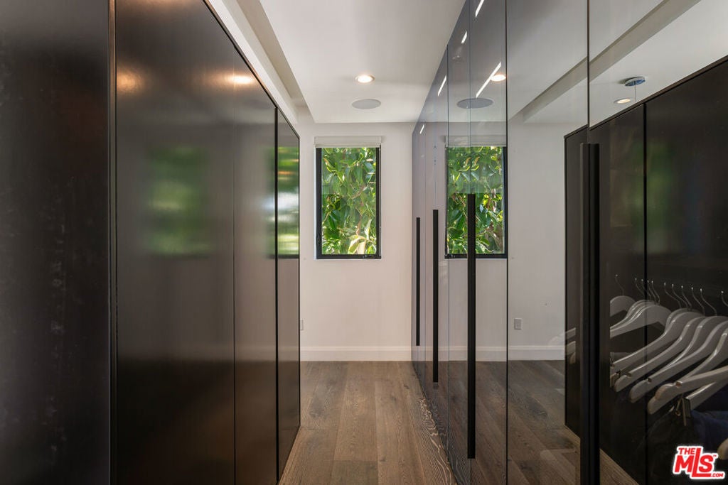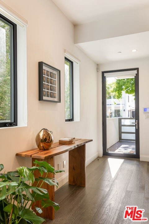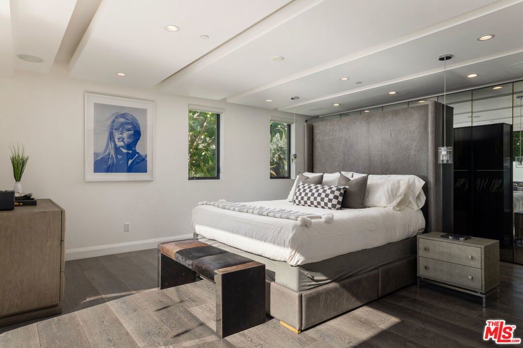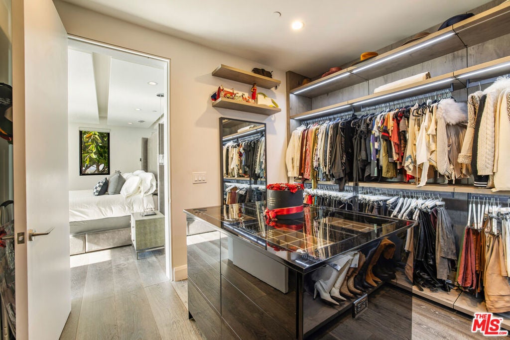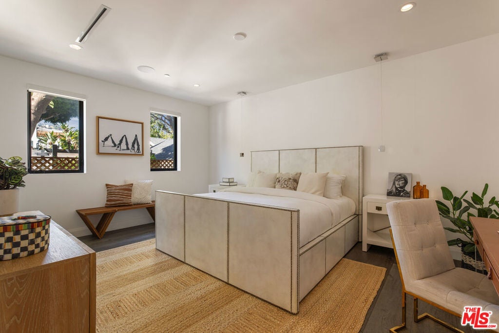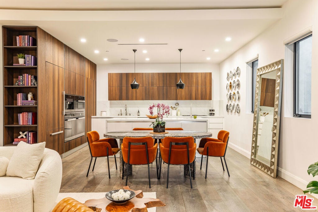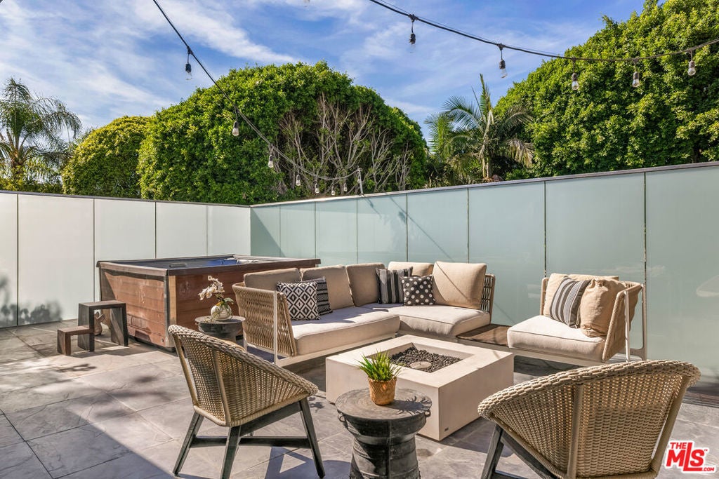 Designed by famed architect Tomas Osinski Design Inc. Nestled on one of West Hollywood's most sought-after streets on Huntley Dr, this exquisite townhome epitomizes luxury living. Positioned as the front unit in an exclusive two-unit boutique building, this west-facing residence features 2 bedrooms ensuite plus an optional 3rd bedroom, home office/den or media bonus room, 2 full baths and 1 half bath, a laundry room, and a gated garage offering two side-by-side parking spaces with direct home access, supplemented with a guest parking. Upon entry, the lower level reveals a stunning chef's kitchen adorned with custom Astra cabinets from Italy and top-of-the-line Miele appliances. The open concept blends the dining, kitchen and living area, highlighted by a cozy floor to ceiling stone fireplace flanked by custom built in cabinetry complete with recessed lighting. The guest bedroom enjoys natural light and includes a walk-in closet and full bathroom, while a west-facing bedroom or home office offers a bright workspace or peaceful retreat. Throughout, built-in speakers and a smart home system enhance convenience. The upper level unveils the opulent primary suite, featuring a spacious sitting area with a floor to ceiling stone fireplace complete with custom cabinetry, recessed lighting, Fleetwood pocket doors and chic bedroom complemented by coffered ceiling and a wall of back-lit closets. A second designer showroom-style walk-in closet with back-lit shelves and an island ensures storage aplenty, while the spa-like full bathroom adds a touch of indulgence. The 200 sqft private outdoor patio, complete with BBQ, dining area, and lounge with a fire pit, offers a serene escape with views of West Hollywood's architectural landmarks. Rooftop patio has space and capacity to hold a spa tub. This meticulously designed townhouse seamlessly blends luxury and convenience, offering a unique lifestyle opportunity in an unbeatable location, a true gem for those who appreciate the finer things in life.