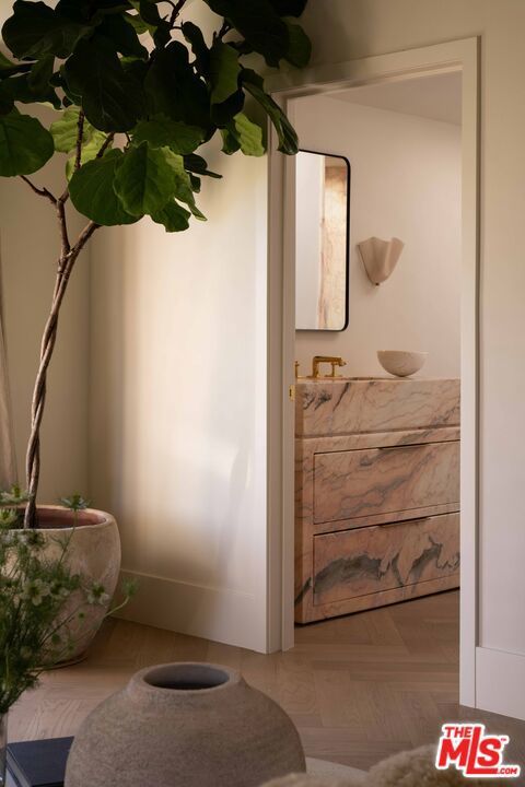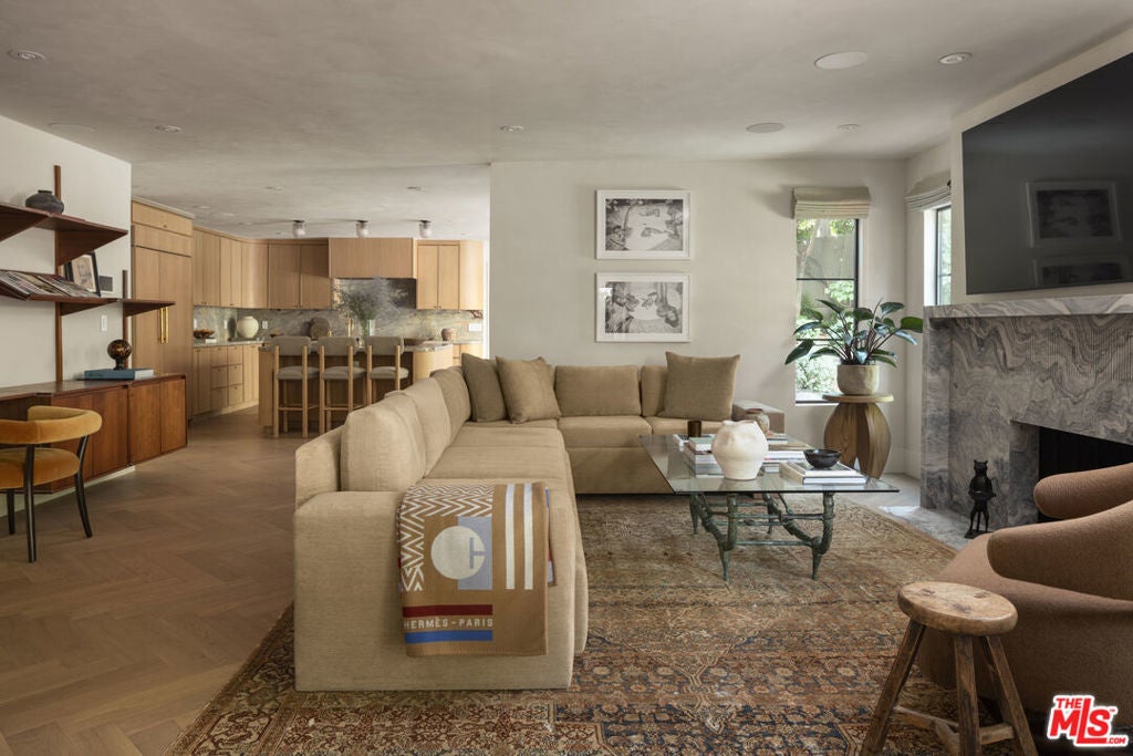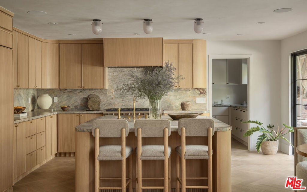 A rare French Regency estate on coveted flat half-acre parcel in lower Hollywood Hills reimagined by Studio OSKLO. Set-back behind a towering hedge and gated driveway, the secured home spans nearly 4,200 square feet of meticulously curated interiors with second floor views of downtown LA and westside Los Angeles. A rare combination of privacy and scale, an expansive grassy yard featured multiple entertaining areas and pool, as well as multiple water features and the ultimate private retreat. Designed for both grand entertaining and intimate gatherings, the home boasts extraordinary flow, with bespoke steel doors and windows framing sun-drenched spaces that blur the line between indoors and out. Each of the four spacious bedroom suites has an en-quiet bathroom, showcasing distinct character and detail while maintaining a cohesive thread of understated elegance. Grand dining room, stunning kitchen with breakfast nook, and solarium-style bar wrapped in glass. Throughout the home, hand-finished plaster walls and ceilings add warmth and texture, serving as a timeless backdrop for flawless craftsmanship and unrivaled contemporary design accustomed to $10-million + homes. This residence embodies the very best of Los Angeles living - polished, cool, and effortlessly chic close to Beverly Hills and West Hollywood.