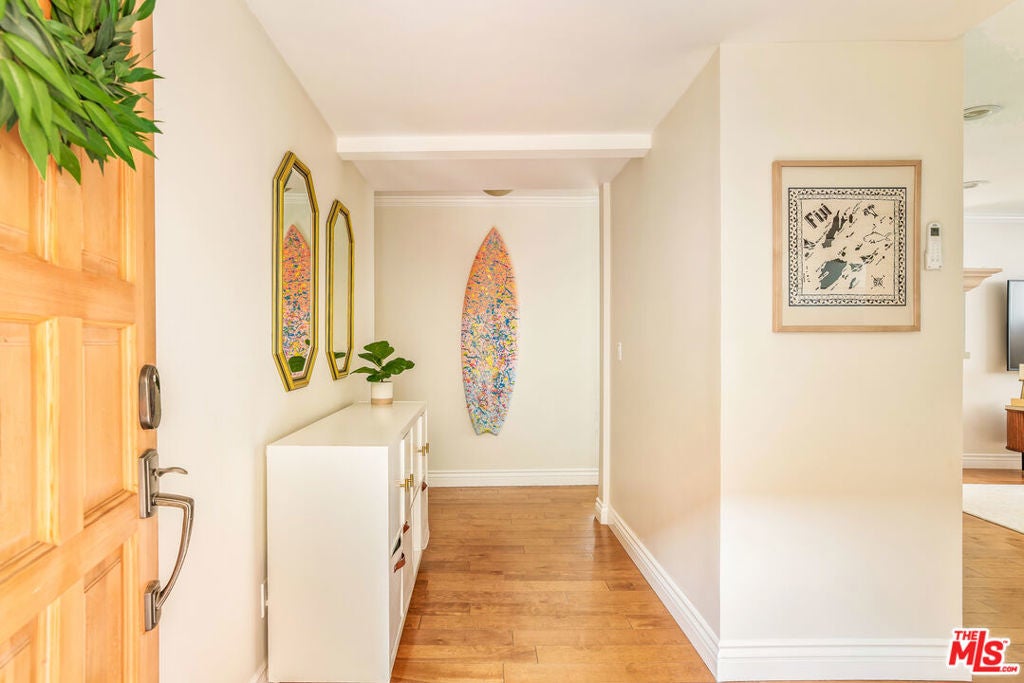 Experience the best of Santa Monica living in a rare, almost impossible-to-find 4-bedroom, single-level condo perfectly situated just moments from the shops and cafes of Montana Avenue. Flooded with natural light, this move-in ready home features a spacious open living and dining area, recently renovated kitchen and bathrooms, and hardwood floors throughout. The primary suite features an en suite bath and generous walk-in closet, while three additional bedrooms offer flexibility for family, guests, or a home office. Enjoy an expansive, private outdoor patio ideal for play, barbecues, and entertaining. Gated and secure, the unit includes side-by-side parking and a large private storage space. HOA dues include earthquake insurance and there are no pet or rental restrictions. Located within the coveted Santa Monica School District, this is an exceptional opportunity to own a versatile, stylish home in the Westside's most desirable neighborhood.