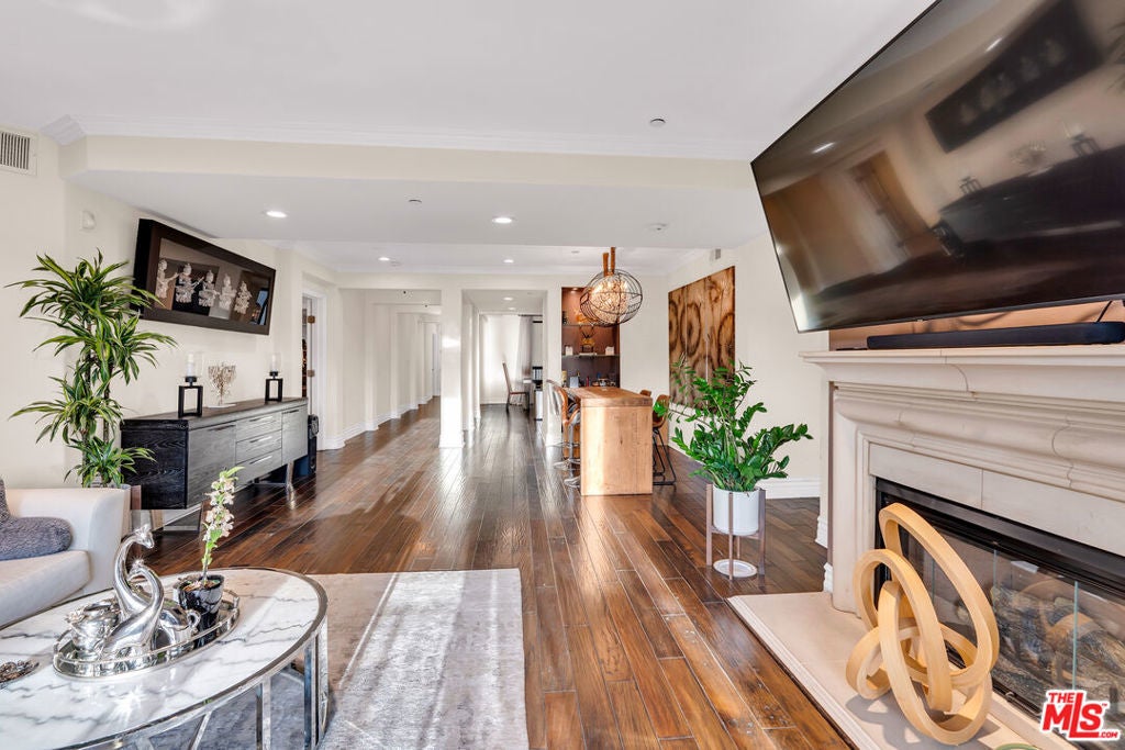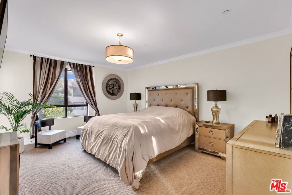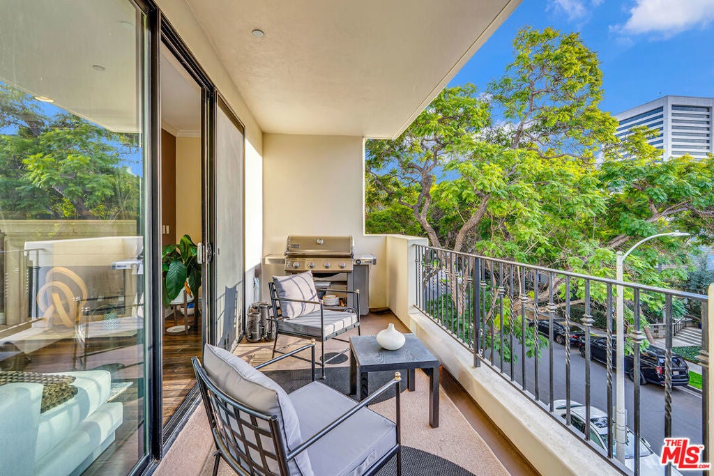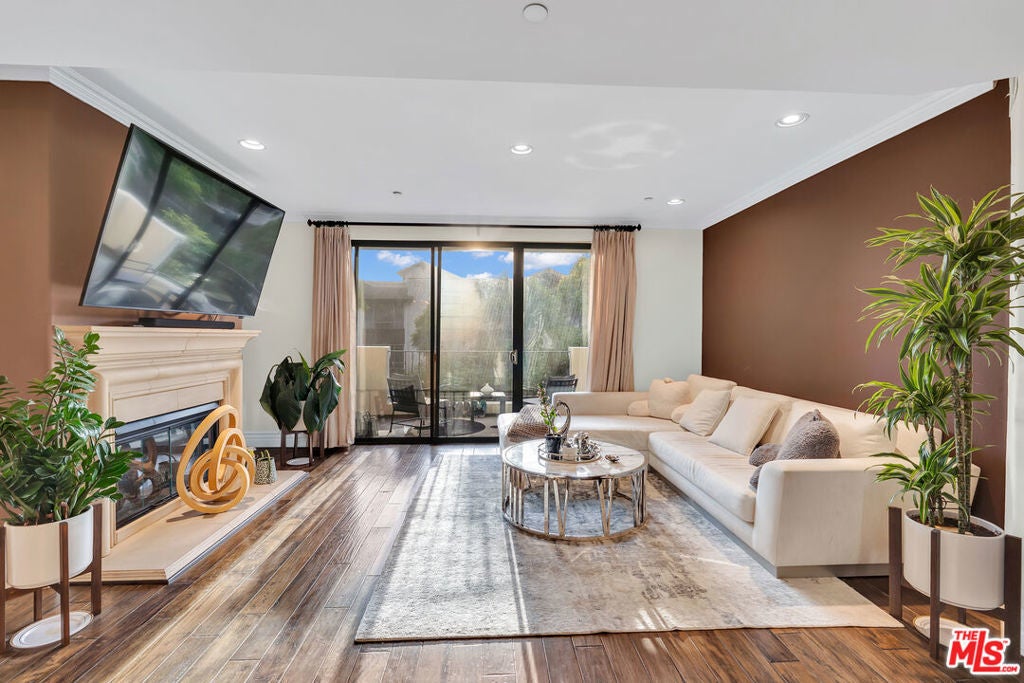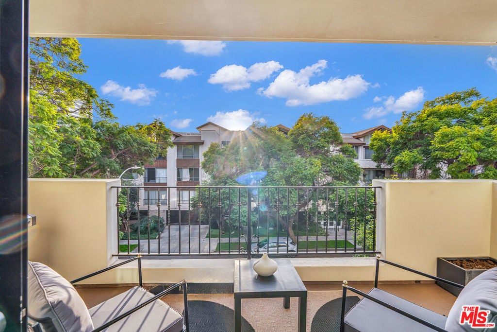 Welcome home to this premium luxury condominium building conveniently located in a prime pocket of Westwood. Enter into this upscale building through a fountain courtyard entrance filled with lush greenery and exquisite Mediterranean surfaces. As you enter into this west-facing, front and center unit you are immediately impressed by high ceilings, crown moldings, hardwood floors and a stunning row of colonnade that spatially separate a series of well-proportioned living areas. The chef kitchen flanked by the formal dining room on one side and the "bar area" and living room on the other, is a dream-come-true fully equipped with stainless steel Viking appliances, travertine backsplash, granite countertops and oak cabinetry. Depending on the mood, effortlessly serve your guests in the formal dining room or in the bar area and living room leading to the spacious balcony where BBQ is being prepared. The living room with the stone fireplace flows easily into the spacious balcony through the double sliding doors creating an indoor-outdoor atmosphere. The split bedroom floor plan allows for maximum privacy between the two ensuite bedrooms. The enclosed and expansive luxury master suite boasts a king-size bed, double-sink vanity, a soaking tub, a luxury shower and an oversized walk-in closet. Start your day by enjoying your morning coffee on the balcony that overlooks the Jacaranda-lined treetops in this tranquil street. Luxury guest bathroom at entry, side-by-side washer/dryer, two tandem parking spots, 7 guest parking spots in undercover garage and so much more ! Unit is offered fully furnished.