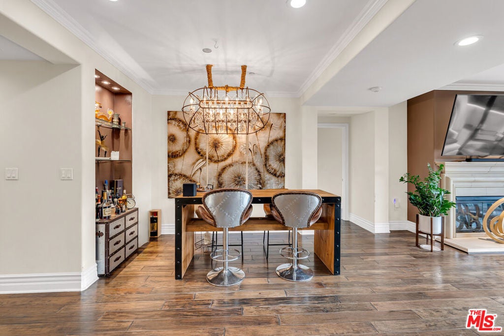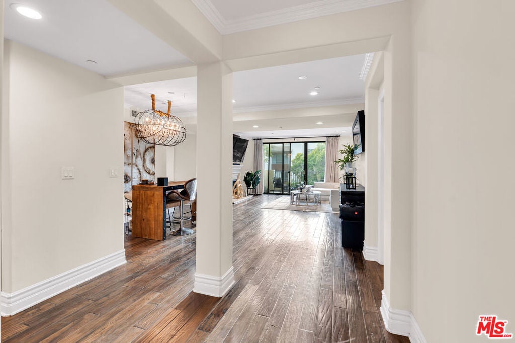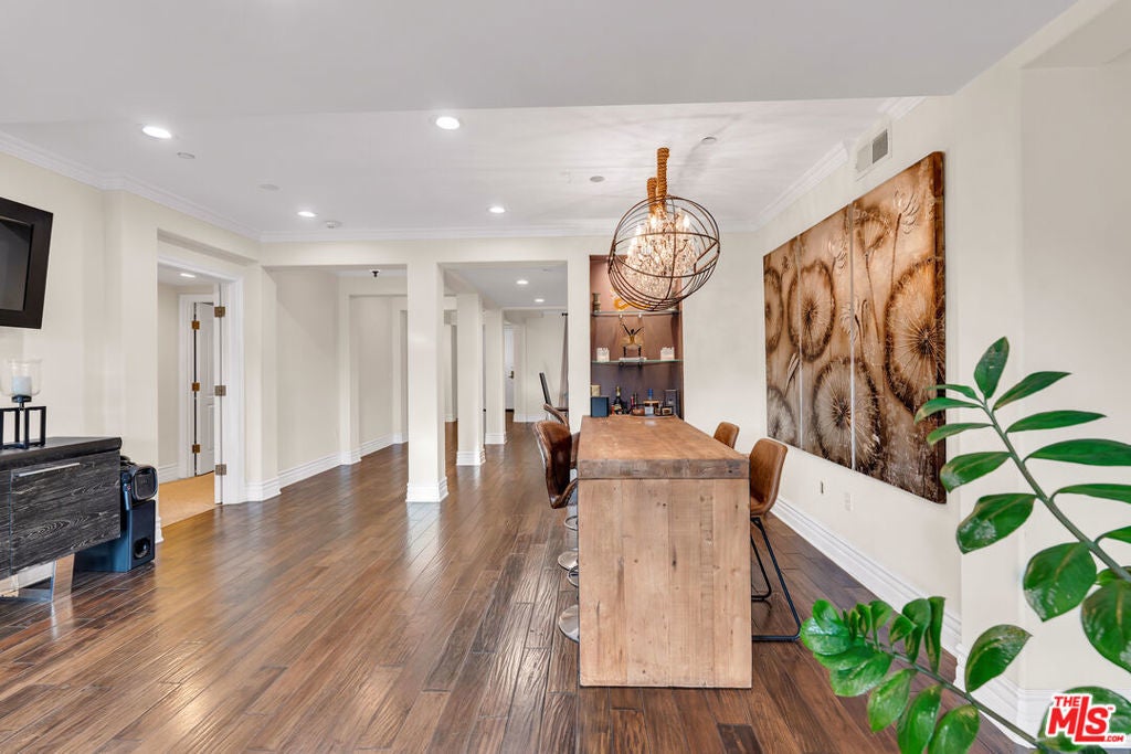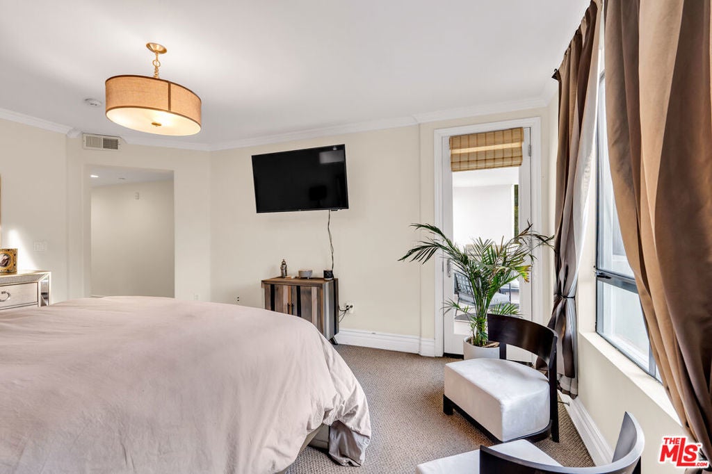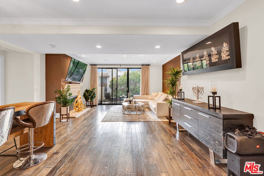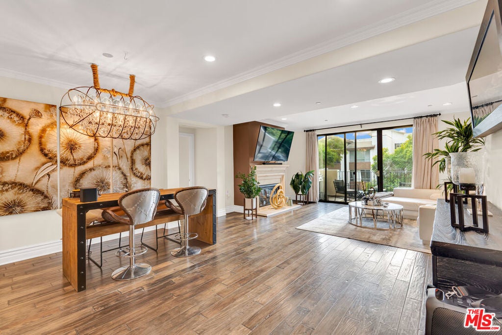 Welcome home to this premium luxury condominium building conveniently located in a prime pocket of Westwood. Enter into this upscale building through a fountain courtyard entrance filled with lush greenery and exquisite Mediterranean surfaces. As you enter into this west-facing, front and center unit you are immediately impressed by high ceilings, crown moldings, hardwood floors and a stunning row of colonnade that spatially separate a series of well-proportioned living areas. The chef kitchen flanked by the formal dining room on one side and the "bar area" and living room on the other, is a dream-come-true fully equipped with stainless steel Viking appliances, travertine backsplash, granite countertops and oak cabinetry. Depending on the mood, effortlessly serve your guests in the formal dining room or in the bar area and living room leading to the spacious balcony where BBQ is being prepared. The living room with the stone fireplace flows easily into the spacious balcony through the double sliding doors creating an indoor-outdoor atmosphere. The split bedroom floor plan allows for maximum privacy between the two ensuite bedrooms. The enclosed and expansive luxury master suite boasts a king-size bed, double-sink vanity, a soaking tub, a luxury shower and an oversized walk-in closet. Start your day by enjoying your morning coffee on the balcony that overlooks the Jacaranda-lined treetops in this tranquil street. Luxury guest bathroom at entry, side-by-side washer/dryer, two tandem parking spots, 7 guest parking spots in undercover garage and so much more ! Unit is offered fully furnished.