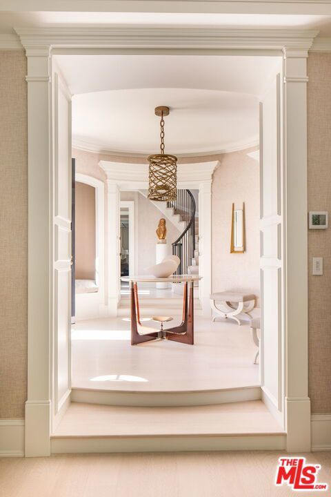 There is no parallel for the sophistication and style of this custom neo-traditional home. Accessed by a gated driveway, this two-story residence has been painstakingly reimagined by Thomas Pheasant (Dean of American Design, AD). Every corner reveals a new level of refinement and individuality. The circular entry leads to the living room and library on one side, and the dining room, kitchen, breakfast room, and family room on the other. Downstairs, wide-plank white oak floors set the tone. The living, library, and family rooms each feature a fireplace, while intricate crown and base moldings abound. Lacquered custom mahogany doors upstairs and down set a distinctive tone, and bespoke hardware elevates the interiors. Lighting has been thoughtfully designed to enhance art collections as well as evening moods. All exterior doors and windows have been replaced. The formal dining room overlooks the manicured rear landscape and opens to the kitchen, which is finished with inlaid marble floors and countertops, a custom La Cornue range, oven, and drawers. In addition to the refrigerator, freezers, and wine refrigerator, multiple refrigeration drawers are strategically placed for convenience. Adjacent to the kitchen, the breakfast room opens directly to the sunny pool area. From there, the family room and rear staircase complete the flow. A bespoke powder room finishes the main level. A graceful circular staircase leads to the second floor. The primary suite spans one side of the home, with a sitting room, large bedroom with fireplace opening onto to a private terrace, and two elegant bathrooms with heated stone floors. One bath features a freestanding tub, vanity, makeup station, and shower. The other offers a steam shower and office area. Abundant closet space completes the suite. On the opposite wing are two additional bedrooms, two bathrooms, and a large laundry room. The rear grounds are exceptionally private, with an oval swimming pool and spa surrounded by a limestone terrace, English-style gardens, a fountain, and winding paths. A two-car garage and auto carousel allow vehicles to turn easily toward the departure area. Very rarely does a property achieve such a consistent level of detail and restraint. 2401 Bowmont is a home of true sophistication, designed for the most discerning buyer.