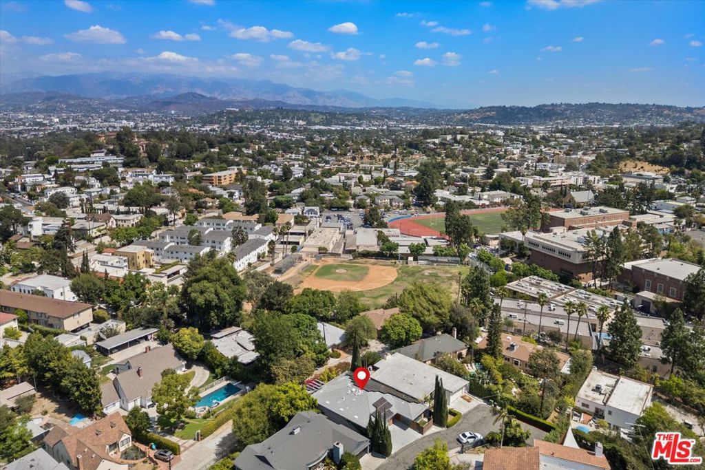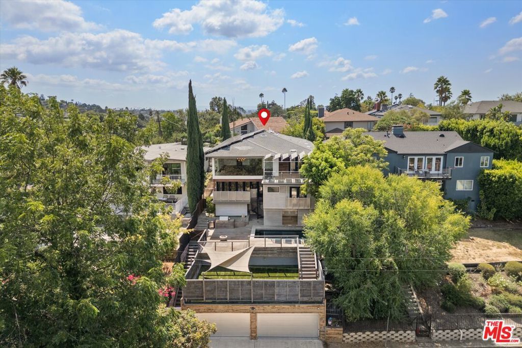 Set on a private cul-de-sac in Franklin Hills, this expansive 6-bedroom, 5-bathroom home offers sweeping 180-degree views and a versatile layout designed for both everyday living and entertaining. The main level features a well-appointed kitchen and an open living and dining area with floor-to-ceiling glass windows, framing breathtaking vistas. Two bedrooms and two bathrooms are located on this floor, including the primary suite with direct balcony access, a walk-in closet, and a spa-like bath with a jacuzzi tub. On the lower level, a second living room/den opens to another balcony and connects to four additional bedrooms, two bathrooms, a laundry area, and a spacious bonus room ideal for a theater, playroom, or extra storage. Outdoor living is at its best with a pool and deck area complete with BBQ grill and fire pit, as well as a pool house guest suite featuring its own bathroom with a steam and rain shower. Below the pool, a flat yard offers even more space for lounging or stargazing. The home sits on a rare through-lot with a 4-car lower garage accessible from Ames Street (in addition to the one-car garage attached to the main level), perfect for more parking or a home gym. Additional highlights include solar panels, dual HVAC systems, and a location within the sought-after Franklin Avenue Elementary School District. With easy access to Los Feliz Village, Griffith Park, DTLA, and the Hollywood studios, this home brings together privacy, scale, and convenience in one remarkable setting.