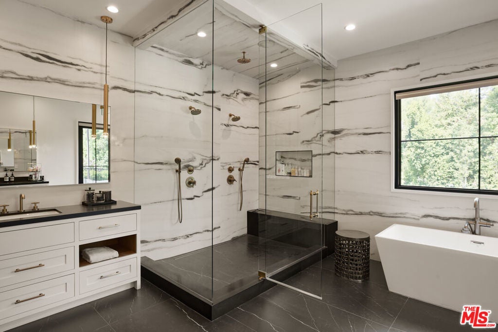 Behind private gates in one of Encino's most coveted enclaves, 4634 White Oak Avenue is a custom-designed estate blending grand scale with refined detail. A chandelier-crowned foyer and sweeping staircase introduce interiors designed for both statement and comfort. The chef's kitchen, anchored by dual islands, bespoke cabinetry, and designer appliances, flows to formal and casual living spaces, each opening through pocketing glass doors to a resort-worthy backyard. Here, lush landscaping frames a zero-edge pool and spa, sports court, outdoor kitchen, and multiple dining terraces. A theater, guest suite, and office complete the main level, while the upper floor reveals a primary sanctuary with fireplace, private balcony, dual walk-in closets, and a spa-like bath. Additional ensuite bedrooms, smart-home technology, a three-car garage, and a fully finished two-bedroom guest house with kitchenette make this estate as functional as it is an expression of refined California living. GUEST HOUSE: includes kitchen, full bathroom, dining room, 2 office/bedrooms, and large bonus play area. ALL PROPERTY INSPECTIONS WERE PROACTIVELY CONDUCTED BY THE SELLER (11/24-11/26), AND ANY NOTED PUNCH-LIST ITEMS HAVE BEEN COMPLETED. A FULL INSPECTION PACKAGE IS AVAILABLE TO BUYERS UPON OFFER SUBMISSION. REPORTS INCLUDE: GENERAL, SEWER, ROOF, HVAC, MOLD/MOISTURE, POOL, FIREPLACE, TERMITE, AND DRAINAGE.