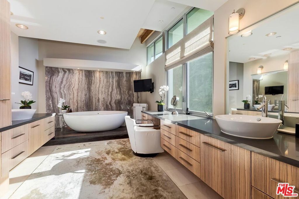This absolutely stunning modern home is set upon an expansive rare double lot mere blocks to the bluffs, shops, and restaurants on Montana Avenue. The Owners engaged with Enclosures Architects and Scott Strumwasser A.I.A. to create a bespoke compound that offers a plethora of living and entertaining spaces, and could not be replicated today. Located on one of the most highly sought after streets north of Montana Avenue, the inviting indoor/outdoor flow of this special home allows for absolute privacy being surrounded by stone walls and lush landscaping. Detached gym not included in square footage. A truly unique offering of an impeccably designed home near to all.