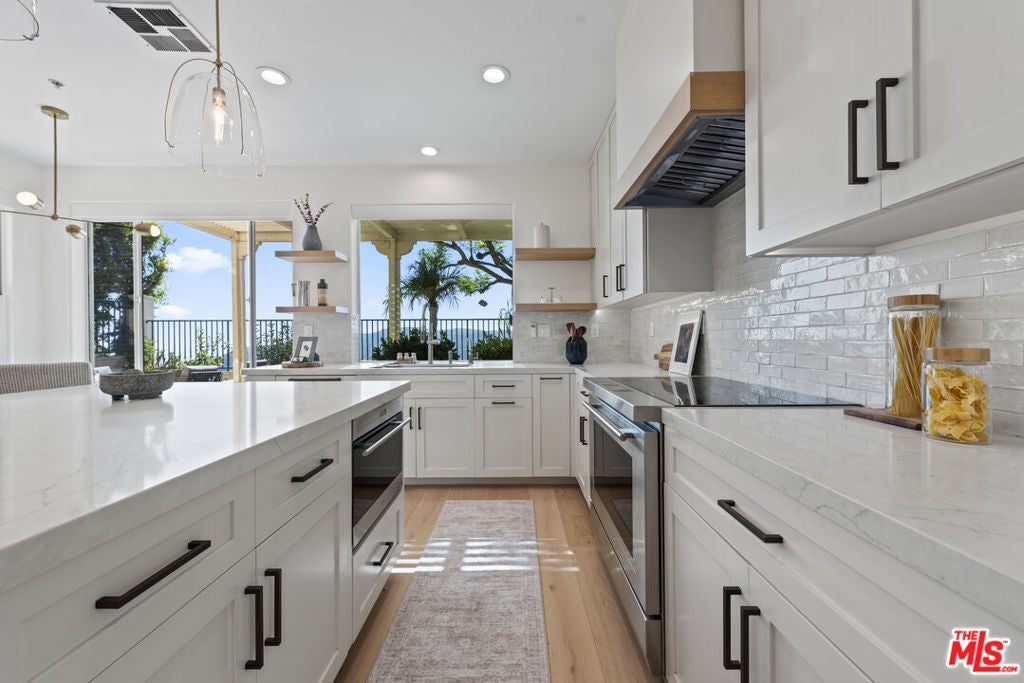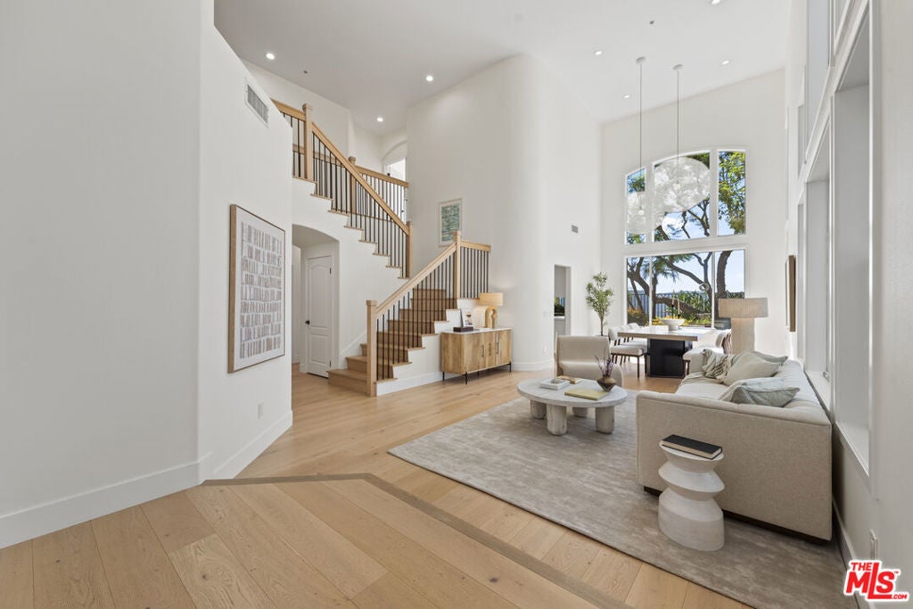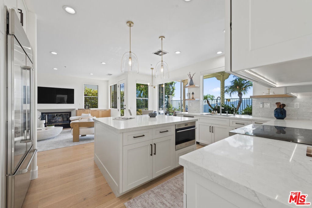 Welcome to this beautifully maintained and extensively remodeled residence in the highly sought-after Summit Highlands community. Renovated in 2021 with premium finishes and exceptional attention to detail, this home showcases Italian white oak floors throughout, lending warmth and sophistication to every room. Step through the dramatic two-story entryway into a sun-drenched formal living and dining area, ideal for elegant entertaining or everyday living. The heart of the home is the chef's kitchen, featuring a 36" Wolf induction range, Wolf speed oven, Sub-Zero refrigerator, Bosch dishwasher, quartz countertops, electric blinds, and a built-in water filtration system, a perfect blend of style and function. Adjacent to the kitchen, the inviting family room is anchored by a striking black porcelain and stone gas fireplace, flanked by custom white oak built-ins, offering both warmth and practical storage. Upstairs, the primary suite is a private sanctuary with sweeping ocean and mountain views, a cozy sitting area with a marble gas fireplace, and a private balcony. The spa-inspired primary bath features Italian marble countertops, Carrara marble mosaic floors, a deep soaking tub, and elegant polished nickel fixtures. Two additional upstairs bedrooms offer comfort and flexibility, along with a convenient laundry closet equipped with brand-new LG washer and dryer. The 3-car garage has epoxy flooring and an EV charger on a 60 amp circuit. Summit Club privileges include pool, spa, fitness center, basketball court, tennis and pickleball courts and a children's playground. Lower Park access includes children's playground, jogging path with workout stations and off-leash dog park hours. Don't miss this incredible opportunity to enjoy all that the Highlands lifestyle has to offer.