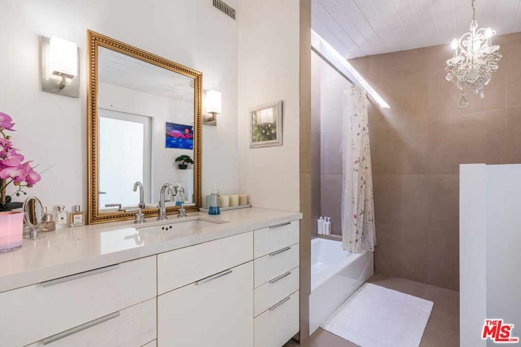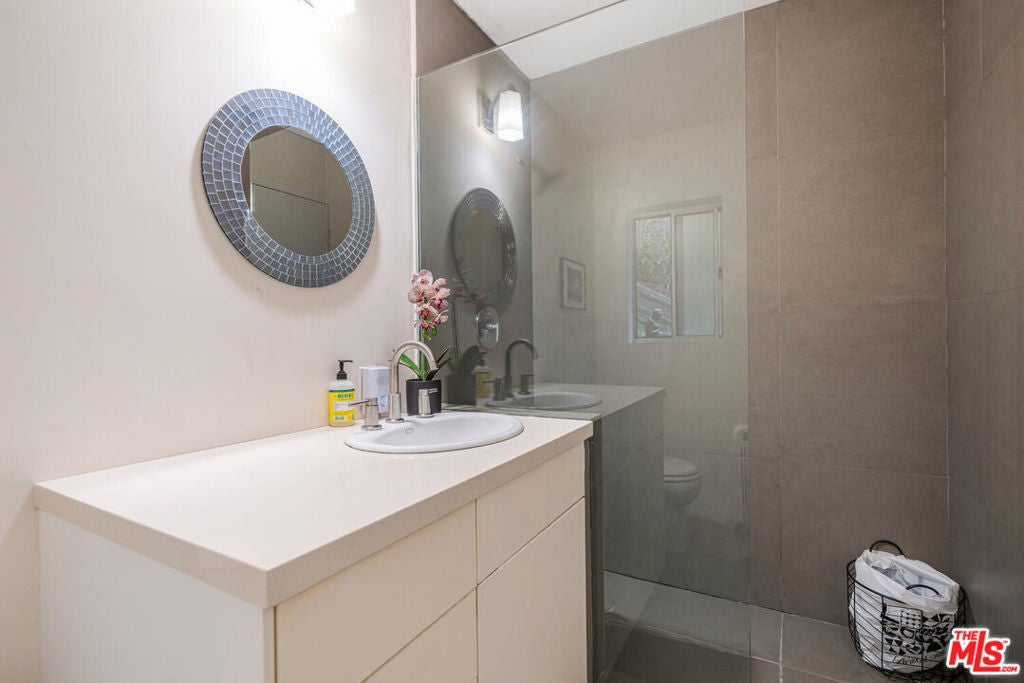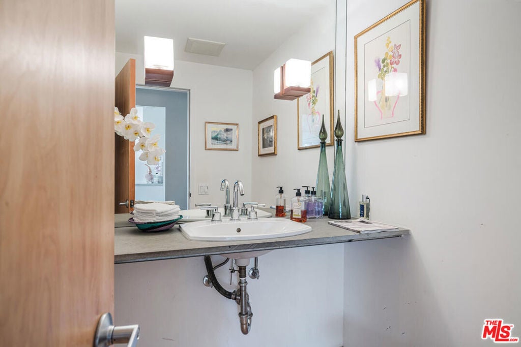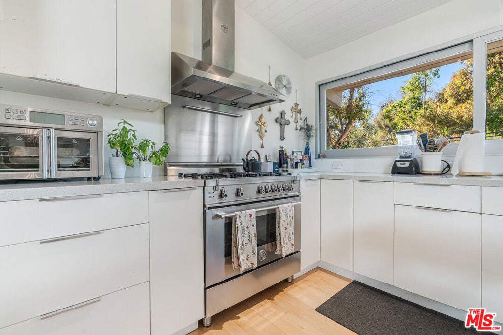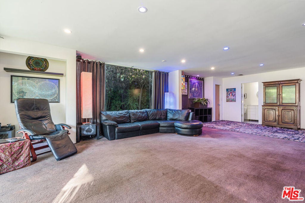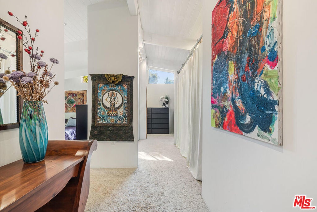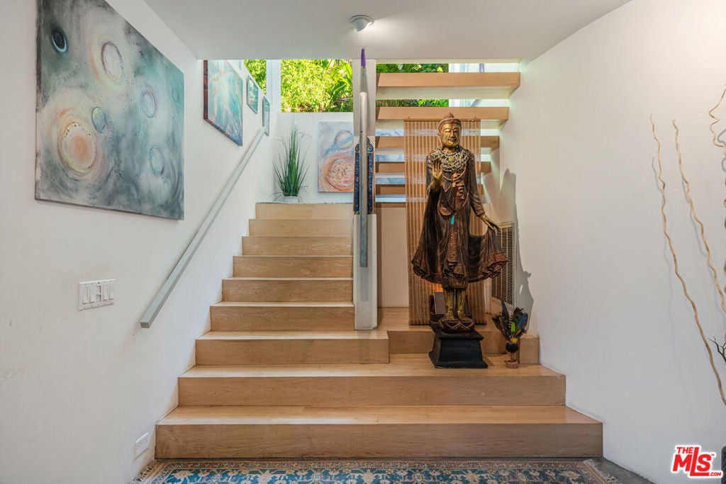 Beautiful midcentury architectural retreat in Rustic Canyon. Set on an expansive approximately 17,522 sq ft lot, this serene, light-filled four-bedroom, five-bath home showcases floor-to-ceiling glass for effortless indoor outdoor flow. Enter through a hand-carved wood door to a flexible lower level with a large bedroom or media room on the left and a three-car garage currently converted to bonus space on the right, ideal for studio, office, or gym. Warm natural finishes include a stone fireplace, skylights, and beamed ceilings. Upstairs, the sunlit kitchen and family room open to patios and a pool; three additional bedrooms, including the primary suite, are on this level, and all bedrooms feature ensuite baths. The bright kitchen overlooks a sunny pool framed by mature trees and lush landscaping. The property faces the protected historic Eucalyptus Grove and sits next to Rustic Canyon Park with twelve public tennis courts, a basketball court, playground, community center, and picnic lawns. Enjoy tranquil country living close in with ocean breezes and quiet tree-lined streets, minutes to the beach, Palisades Village, and Montana Avenue shops and dining.