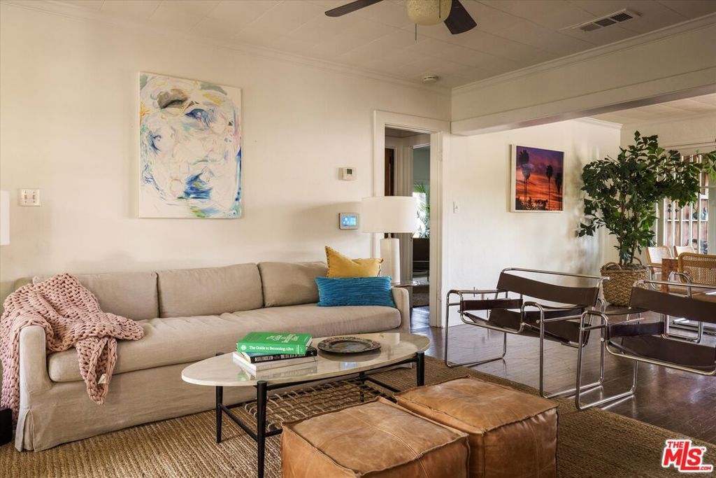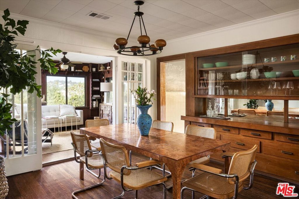 Perched above the city with cinematic views, this Echo Park retreat is for the tastemaker who values both vintage character and modern flexibility. This hillside bungalow compound unfolds across two complete levels each with its own kitchen, living, dining, and laundry offering the freedom to evolve with you through every phase of life. The upper level features four bedrooms plus an office, while the lower level offers two bedrooms, an office, and a dressing room. This layout is perfect for multi-generational living, a home studio, or the ultimate guest retreat. Period details like brick archways, built-in cabinetry, colorful tile, and even preserved vintage wallpaper layer warmth and authenticity throughout, while oversized windows frame ever-changing views of the San Gabriel Mountains and Echo Park's iconic fountains. Outdoors, this property is its own magic garden: mature fruit trees (orange, avocado, apple, fig, lemon, lime, and kumquat), a chicken coop, and multiple patios and lounge spaces under bougainvillea create endless opportunities to gather, play, or unwind. A detached shed currently serves as a gym, adding yet another flexible space, and a tall privacy hedge in the front ensures the home feels like a world apart. On weekends, the location truly shines: stroll up to the Silverlake Flea, grab a sunlit lunch at Honey Hi, circle Echo Park Lake, then settle in for dinner at Men & Beasts or cocktails at Taix, with Donna's and Lonely Oyster just minutes away. Here, you're surrounded by the very best of the Eastside while still feeling tucked away in your own private retreat. This property is zoned R2, with additional upgrades including gated tandem parking for two, solar panels, a new exterior sewer line, fresh interior paint, and the convenience of dedicated laundry on both levels. This is quintessential Eastside living: soulful, spacious, and endlessly adaptable, a place to share and entertain, to be the hub for your friends and family for many years to come.