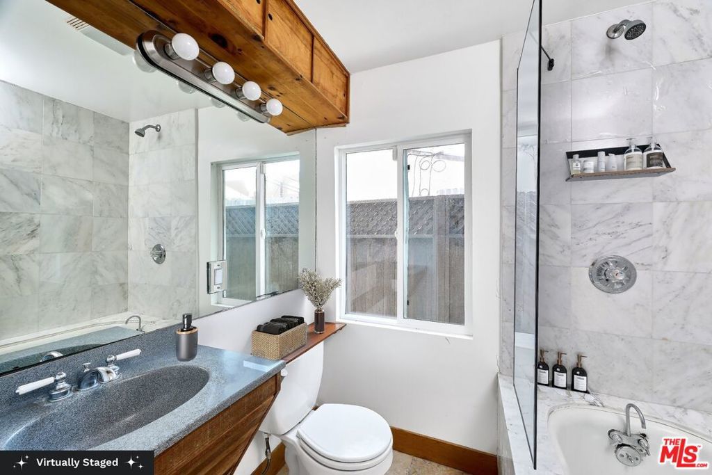 Situated in one of Venice's most desirable neighborhoods just behind famous Abbot Kinney Blvd, this fully remodeled 2-bedroom, 3-bathroom bungalow offers a welcoming blend of character, space, and coastal charm. The generous living area opens directly to a large, partially covered front deck perfect for indoor-outdoor entertaining and every day enjoyment. Skylights in both the living room and kitchen fill the home with natural light, enhancing its warm and inviting atmosphere. Each bedroom features access to the outdoor area, creating peaceful personal retreats. All three bathrooms include showers, with the primary suite boasting a spacious standalone shower and dual vanity. Additional highlights include a laundry area with a stackable washer and dryer, and one dedicated parking spot. Located just minutes from Venice's best restaurants including RVR, Felix, Gjelina, Wabi on Rose, and countless more - you will find yourself at home on Abbot Kinney Blvd, Rose Avenue, Main Street, and the beach. Experience the perfect balance of relaxed beach living and vibrant city energy in this one-of-a-kind Venice bungalow.