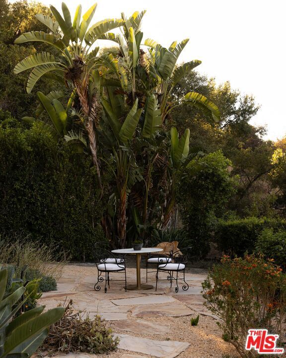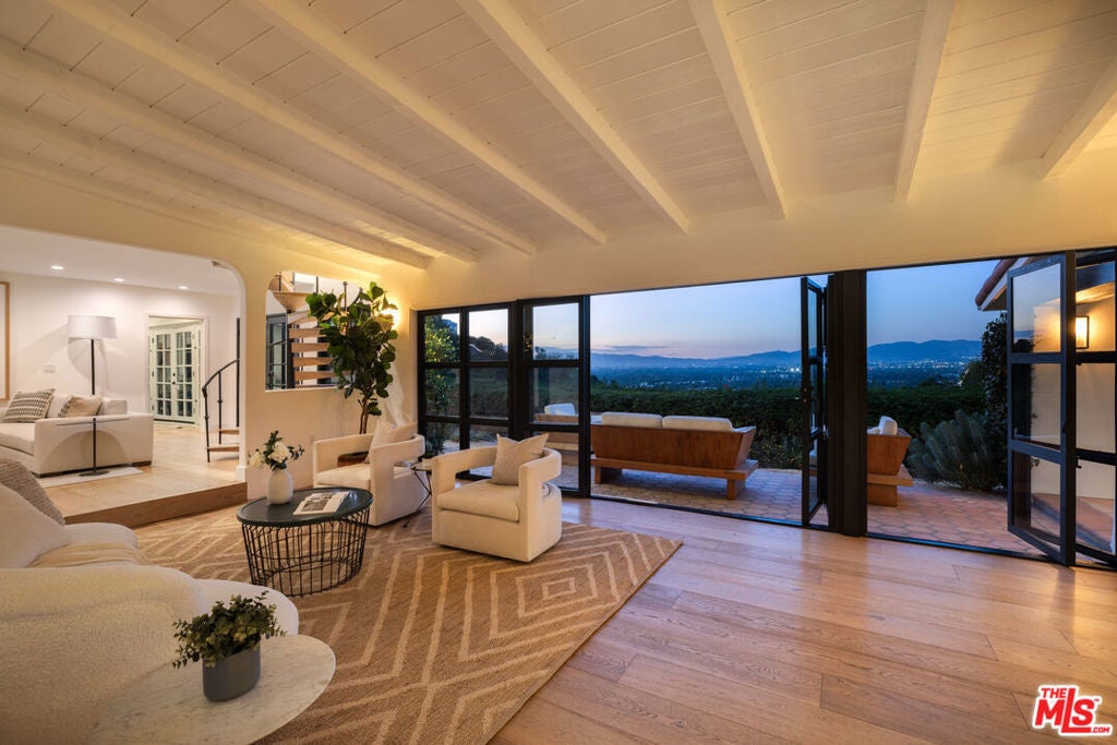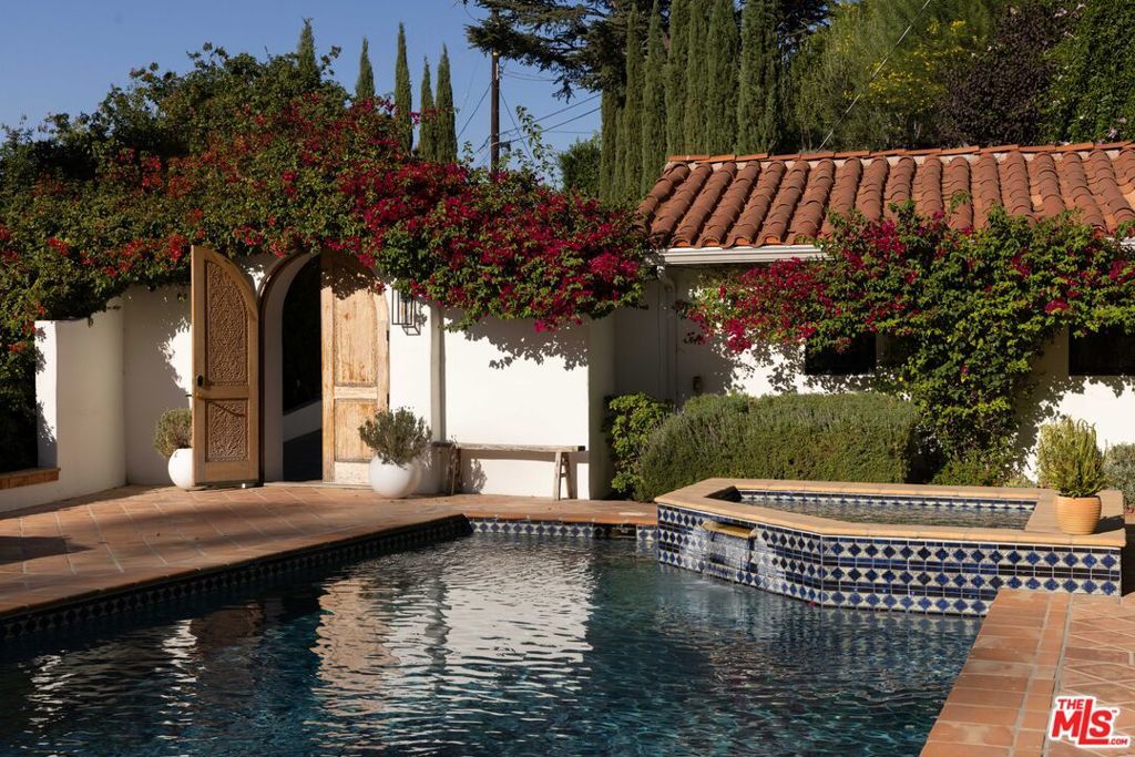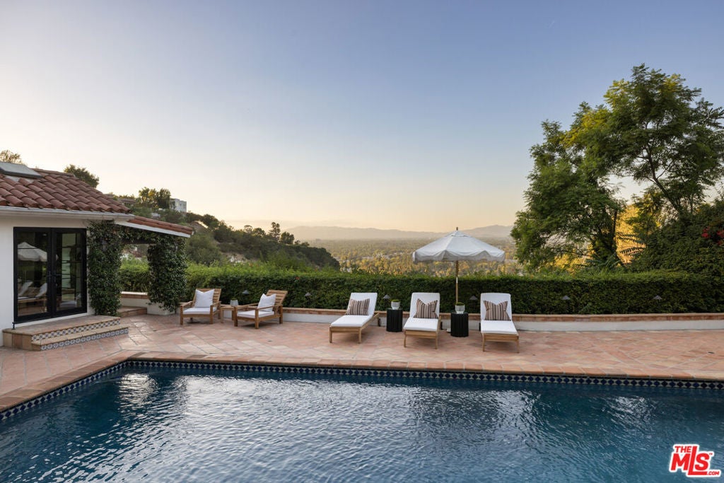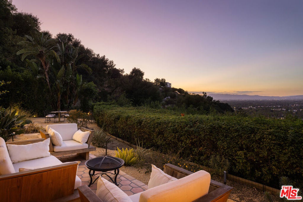 Enchanting hideaway or artist's retreat in the Studio City hills offers complete serenity and sweeping views. Enter through oversized gates and a hidden driveway for absolute privacy and seclusion. Mature hillside landscaping provides natural privacy, shielding the residence and garden from neighboring homes. The grounds feature a Saltillo tiled patio, saltwater pool and spa, outdoor kitchen, multiple seating areas, and fire pit. The 3-bedroom main residence offers a bright, open floor plan, illuminated by nine skylights, with a seamless flow between indoor and outdoor spaces. The living room features beamed ceilings, gas fireplace, French Oak wood floors (throughout), and panoramic views framed by a 20' steel bi-fold curtain wall. An updated kitchen with stainless steel appliances, marble countertops, glass-tiled backsplash, and adjacent breakfast area connects the dining room and outdoor entertaining areas. The ground level is complete with a den, laundry area, powder room, and two bedrooms each with en-suite baths. Upstairs, escape to a magical primary suite appointed with a cozy fireplace, walk-in closet, and full bathroom with dual vanity and a Victoria + Albert soaking tub. The converted garage offers additional air-conditioned living space, providing flexibility for use as a home office, gym, or creative studio. Enjoy additional upgrades like a state-of-the-art water filtration system, home security, raised vegetable garden, dog run with non-toxic AstroTurf, and privacy fencing around the property. Overlooking the esteemed Silver Triangle, the home is moments from some of the best shopping, dining, and entertainment below, yet offers a serene sanctuary you'll be drawn back to time and time again.