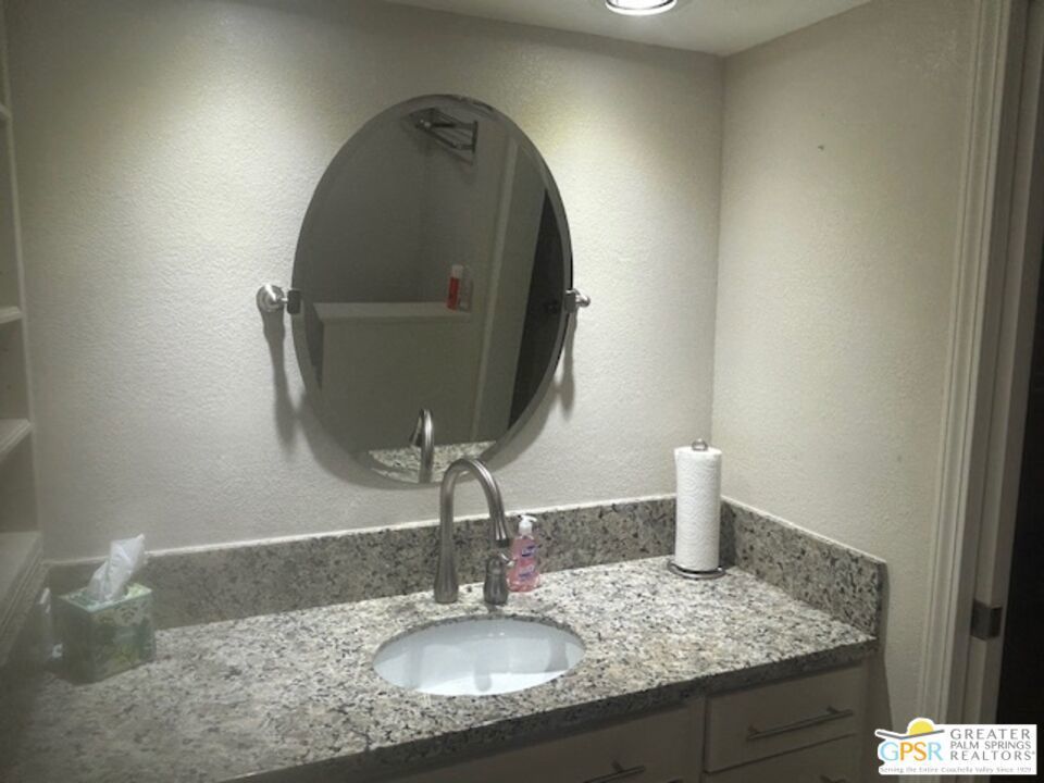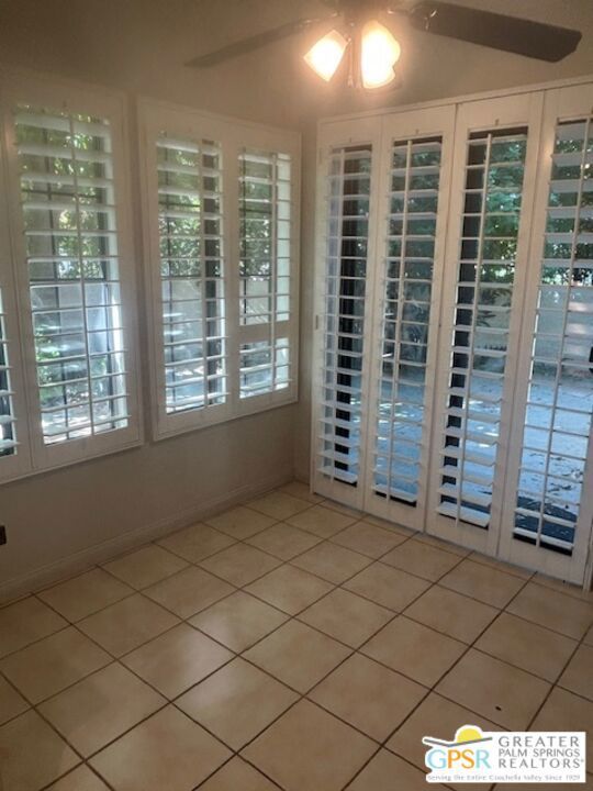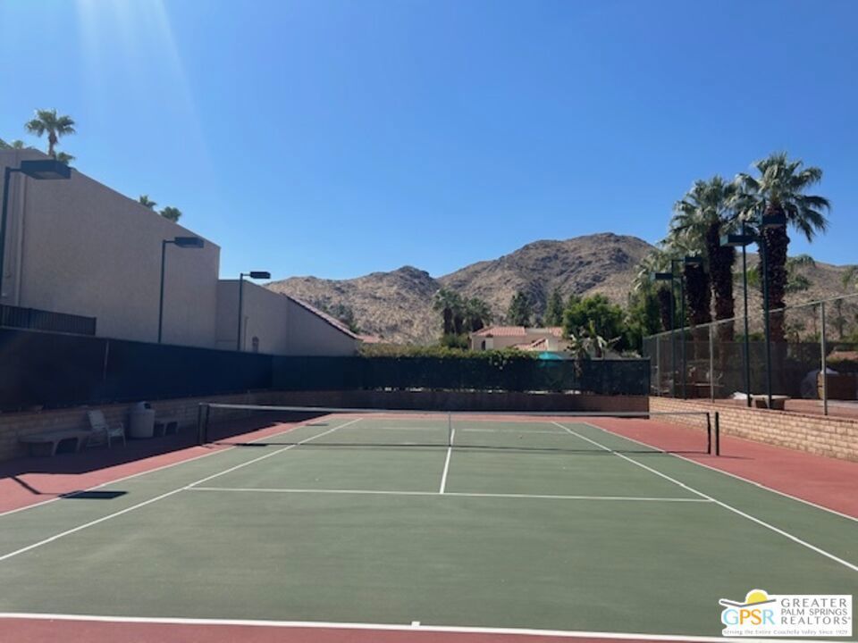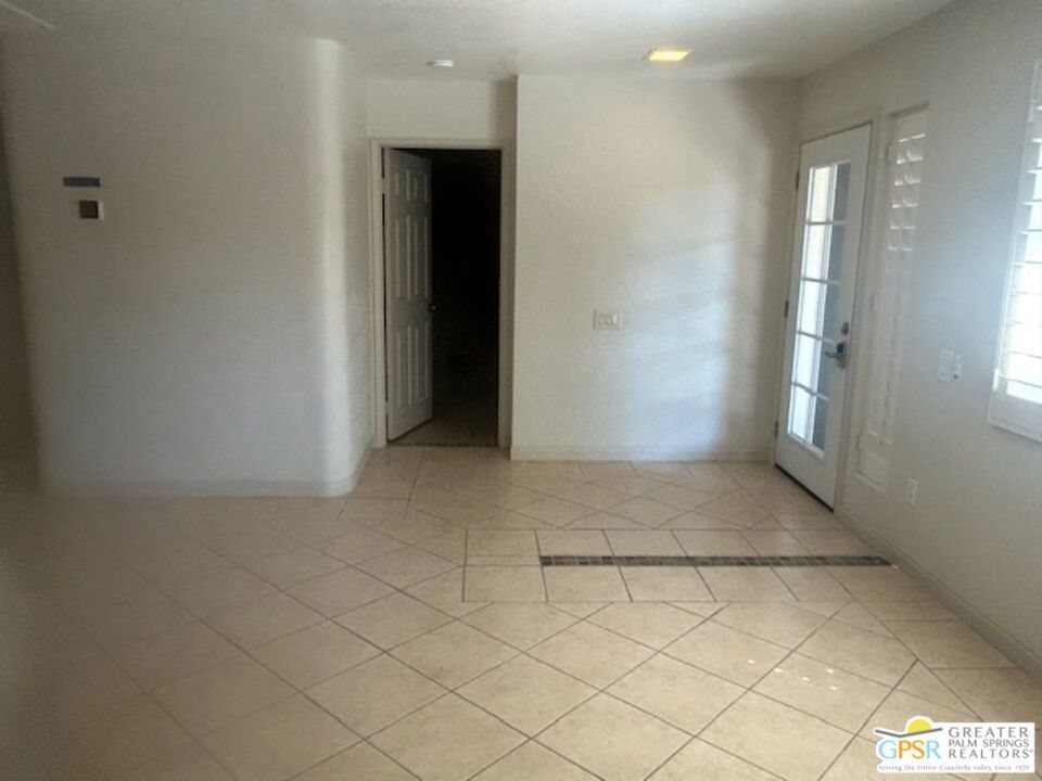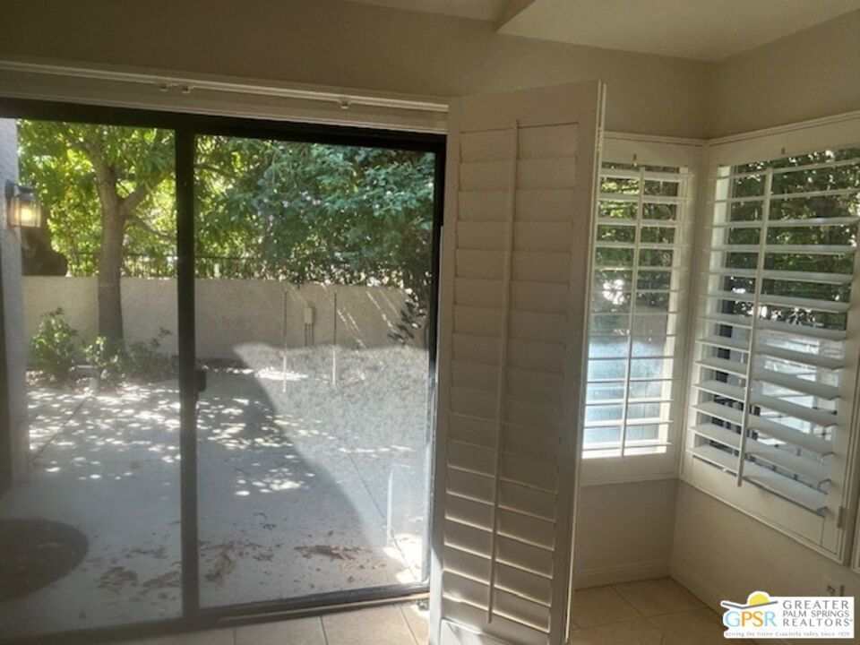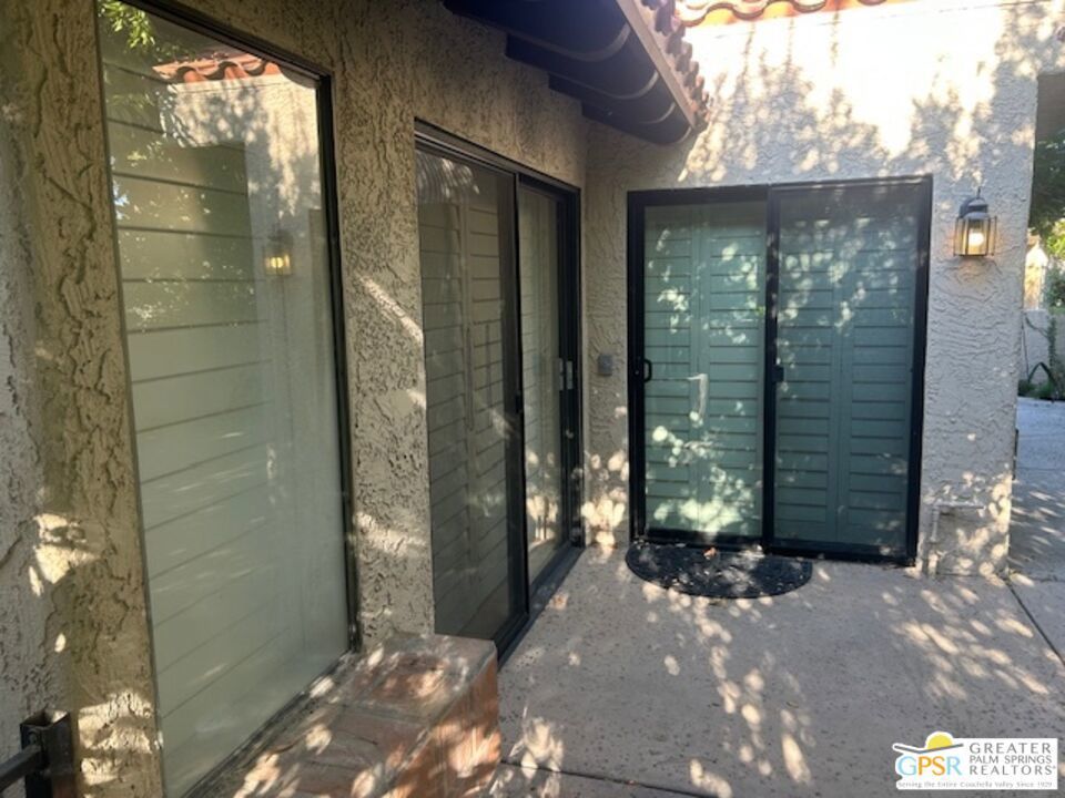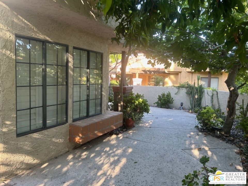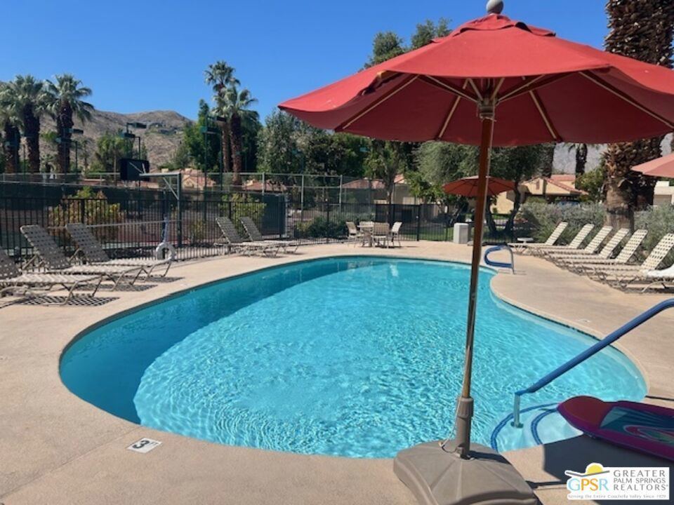 Welcome to your desert oasis in the gated community of Oasis Resort Condos in south Palm Springs. This charming end unit offers an inviting blend of comfort and luxury. With two spacious bedrooms and 2 baths, each bedroom provides a private retreat. The home is tiled throughout. The heart of this home is its large wrap-around private patio perfect for entertaining or unwinding amidst lush surroundings. Just steps away, you'll find the pool and spa, ideal for relaxation. The unit spans 1,252 square feet, featuring an open layout that includes a modern kitchen with quartz countertops and a cozy breakfast nook. Enjoy the convenience of a washer/dryer in the home. Additional amenities include a garage, guest parking, plantation shutters and central air conditioning. Situated in a pet-friendly, low-rise community, residents have access to a barbecue area, gym, tennis and bocce ball courts, pools; spas; clubhouse and more, all surrounded by beautifully landscaped grounds. An opportunity to enjoy resort-style living at its finest awaits you here. Broker and broker's agents do not represent or guarantee accuracy of the square footage, bedroom/bathroom count, lot size / dimensions, permitted or not permitted spaces, or other information concerning the conditions or features of the property. Buyer is advised to independently verify the accuracy of all information through personal inspection and with appropriate professionals.