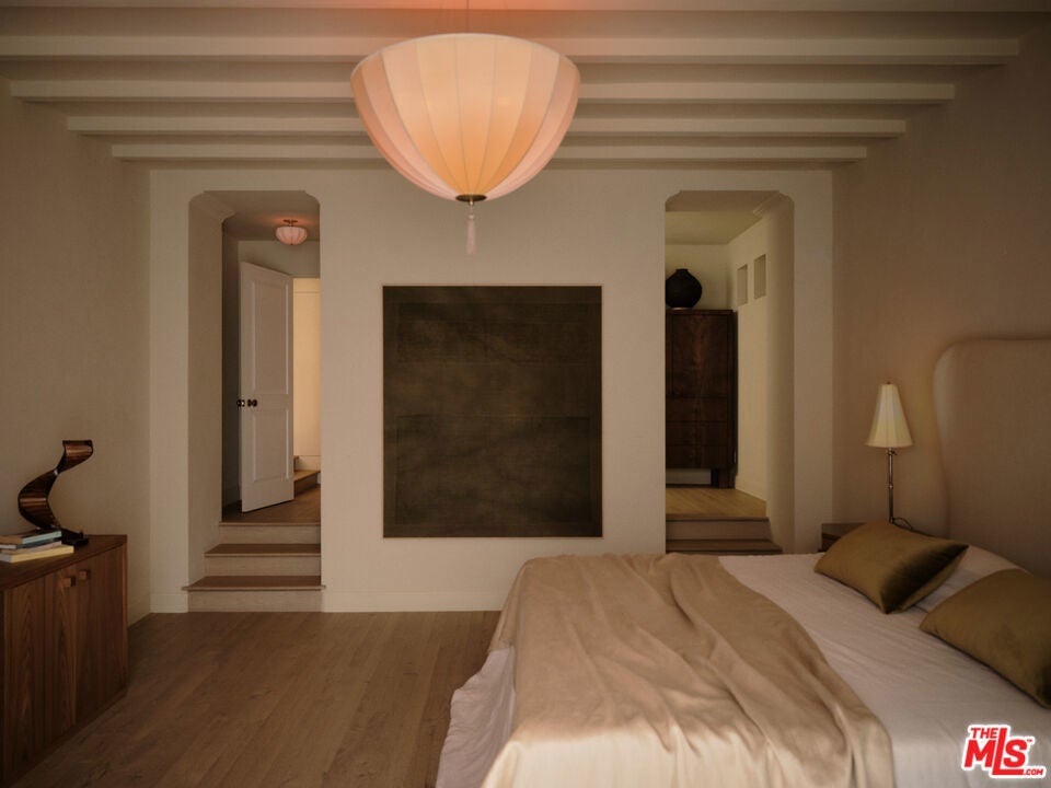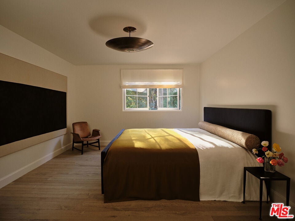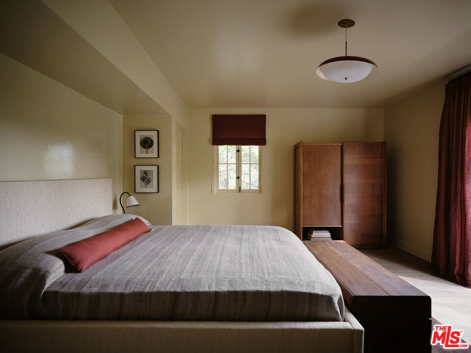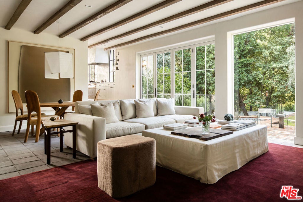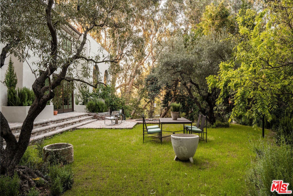 Nestled on a serene, discreet street, this expansive Spanish estate embodies timeless elegance. Originally designed by architect Fred Smathers and exquisitely reimagined by Broad Project, the home seamlessly blends classical architecture with modern sophistication. Thoughtfully updated, this 4-bedroom, 5-bathroom residence is enveloped by lush, mature landscaping, including stately olive, citrus, and eucalyptus trees. A shimmering pool and spa, multiple outdoor living areas, and an exceptional floor plan create a truly idyllic retreat. Stepping through the foyer, you are welcomed by stunning European oak floors that set the stage for the home's refined aesthetic. The soaring ceilings of the living room accentuate its grandeur, while a large picture window bathes the space in dappled natural light. A stately fireplace, framed by Roman clay walls, serves as a striking focal point, complemented by bespoke built-in cabinetry and Fortuny lighting that elevate the ambiance. The kitchen is a true masterpiece, featuring arched steel windows, a coveted Lacanche range, and a meticulously crafted solid oak island. Designed for both function and beauty, it flows seamlessly into the informal living room, where French bifold doors open to an expansive outdoor sanctuary. The primary suite is a private sanctuary of impeccable design, with French doors that lead to a secluded patio. Its spa-like ensuite bath is adorned with old-growth walnut built-ins, a luxurious soaking tub, and a walk-in steam shower. Two additional bedroom suites each feature elegantly appointed baths and spacious walk-in closets. Adjacent to the pool, a separate living space with a bar offers versatility for entertaining. Complete with a sauna and cold plunge, it is an ideal wellness retreat perfect as a home gym, office, or guest quarters. An exceptional property of beauty, tranquility, and understated luxury, offering warmth, privacy, and an unparalleled living experience.