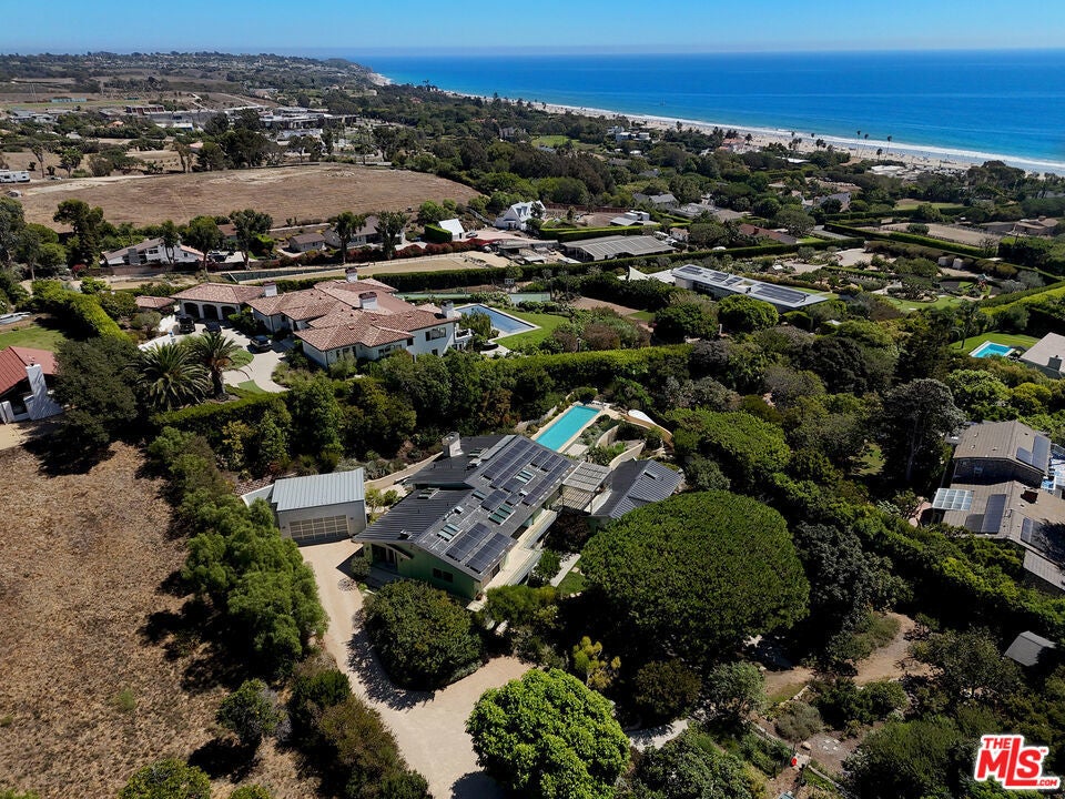 Malibu Retreat on Philip Avenue. Tucked away on approximately one acre with ocean views, this 5,966-square-foot estate combines modern sustainability with timeless California living. Designed for comfort and functionality, the property features a main residence and guest house powered by an advanced solar system with Tesla battery backups, ensuring peace of mind and continuous power, even during extended outages. Interior Highlights- the main level showcases walnut floors, while the lower level is finished in limestone. Expansive bedrooms include large walk-in closets and spa-inspired bathrooms with dual sinks, jacuzzi tubs, and private shower rooms. Automated Lutron lighting, programmable shades, and radiant heating provide both luxury and efficiency throughout. The chef's kitchen is fully equipped with a six-burner Viking gas cooktop, a wok burner, a 30" Viking electric oven, dual dishwashers, multiple refrigerators, and freezers, making it an entertainer's dream. Adjacent, the living spaces feature skylights, electric shades, and seamless indoor-outdoor flow. Exterior & Grounds - Outdoors, a 52-foot heated pool with an electric cover invites year-round enjoyment, complemented by a large Viking BBQ, heated patios, and landscaped vegetable gardens with drip irrigation. A standing seam roof, integrated alarm system, and automated exterior lighting offer durability and security. Guest House - The detached guest house includes its own solar source, electric water heater, radiant heating, and ceiling fans, ensuring complete independence and comfort. Dual laundry rooms, including a garage setup that operates during outages. Custom details include energy-efficient standing seam roofing and a Lutron lighting system. Security lighting is activated by bedside and entryway controls. This Malibu retreat balances modern sustainability with elegant living, making it an ideal sanctuary and just a quick walk to the beach.