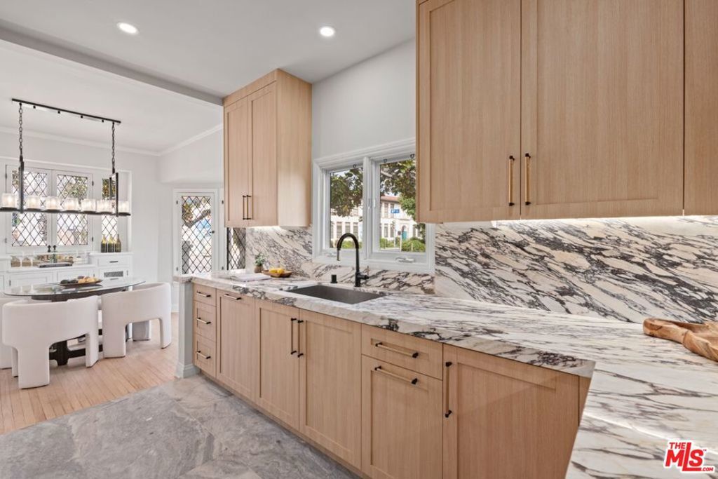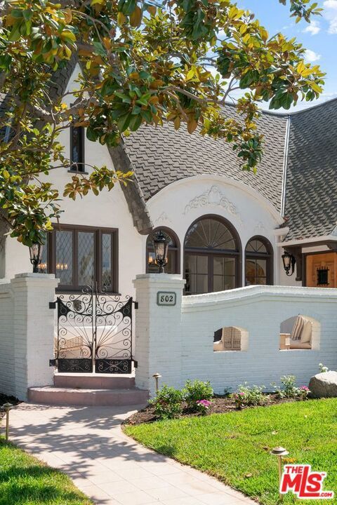 Located in the Historic Miracle Mile, this thoughtfully restored 1926 Tudor Revival brings together both preserved history and modern comfort with updated luxury amenities. The design inspiration respects the home's old-world character and European influences while bringing in modern warm tones and natural materials that complement the original architecture. The prominent gables giving the Tudor home its recognizable character are a mere glimpse of what to expect throughout. The floral motif detailing above the window arches is a hallmark of period-revival architecture, giving the facade character and emphasizing the craftsmanship of the era. The entry is framed by a handcrafted front door, which was carefully preserved by stripping it down to its original character. Inside, original details remain, including leaded glass windows, antique light fixtures, refinished hardwood floors, and a rare custom telephone alcove. The modern kitchen reflects design and function, showcasing Rift Oak cabinetry, Viola marble surfaces, and sleek sandblasted marble floors. Chef-grade appliances from Subzero, Wolf, and Bosch elevate the kitchen, while industrial hardware and a Brizo pot filler provide refined finishing details. The spacious primary suite continues the theme of timeless character blended with modern comfort. Its spa-inspired bath features porcelain floors, fogless backlit mirror, and an LED-lit shower niche. And, a heated towel warmer adds a thoughtful touch for those crisp mornings. Upstairs, Manhattan meets L.A., with a New York loft-style retreat unfolding with ample open space that runs the length of the house and provides multiple spaces of flexible use. Whether using the large family area for entertaining and one of the alcoves for a private retreat, this loft offers it all. Outdoor living balances heritage and comfort, with historic statuary and custom ironwork set alongside an Alfresco BBQ. The landscaping has thoughtfully been updated from front to back, and an oversized deck complements the backyard and is completed with a Jacuzzi spa. These spaces extend the home's character outward, creating an environment as memorable as the interiors. This residence celebrates the architectural heritage of Miracle Mile while offering the security of fully renewed systems, including electrical, plumbing, HVAC, and roofing. The garage is equipped with an electric car charger. This Tudor Revival is a true "brand-new hundred-year-old home".