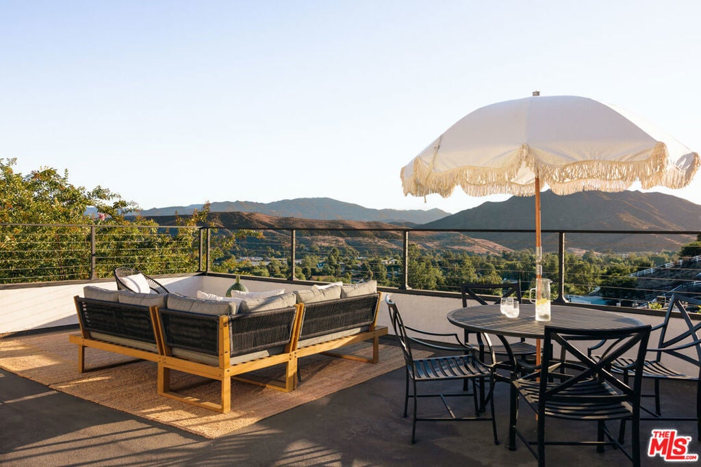 Motivated Sellers are ready to make a deal. The real question is...where will you be celebrating the holidays? Perched high above Old Agoura, this striking home blends sleek modern architecture with the serene beauty of its natural surroundings, where panoramic views of the Santa Monica Mountains frame a thoughtfully designed, private retreat of laid-back California elegance. A warm blend of Brazilian Ipe wood, smooth stucco, and natural stone sets the stage for contemporary living in harmony with the outdoors. Inside, an open-concept layout, soaring ceilings, and architectural windows invite streaming light, creating a serene and tranquil atmosphere. Additional wonderful outdoor spaces are perfect for sunset dinners, morning coffee, or lively entertaining with family and friends. Spanning more than 3,000 square feet, the home features a dramatic living room with expansive view-facing windows designed to bring the outdoors in. In the huge primary bedroom, you'll love the jaw-dropping picture windows framing views in every direction, and a stunning magazine-worthy spa-style primary bathroom. The wonderful four additional guest rooms are generously sized. The crown jewel is the extraordinary rooftop deck, where you can soak in sweeping views of the Santa Monica Mountains and sunsets you'll never forget. Recent upgrades blend style, function, and comfort, including a brand-new warrantied roof, two newer A/C and heating units, and some updated flooring and carpet. A sophisticated garage conversion showcases brand-new flooring and transforms into a flexible bonus haven featuring a private entrance, direct interior access, and a soundproof booth, an exceptional space for a creative studio, executive office, or stylish guest suite. (Bonus room not counted in square footage.) Just minutes from town yet tucked into a serene rural setting, the property lies within the sought-after award winning Las Virgenes School District. Outdoor enthusiasts will love direct access to hiking, biking, and equestrian trails at nearby Cheesebro National Park with Malibu's beaches only 20 minutes away.