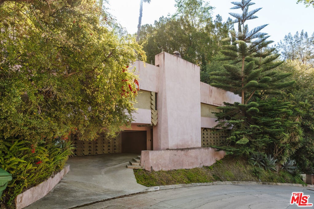 A once-in-a-lifetime opportunity to acquire the legendary David Lynch Compound: a private 2.3-acre hillside enclave that unites architectural pedigree, cultural history, and cinematic mythology in the heart of the Hollywood Hills. Anchoring the estate is the Beverly Johnson House, designed in 1963 by Lloyd Wright, son of Frank Lloyd Wright. Recognized by Historic Places LA as an "excellent example of Mid-Century Modern/Organic residential architecture," the house embodies the drama of hillside modernism with bold geometry, walls of glass, and a seamless flow between indoors and out. Over the years, Lynch expanded the property into a true compound by acquiring the two neighboring residences on Senalda Drive. At 7029 Senalda, he established the address for his production company, Asymmetrical Productions. At 7035 Senalda, he found cinematic inspiration in the home, later immortalized on screen as the Madison residence in Lost Highway (1997), which includes Lynch's private editing suite and screening room. Lynch commissioned Eric Lloyd Wright in 1991 to design a pool and pool house, extending the site's rare multi-generational Wright lineage. The director also collaborated on the creation of additional structures on the property, including a two-story guest house and another unique one-bedroom living space finished in his favored smooth grey plaster. Together, the three residences and ancillary structures form a cohesive, secluded compound of 5 contiguous parcels. A creative sanctuary and architectural landmark offered with a provenance unlike any other in Los Angeles.