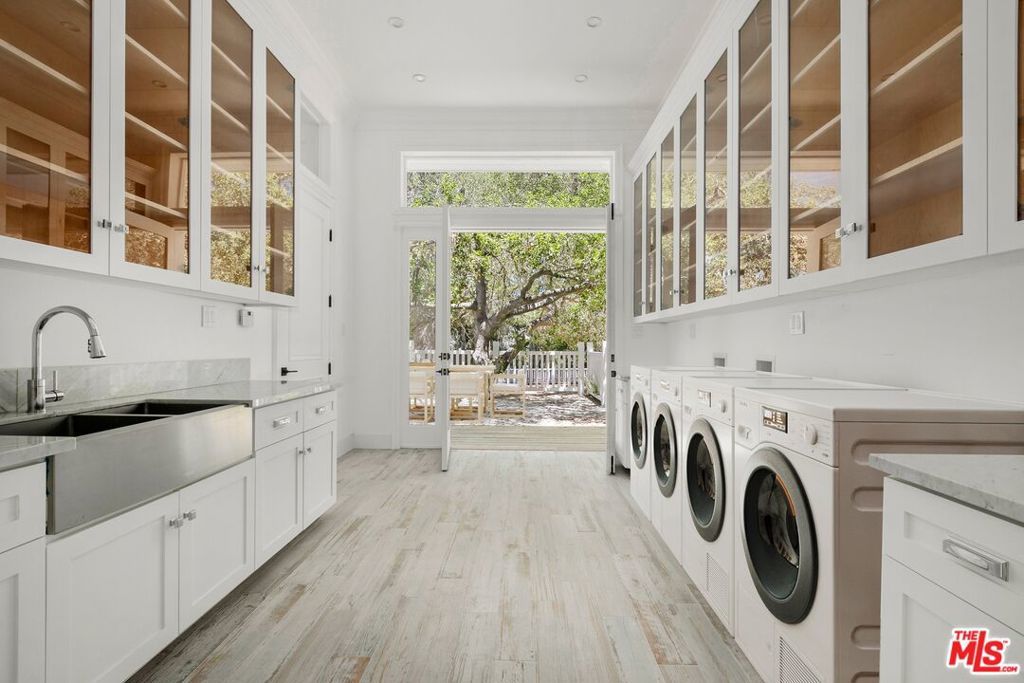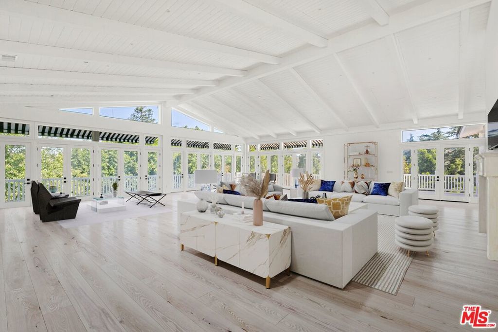 Owner is open to carrying first Trust Deed financing. This is truly a spectacular offering ready to live in and with huge upside. A combination of three separate APNs. The main house by itself was originally on the market for $25M and this present price includes 9609 Oak Pass making an entire compound with additional structures and 2nd Pool. Gated and secure, this absolutely unique compound on gated Oak Pass Road is surrounded by mature trees and mountain views. The estate spans both sides of Oak Pass Road with separate gated entrances. Like you are living in the countryside. Brand New approximately 10000 to 11000 Sq Ft Cape Cod+ 2000 Sq Ft Guest House. Huge Open Spaces. Room For Tennis Court/Pickle Ball Court. Multiple garages. The ceilings are literally soaring everywhere and the volume is way beyond a standard house of this size. Massive living room and family room off the gourmet kitchen as well as an enormous office/library/game room. Walls of glass and natural light everywhere. Spectacular primary suite with his and hers baths and adjacent nursery/sitting room. 5 additional spacious bedrooms en suite with the option for additional bedrooms downstairs in an immense and flexible space presently designed as a remarkable entertainment retreat, ideal for theater, lounge, game room and the like. Enormous resort size pool And Large Yard . Guest House is 1 bedroom 1 Bath. approx 2,000 SQ FT. Plus 3 car garage and direct entry below. Furnishings in photos of the main house are virtual renderings. EASY TO SHOW