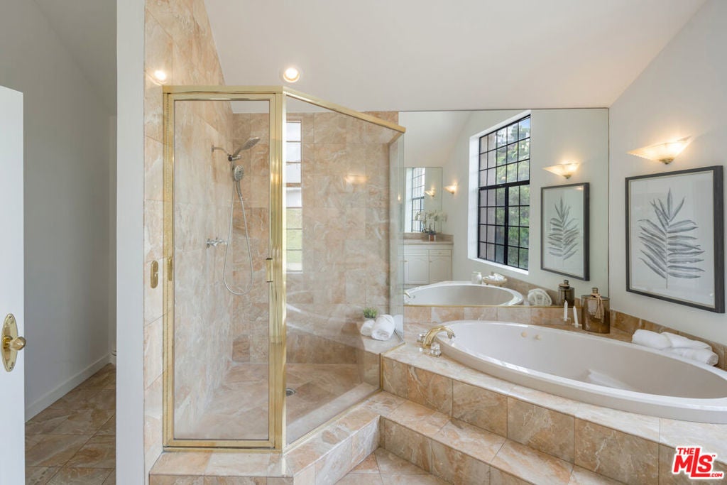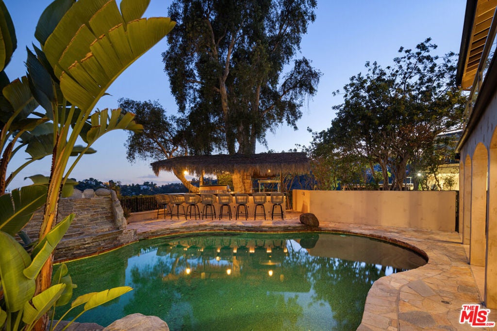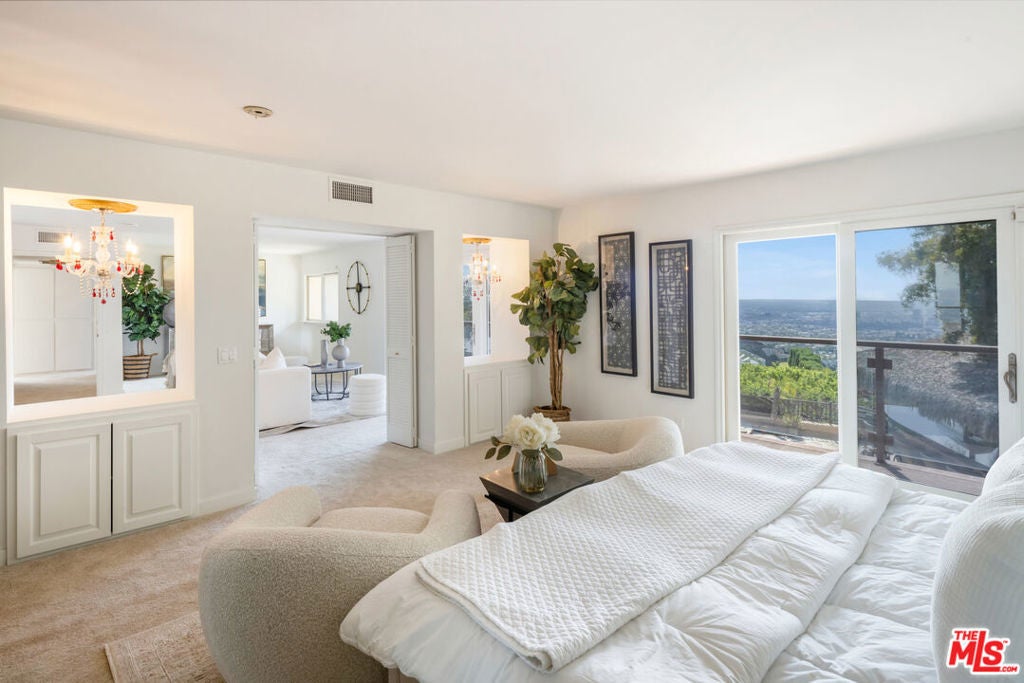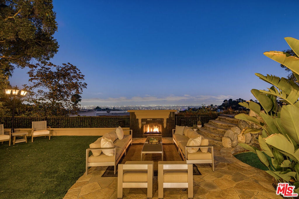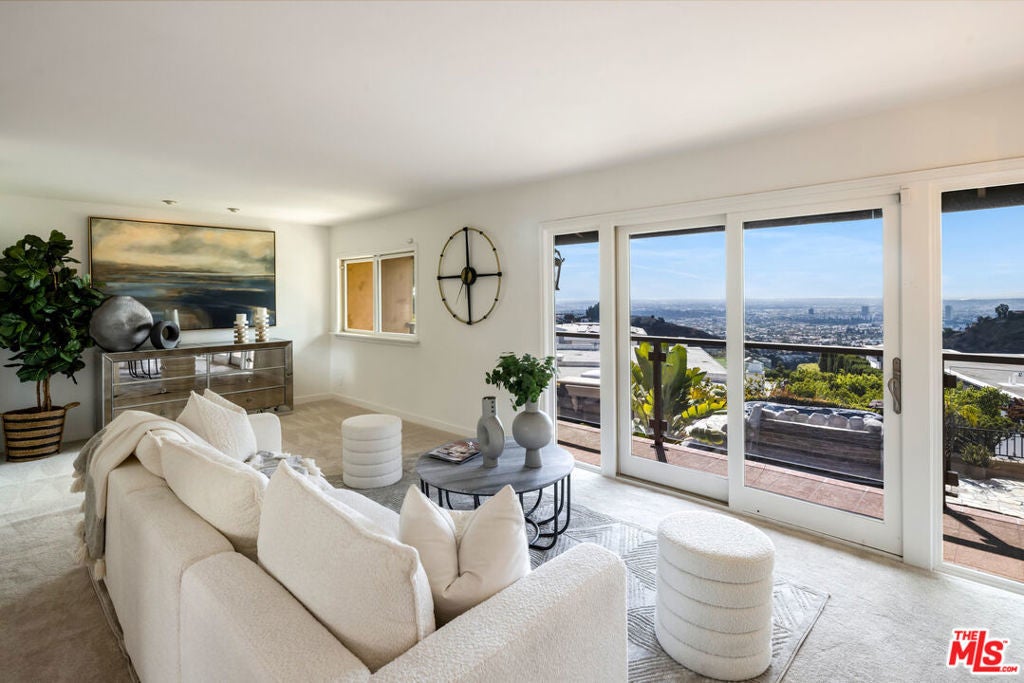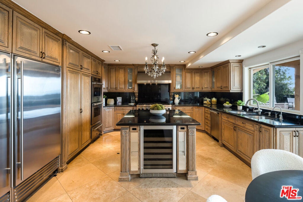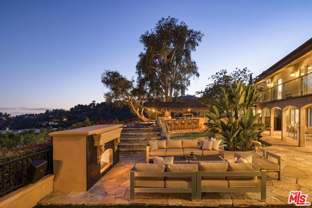 Welcome to 8000 Oceanus, an exquisite residence in the prestigious Mount Olympus enclave with breathtaking cityscape views. Positioned on a coveted corner lot, this nearly 4,000-square-foot home is filled with stunning custom details.Step into a dramatic formal entry featuring soaring cathedral ceilings, elegant chandeliers, and an impressive Onyx stone fireplace stretching from floor to ceiling. Entertain guests in the formal dining room under a dazzling crystal chandelier or ascend the custom wrought-iron staircase to the upper level.The gourmet kitchen is a chef's dream, equipped with top-of-the-line appliances including a Sub-Zero refrigerator, Thermador double oven, 6-burner cooktop with griddle, two warming drawers, granite countertops, and an oversized island with abundant storage and a wine fridge.The luxurious primary suite offers a private sanctuary with a spa-inspired en suite bath, jetted Jacuzzi tub, dual sinks, and two spacious walk-in closets. Step onto your own balcony to enjoy serene views of Downtown L.A. A second staircase off the den leads to a separate private suite, ideal for guests.With a three-car garage plus additional driveway parking, there's room for six vehicles. Outdoors, the meticulously landscaped backyard is perfect for both entertaining and relaxation, offering endless possibilities for gatherings or quiet evenings under the stars. Experience unforgettable sunrises and sunsets while enjoying the best of Mount Olympus living at 8000 Oceanus.
