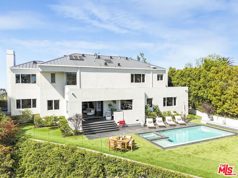 Sophisticated architectural residence in prime Bel Air with approx. 5,290 sq.ft., 5 bedrooms, 5.5 bathrooms, and full Control4 automation. Set on a rare flat pad with dual-sided views of the Pacific Ocean and the tranquil Bel Air canyons, this home offers seamless indoor-outdoor living and entertaining. A dramatic 20+ foot entry opens to an airy open floor plan with expansive living and dining areas, wide-plank wood floors, and walls of glass that frame lush views. The gourmet chef's kitchen features an oversized island, skylights, and direct flow to the dining and lounge spaces. Additional amenities include a home theater, gym, study, bar, and game area, while both the primary suite and living room enjoy fireplaces. The resort-style backyard is an entertainer's dream, complete with a sparkling pool and spa, expansive grassy yard, firepit lounge, and an outdoor dining loggia with a built-in BBQ kitchen. Multiple patios and terraces capture sweeping canyon and city vistas, while a private sports court offers both a basketball court and space for pickleball, providing year-round recreation. Ideally located just minutes to Sunset Blvd, the 405 Freeway, the Getty Center, and blocks from the prestigious John Thomas Dye School, this rare offering combines scale, privacy, and sophistication for the ultimate California lifestyle.