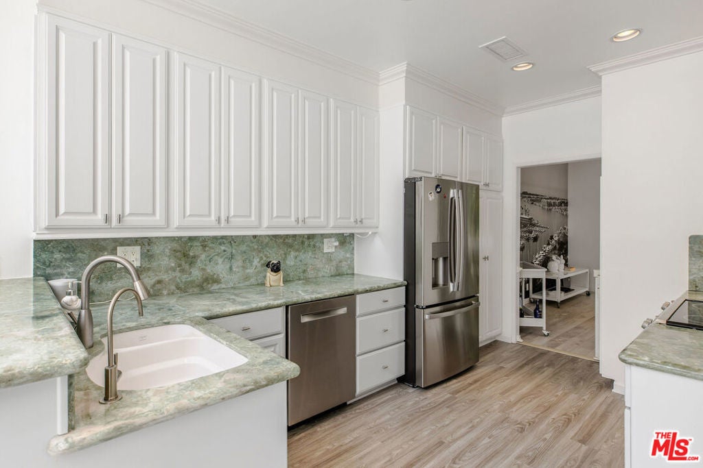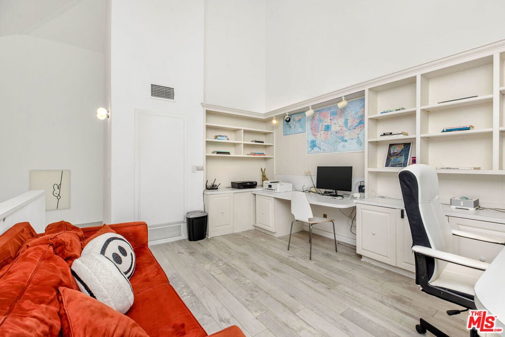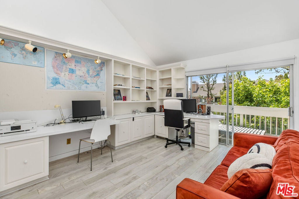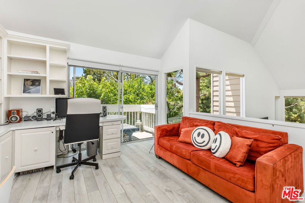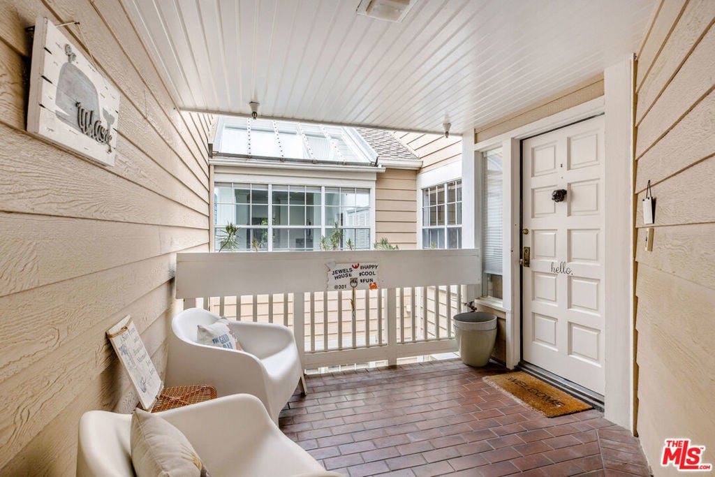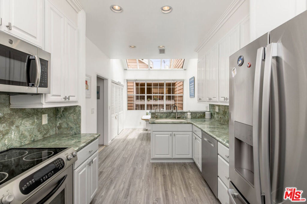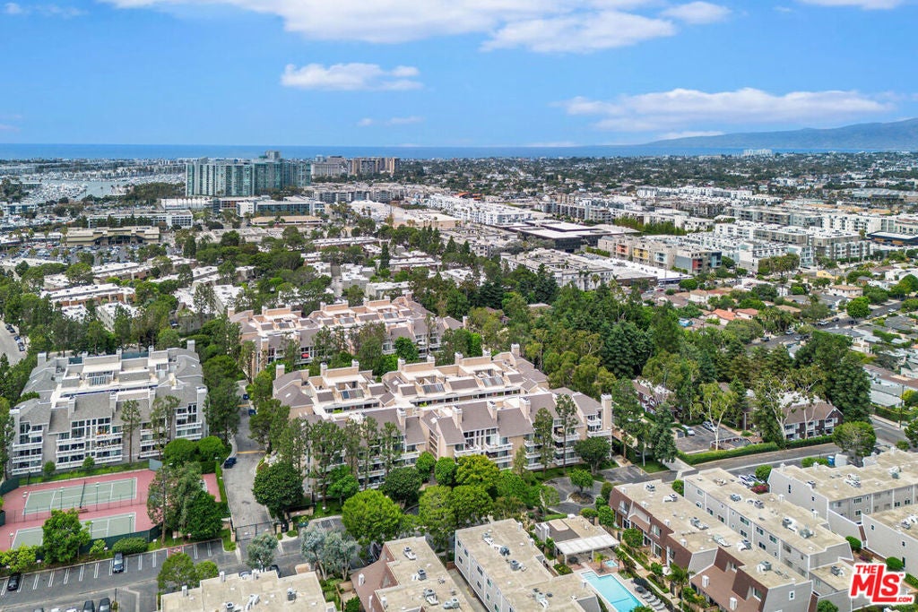 Welcome to your tree-top, corner penthouse-level Cape Cod style beach-lovers dream, where resort-style living meets storybook charm in the coveted Villa Marina East V community. Tucked within a peaceful, tree-lined community, this lushly landscaped, guard-gated oasis offers 24-hour security, giving you privacy, safety, and a daily dose of zen, next to the flowing brook and waterfall. As one of the rare corner penthouses in this serene enclave, this home delivers more than just a large floorplan, it's an experience. As you step inside and marvel at the soaring 25-foot cathedral ceilings, where sunlight pours in and the green foliaged canopy provides privacy to feel like you're the artists of your personal canvas. Bright light continues to flow throughout with huge skylights in the kitchen and the primary bathroom. Enjoy morning coffee or an evening glass of wine on your balcony as you soak in the sun. The two spacious bedrooms and renovated bathrooms are on the main floor while a versatile loft above awaits your imagination as either a home office, creative studio, or a cozy third bedroom with a private attached balcony. The ideal location of this unit offers a pool view through treetop views off either balcony. Your primary bedroom retreat is a spa-like sanctuary, boasting a massive ensuite with a jacuzzi tub, dual vanities, and a walk-in closet roomy enough for even the most enthusiastic shopper, and your secret surprise awaits. Luxury, privacy, and location all wrapped into a penthouse that feels like a hidden gem...maybe not quite Narnia, but it's close. And when it's time to adventure outside your personal paradise, your two side-by-side, elevator-adjacent parking spots (plus extra garage storage) make life effortless. This community doesn't just promise amenities, it delivers luxury and safety! A pool, hot tub, sauna, four tennis courts, a pickleball court, bike rooms, and generous guest parking for friends and family. All this, just minutes from the sand and surf, MDR Boardwalk, Marina Marketplace, bike paths, Trader Joe's, theaters, parks, restaurants, freeways, and LAX.
