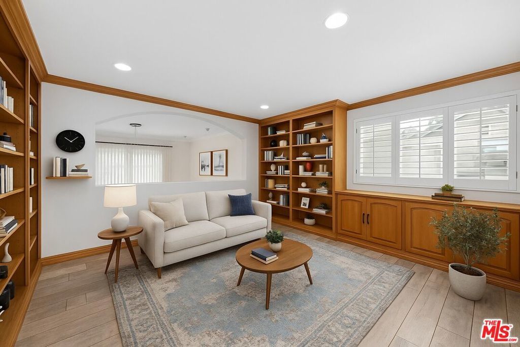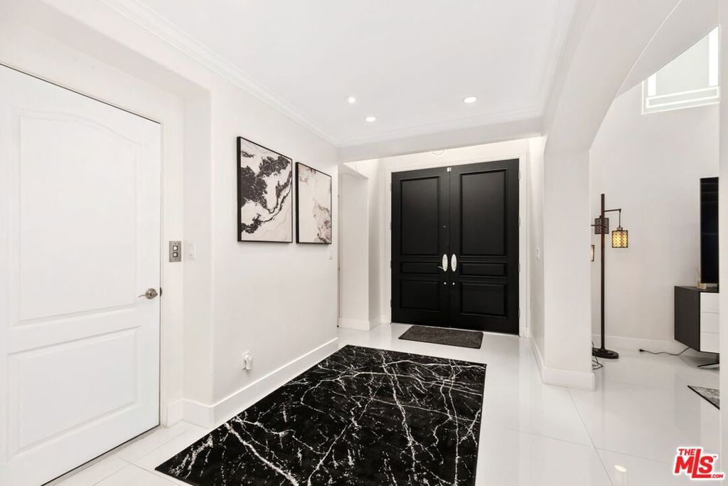 PREMIER FRONT-FACING CORNER RESIDENCE IN BRENTWOOD'S MAYFIELD GARDENS. Discover Brentwood living at its best in Mayfield Gardens, an intimate Mediterranean-inspired community of just eight homes behind a private gated entry. This rare, front-facing corner townhome is the largest and best unit in the complex, offering expansive interiors and abundant natural light throughout the day. Enter through a lush courtyard with mature landscaping and a tranquil fountain that sets the tone for refined living. Inside, soaring ceilings, polished marble floors, and a grand fireplace anchor the formal living room, which flows seamlessly into a dining area ideal for entertaining or relaxed evenings. The chef's kitchen boasts Viking and Sub-Zero appliances, marble countertops, and a large center island designed for both everyday meals and gatherings. A dedicated office with custom built-ins adds versatility, also suitable as a den, library or media room. Upstairs, the primary suite is a private retreat with a walk-in closet, dressing area, and spa-style bath with soaking tub, oversized shower, and dual vanities. Three additional en-suite bedrooms provide flexibility for family, guests, or creative space. A private rooftop deck crowns the home with sweeping city and mountain views, ideal for morning coffee, sunset gatherings, or weekend barbecues. Direct entry from a private two-car garage and an in-unit elevator ensure ease and convenience across all levels. Perfectly positioned between Montana Avenue and Wilshire Boulevard, this light-filled Brentwood residence is moments from boutiques, cafes, and the iconic Country Mart. This is a rare chance to own the largest, most desirable residence in a highly sought-after gated community.