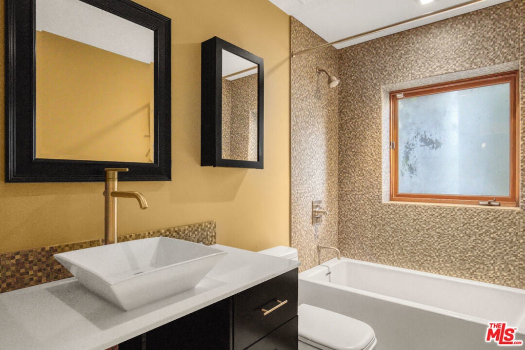 Architectural Stunner with Breath taking Views in the Iconic Hollywood Hills Live above it all in this fully furnished, move-in-ready retreat nestled in the coveted Hollywood Hills just steps from Runyon Canyon and Wattles Garden Park. With panoramic city and mountain views, this striking architectural home offers the perfect blend of luxury, privacy, and vibrant LA living. Freshly upgraded in Spring 2025, the residence features brand-new windows, polished concrete floors, refinished hardwood in the main suite, fresh paint inside and out, and a comprehensive deep clean throughout just bring your toothbrush!Inside, enjoy two expansive primary suites with spa-style bathrooms. The main suite boasts a walk-in closet, free standing soaking tub, and private patio with direct access to the backyard hot tub. The second suite includes dual closets, a renovated shower, and its own private entrance to the spa area.The main level is designed for entertaining, with two sunlit living rooms, an open-concept kitchen with pantry, a formal dining area, guest powder room, and a large patio ideal for al fresco dining or sunset lounging.The lower level features a private home theater with bar, a flexible bonus room for a gym, office, or play room, full bath, laundry, and a separate guest suite with its own bathroom ideal for extended guests or a creative workspace. With a three-car garage and additional driveway parking, this home delivers both style and convenience. Experience indoor-outdoor California living at its best, just minutes from hiking, nightlife, and the heart of the city.