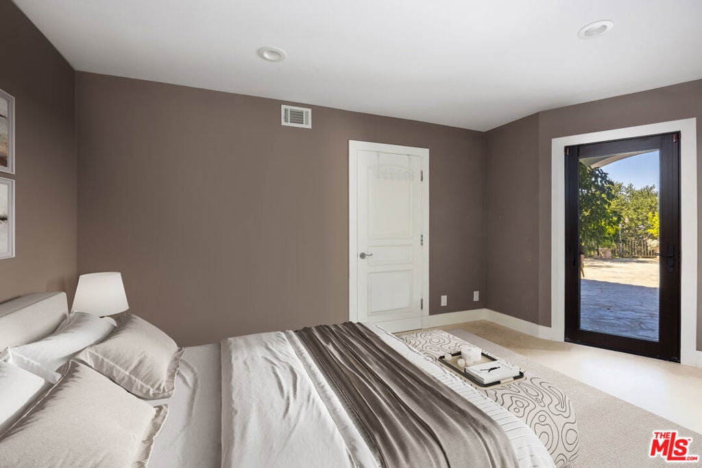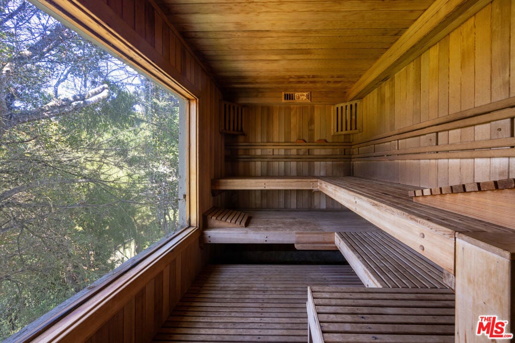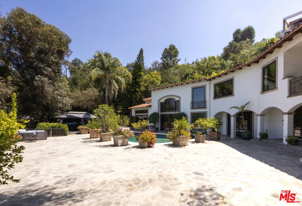 Set in a private hillside setting, this Mediterranean-inspired estate balances timeless architecture with refined 2023 renovations. A gated drive leads to a sweeping motor court framed by mature landscaping, a covered carport, and multiple garages, setting the stage for both grandeur and privacy. Inside, natural light pours through all-new Pella windows and doors, highlighting reimagined interiors. The main and upper levels were extensively remodeled, including a complete transformation of the kitchen and bar, spa-like bathroom renovations, and new upper-level flooring, bringing a fresh sense of sophistication to every space. Grand entertaining rooms with soaring ceilings and a wrought-iron staircase transition seamlessly outdoors, while a lounge and custom bar connect directly to the pool terrace. The chef's kitchen showcases striking stone surfaces, custom cabinetry, and professional-grade appliances, paired with a breakfast nook overlooking the gardens. Additional living spaces include a family room, gym, office, and a media room with theater-style projection. Seven bedrooms provide comfort and scale, anchored by a serene primary suite with fireplace, spa-inspired bath, dual vanities, soaking tub, and private balcony. Resort-style amenities include a temperature-controlled wine cellar, wood-lined sauna, versatile game and lounge areas, and fluid indoor outdoor living. The backyard is a private sanctuary with a shimmering pool, shaded cabanas, expansive patios, and vibrant gardens. This estate may be purchased separately or together with the neighboring parcel at 13345 Mulholland Drive (MLS #: 25591609), a rare scale for the area and an extraordinary canvas for a private compound. Minutes from the city yet worlds away in ambiance, this residence offers tranquility, versatility, and a lifestyle equally suited for entertaining or everyday living.