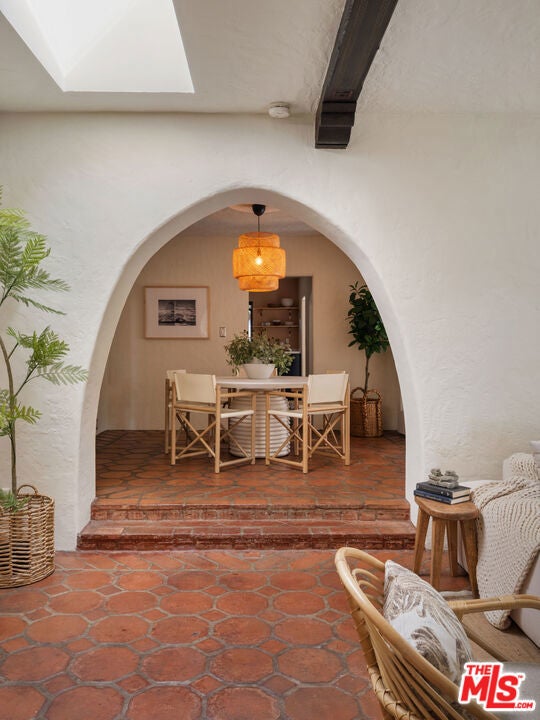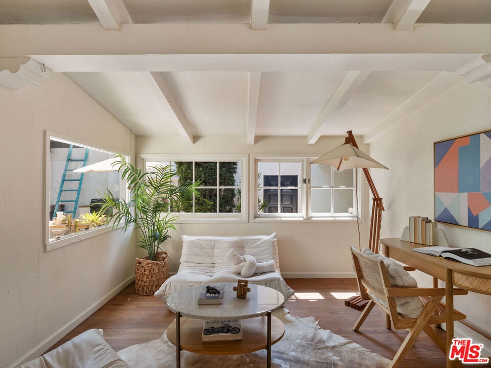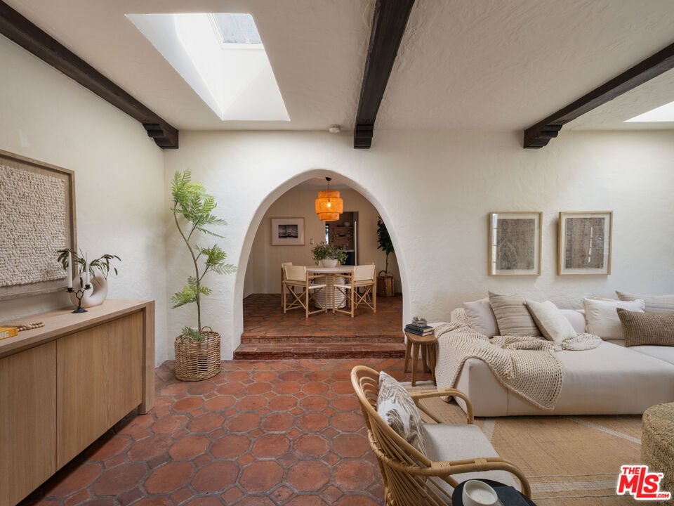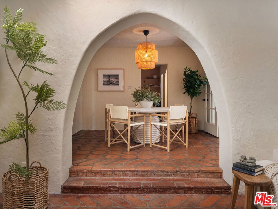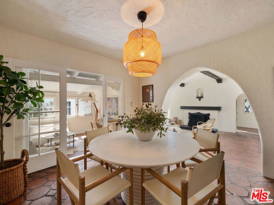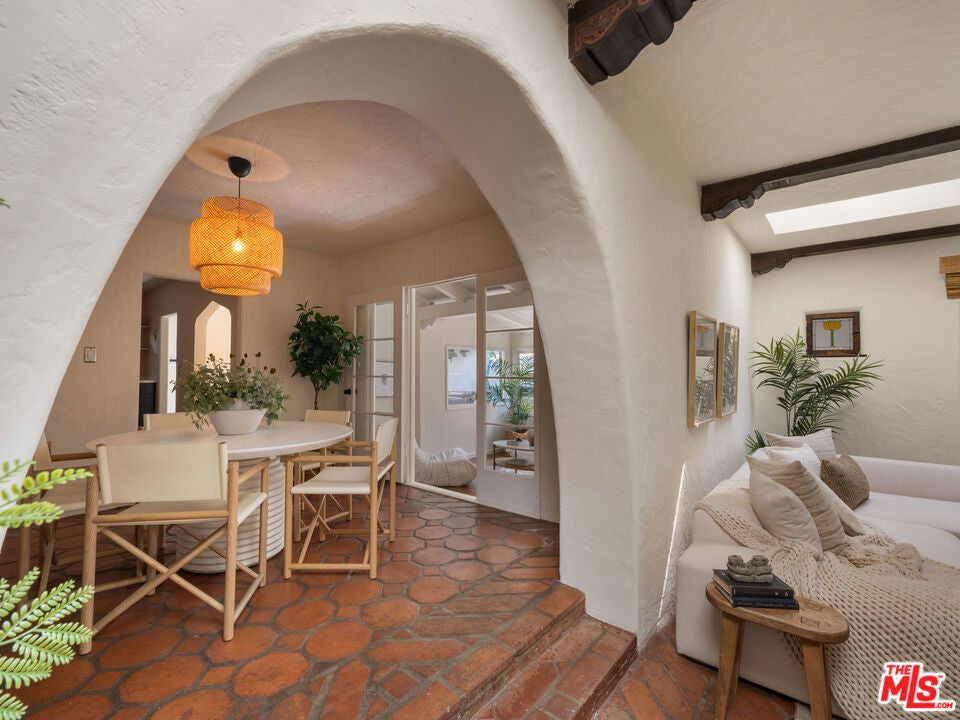 A stunning 1926 Spanish-style residence that beautifully marries original architectural details with modern upgrades. Nestled in the vibrant neighborhood of Venice, CA, this home offers a seamless blend of historic charm and contemporary living.Spanning 1,484 square feet, this two-bedroom, two-bathroom home showcases original wood beams and terracotta floors, preserving the character and elegance of its Spanish heritage. The refinished original hardwood floors further enhance the warmth and authenticity of this unique home.The new kitchen is a culinary masterpiece, featuring modern appliances and sleek design elements, while the cozy breakfast nook invites casual dining experiences. Both bathrooms have been cosmetically refined to offer modern comfort while maintaining the home's historic charm.Relax in the spacious living area, where a original fireplace serves as a captivating centerpiece, or step outside to enjoy the private outdoor space with a additional fire place perfect for entertaining or relaxing in the hot tub.Practical amenities include an in-unit washer and dryer, a new HVAC system for optimal climate control, and a tankless hot water heater providing endless hot water. The home is equipped with an alarm system and a sprinkler system to maintain the beautifully landscaped yard.The garage, which can double as a versatile flex space, offers additional options for parking, storage, or creative use. With parking included and the home offered unfurnished, this property is ready for you to personalize and make your own.