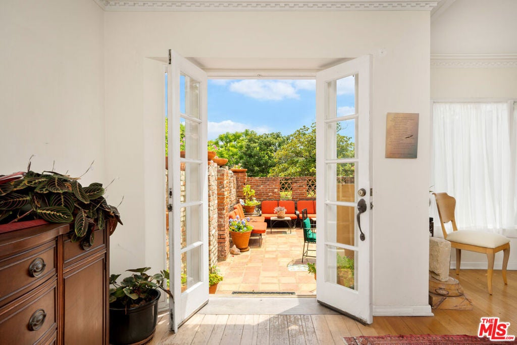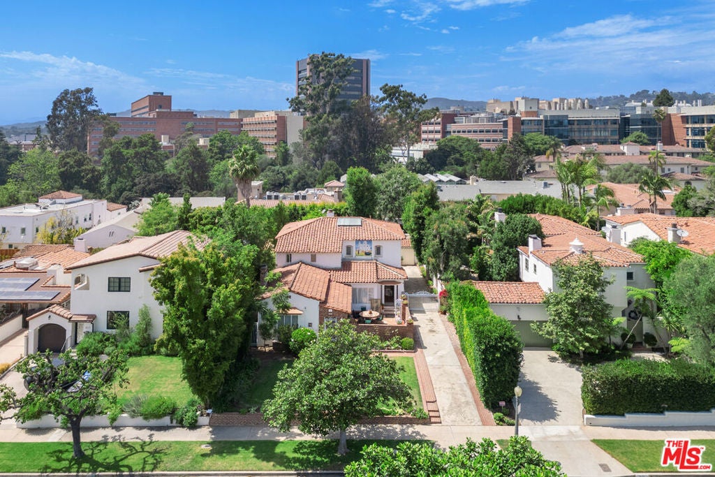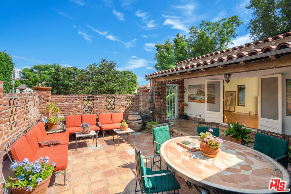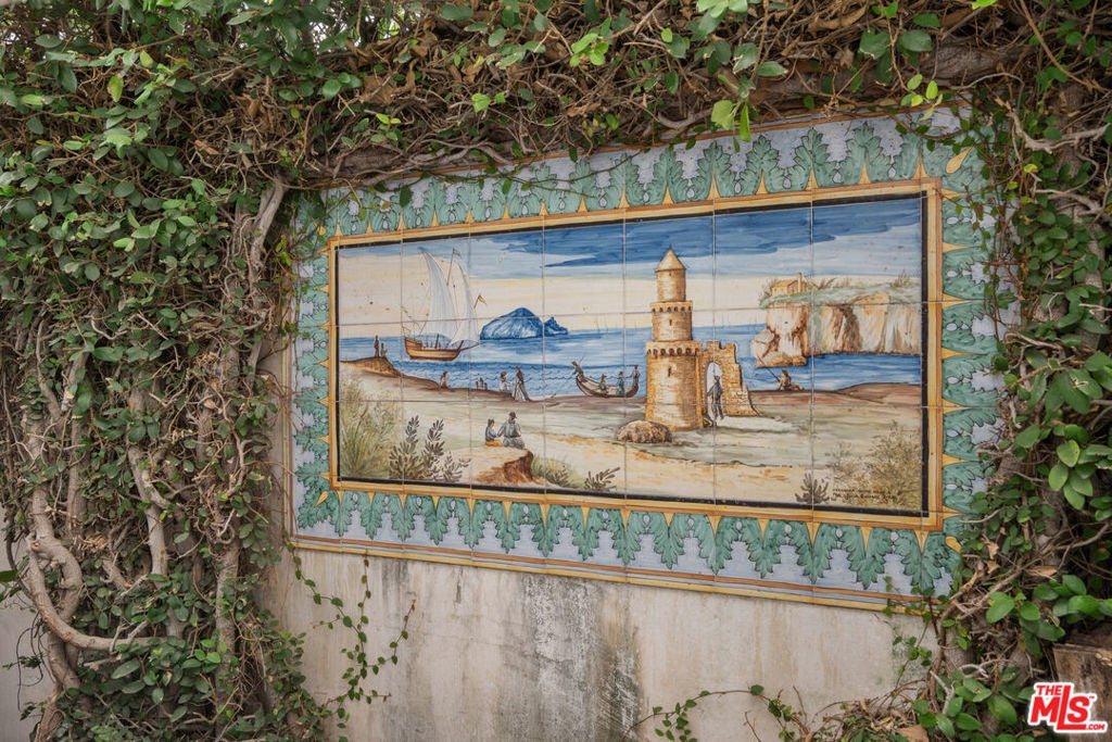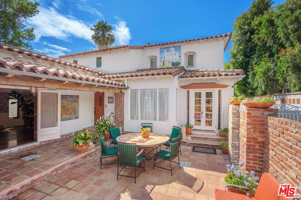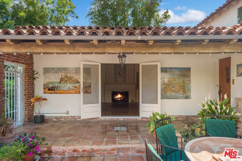 Timeless Mediterranean Elegance in Little Holmby. Nestled on a quiet, picturesque, tree-lined street, this 1930s Mediterranean residence embodies the romance of old-world craftsmanship infused with sophisticated European flair. With 5 bedrooms, 6 baths, and over 3,600 sq. ft., it is a rare offering in one of Los Angeles' most sought-after enclaves, moments from UCLA, Holmby Park, Beverly Hills, and the acclaimed Warner Avenue School. From the very first step inside, the home enchants with its warmth and detail. A private, enclosed courtyard with French doors leading from both the dining and living rooms sets the stage for effortless indoor/outdoor entertaining. Period craftsmanship is evident throughout, with soaring beamed ceilings, vintage Spanish tiles, rich hardwood floors, intricate crown and coffered moldings, and exquisite hand-painted Italian mosaic murals that elevate the home's artistry, stunningly showcased through several windows in the home. The step-down living room, anchored by a grand fireplace beneath exposed beams, exudes character, while the adjacent formal dining room offers timeless elegance for gatherings. The chef's kitchen combines function and charm, complete with stainless steel appliances, granite countertops, multiple prep areas, and a wine cooler. Additional living spaces include a wood-paneled study, a game room, and a refined den...all oriented toward the home's exquisite exterior details and natural light. The lower level includes two bedrooms, one a generous mini-primary with vintage-tiled bath, the other a cozy en-suite ideal for guests or staff. A sunlit staircase leads to the upper level, where the primary suite reveals its own fireplace, voluminous walk-in closet, spa-inspired bath, and a covered balcony overlooking serene treetops...a perfect way to start any day. A secondary upstairs en-suite bedroom completes the private wing. The hallway has an incredible bookcase to house all your favorite classics. At the rear, a large, tiled patio invites al fresco dining and festive gatherings, surrounded by unique tile artistry. The converted garage/guest house, complete with bath, serves as a versatile space for guests or as a home office, with ADU approval in process. This home is more than a residence it is a piece of architectural history. Beyond its enduring beauty, it offers an unrivaled location near UCLA, Westwood Village, Bel Air, Century City Mall, Beverly Hills, and Holmby Park, combining tranquility with world-class convenience.