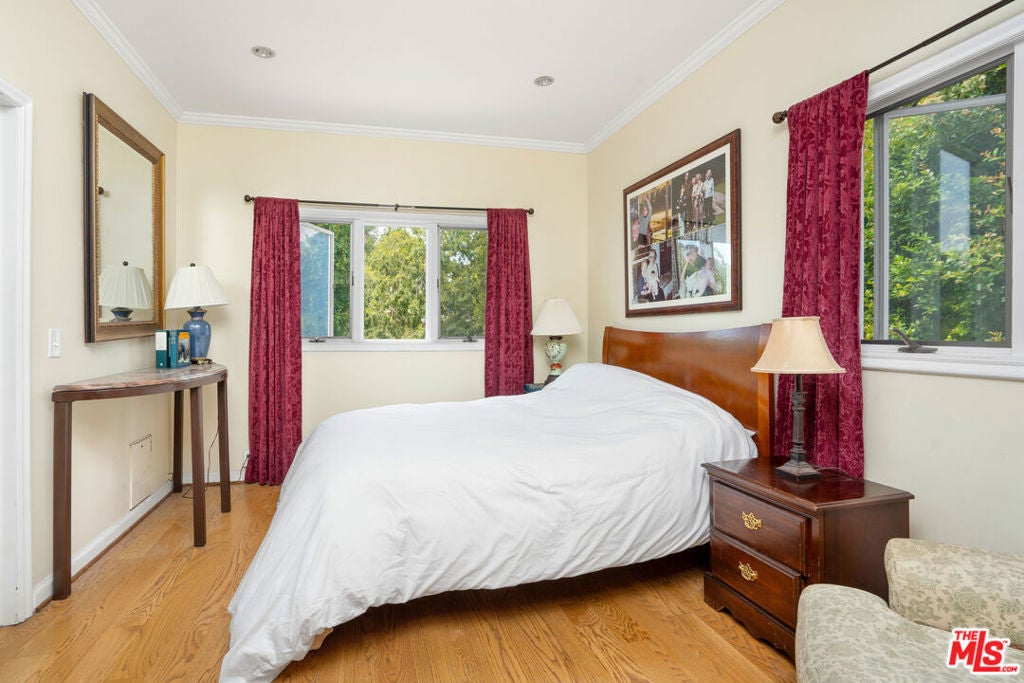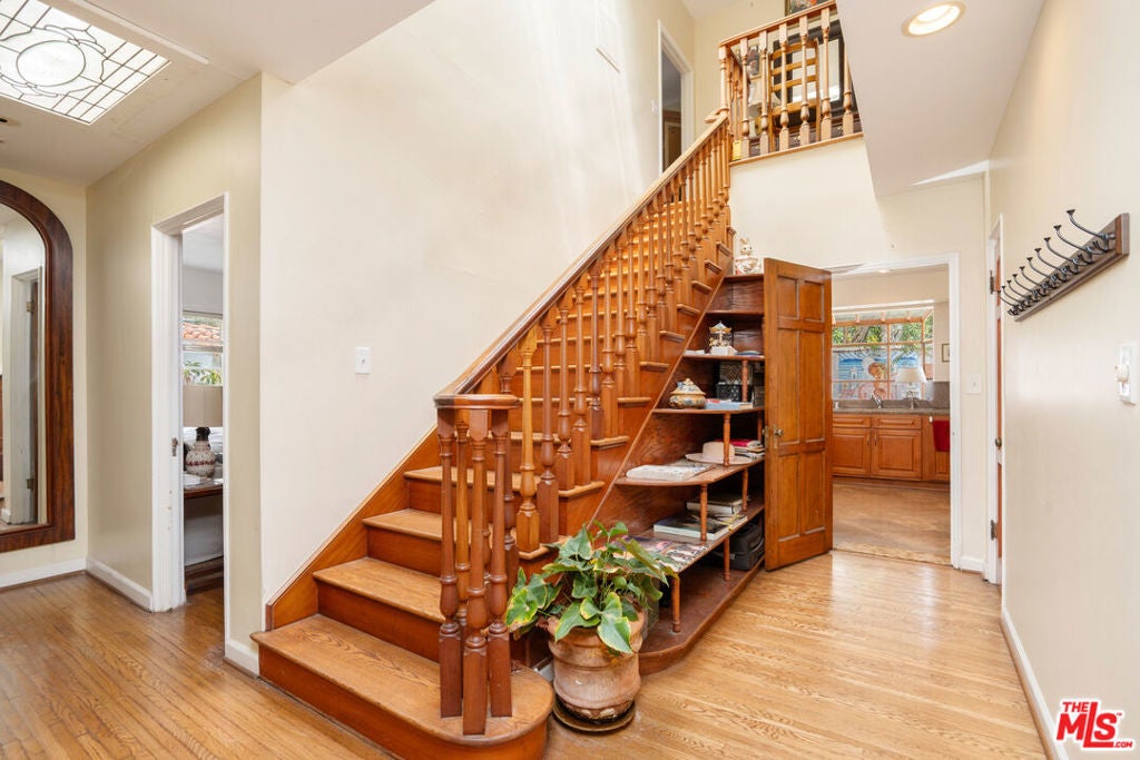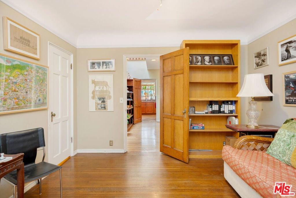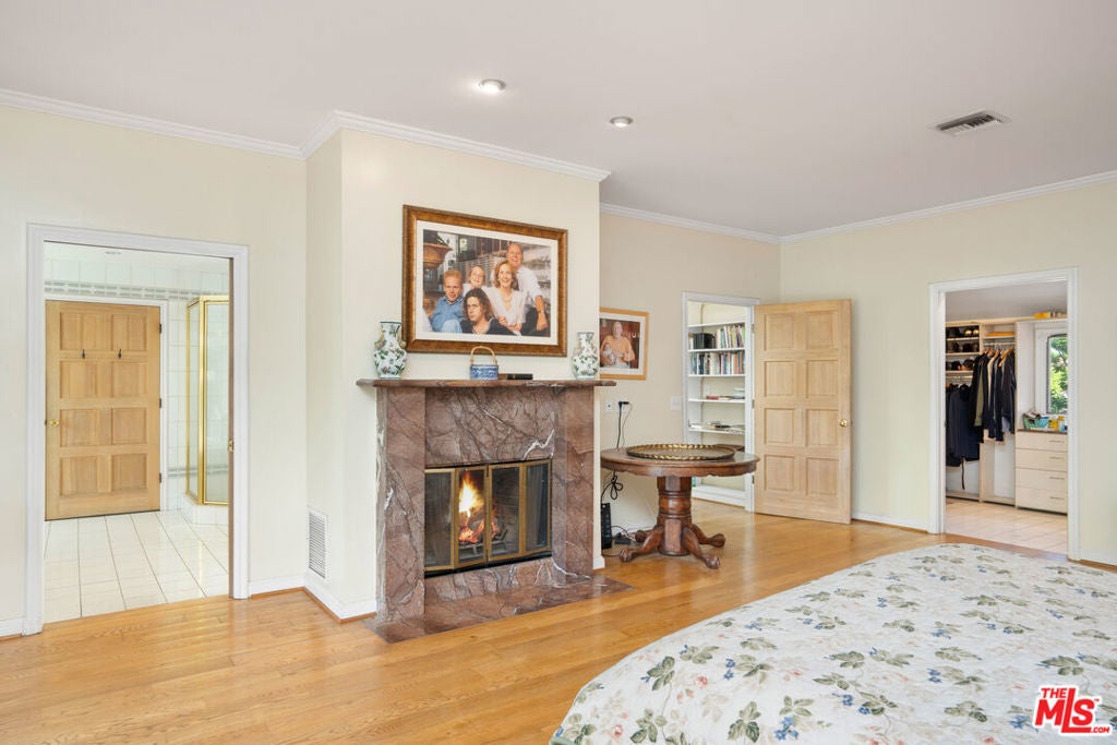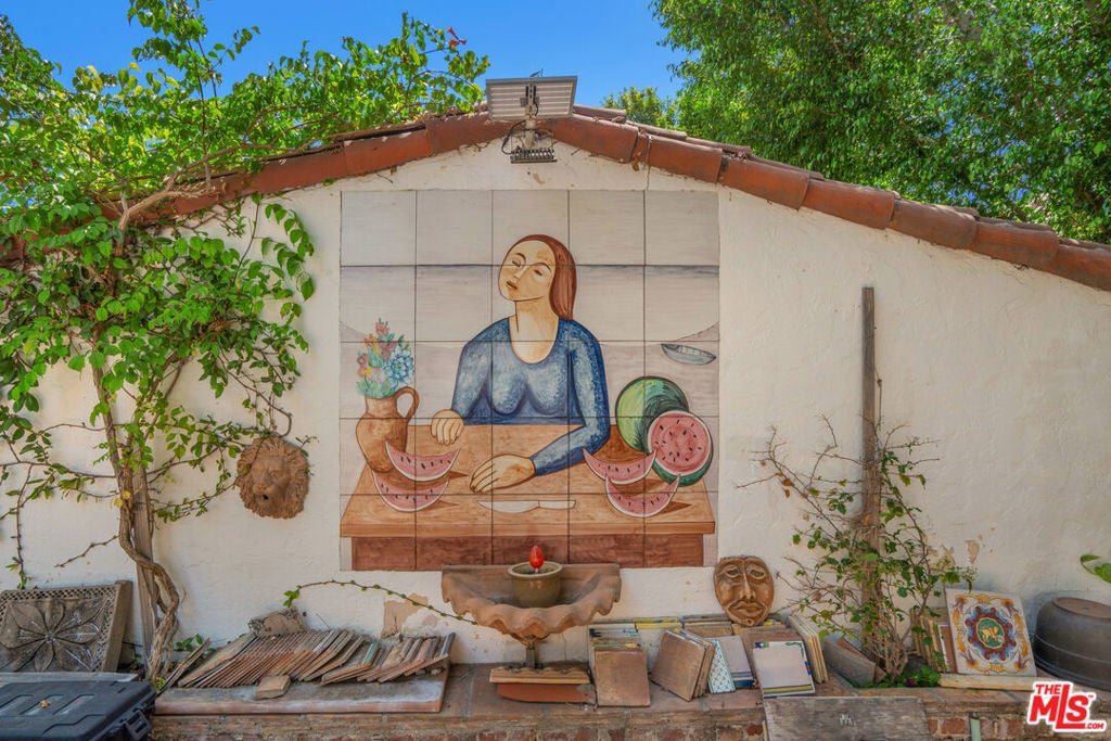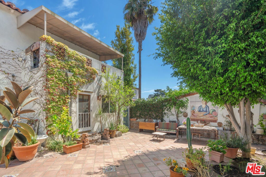 Timeless Mediterranean Elegance in Little Holmby. Nestled on a quiet, picturesque, tree-lined street, this 1930s Mediterranean residence embodies the romance of old-world craftsmanship infused with sophisticated European flair. With 5 bedrooms, 6 baths, and over 3,600 sq. ft., it is a rare offering in one of Los Angeles' most sought-after enclaves, moments from UCLA, Holmby Park, Beverly Hills, and the acclaimed Warner Avenue School. From the very first step inside, the home enchants with its warmth and detail. A private, enclosed courtyard with French doors leading from both the dining and living rooms sets the stage for effortless indoor/outdoor entertaining. Period craftsmanship is evident throughout, with soaring beamed ceilings, vintage Spanish tiles, rich hardwood floors, intricate crown and coffered moldings, and exquisite hand-painted Italian mosaic murals that elevate the home's artistry, stunningly showcased through several windows in the home. The step-down living room, anchored by a grand fireplace beneath exposed beams, exudes character, while the adjacent formal dining room offers timeless elegance for gatherings. The chef's kitchen combines function and charm, complete with stainless steel appliances, granite countertops, multiple prep areas, and a wine cooler. Additional living spaces include a wood-paneled study, a game room, and a refined den...all oriented toward the home's exquisite exterior details and natural light. The lower level includes two bedrooms, one a generous mini-primary with vintage-tiled bath, the other a cozy en-suite ideal for guests or staff. A sunlit staircase leads to the upper level, where the primary suite reveals its own fireplace, voluminous walk-in closet, spa-inspired bath, and a covered balcony overlooking serene treetops...a perfect way to start any day. A secondary upstairs en-suite bedroom completes the private wing. The hallway has an incredible bookcase to house all your favorite classics. At the rear, a large, tiled patio invites al fresco dining and festive gatherings, surrounded by unique tile artistry. The converted garage/guest house, complete with bath, serves as a versatile space for guests or as a home office, with ADU approval in process. This home is more than a residence it is a piece of architectural history. Beyond its enduring beauty, it offers an unrivaled location near UCLA, Westwood Village, Bel Air, Century City Mall, Beverly Hills, and Holmby Park, combining tranquility with world-class convenience.