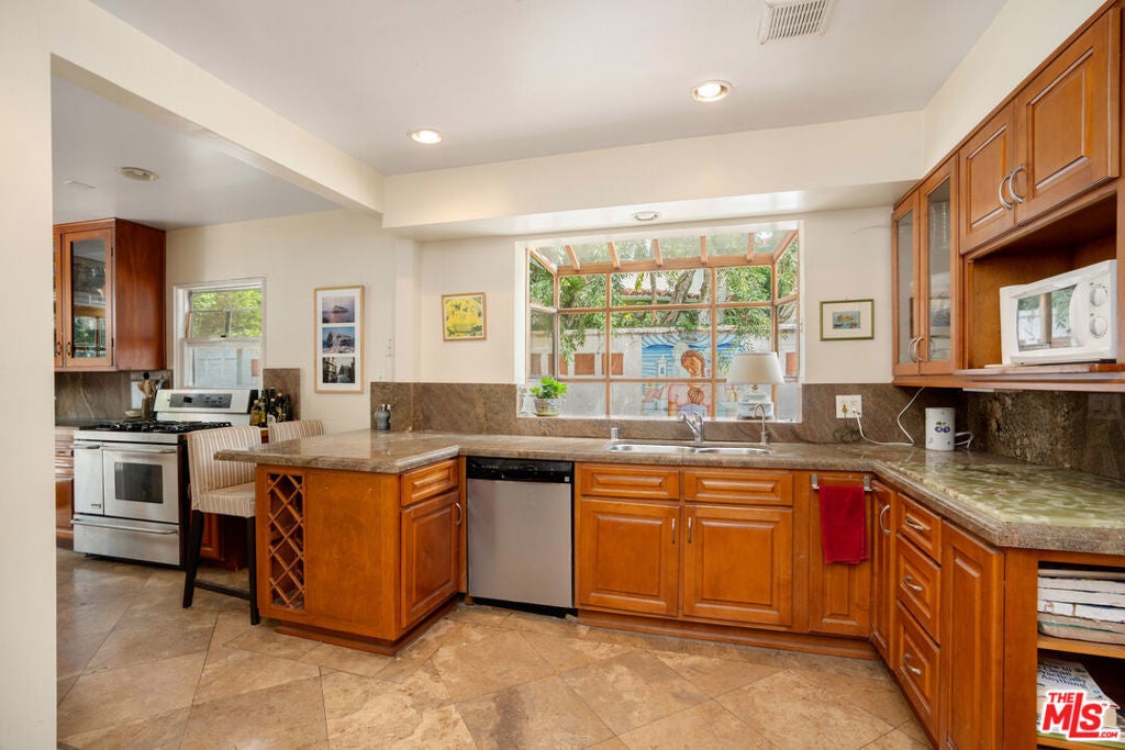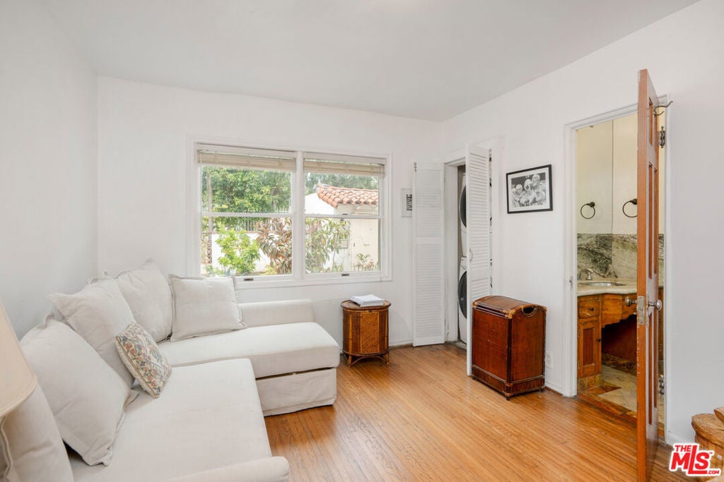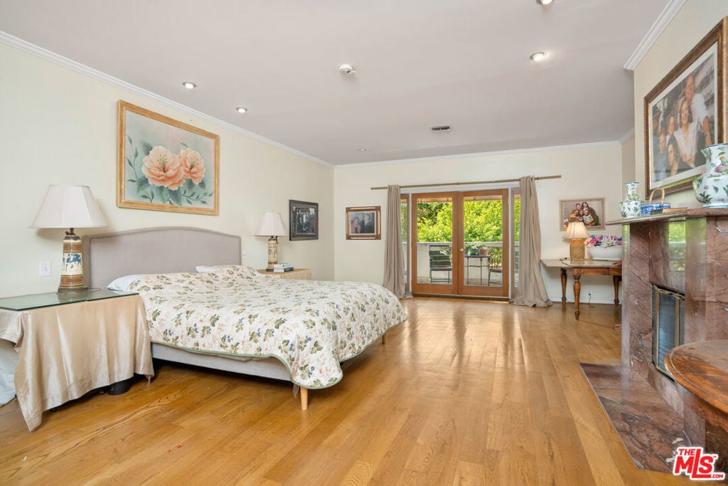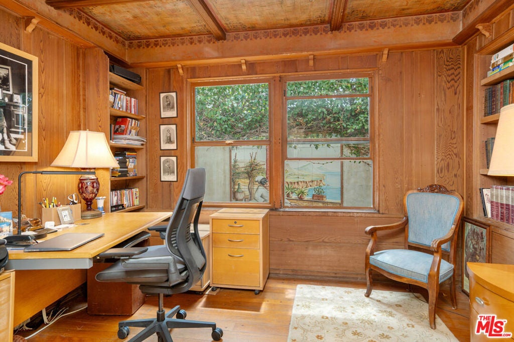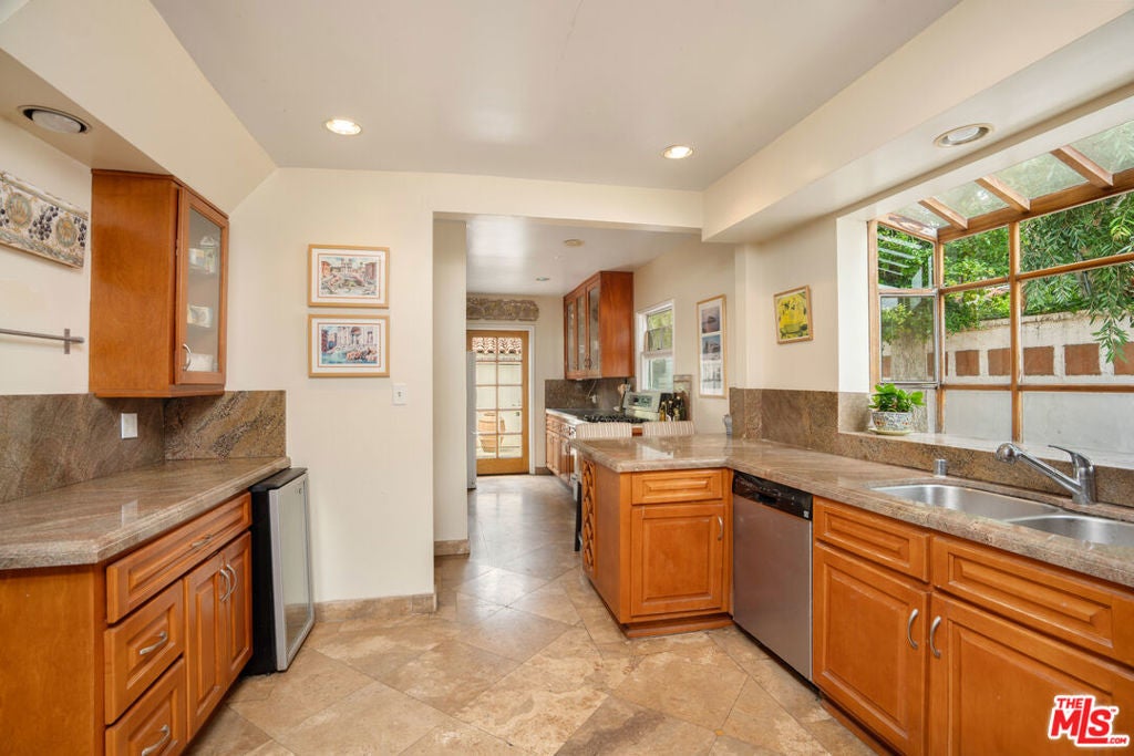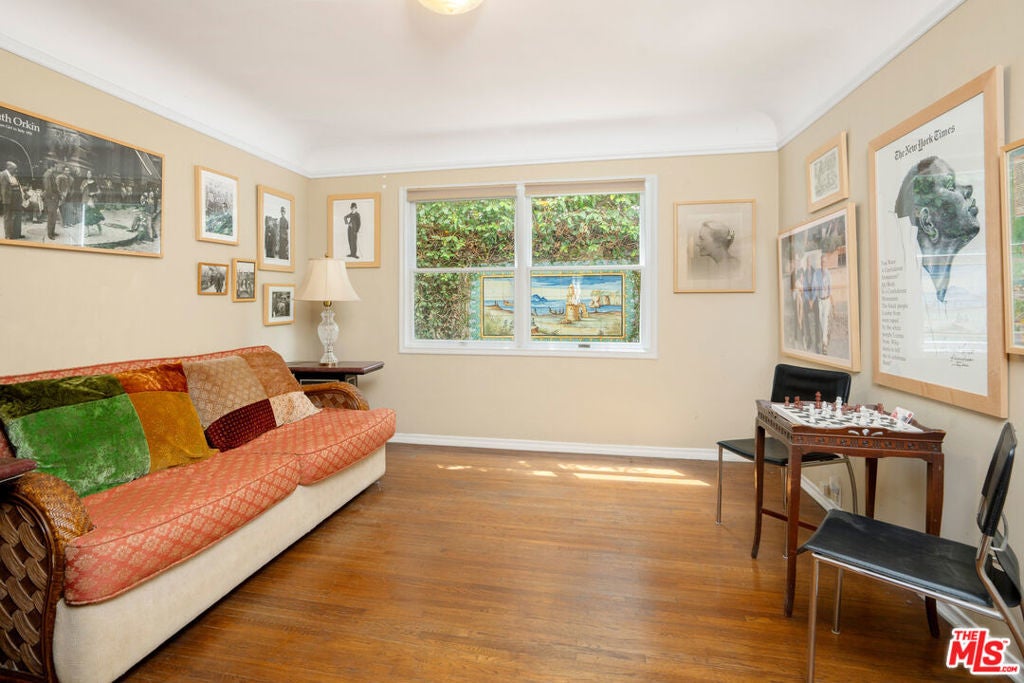 Timeless Mediterranean Elegance in Little Holmby. Nestled on a quiet, picturesque, tree-lined street, this 1930s Mediterranean residence embodies the romance of old-world craftsmanship infused with sophisticated European flair. With 5 bedrooms, 6 baths, and over 3,600 sq. ft., it is a rare offering in one of Los Angeles' most sought-after enclaves, moments from UCLA, Holmby Park, Beverly Hills, and the acclaimed Warner Avenue School. From the very first step inside, the home enchants with its warmth and detail. A private, enclosed courtyard with French doors leading from both the dining and living rooms sets the stage for effortless indoor/outdoor entertaining. Period craftsmanship is evident throughout, with soaring beamed ceilings, vintage Spanish tiles, rich hardwood floors, intricate crown and coffered moldings, and exquisite hand-painted Italian mosaic murals that elevate the home's artistry, stunningly showcased through several windows in the home. The step-down living room, anchored by a grand fireplace beneath exposed beams, exudes character, while the adjacent formal dining room offers timeless elegance for gatherings. The chef's kitchen combines function and charm, complete with stainless steel appliances, granite countertops, multiple prep areas, and a wine cooler. Additional living spaces include a wood-paneled study, a game room, and a refined den...all oriented toward the home's exquisite exterior details and natural light. The lower level includes two bedrooms, one a generous mini-primary with vintage-tiled bath, the other a cozy en-suite ideal for guests or staff. A sunlit staircase leads to the upper level, where the primary suite reveals its own fireplace, voluminous walk-in closet, spa-inspired bath, and a covered balcony overlooking serene treetops...a perfect way to start any day. A secondary upstairs en-suite bedroom completes the private wing. The hallway has an incredible bookcase to house all your favorite classics. At the rear, a large, tiled patio invites al fresco dining and festive gatherings, surrounded by unique tile artistry. The converted garage/guest house, complete with bath, serves as a versatile space for guests or as a home office, with ADU approval in process. This home is more than a residence it is a piece of architectural history. Beyond its enduring beauty, it offers an unrivaled location near UCLA, Westwood Village, Bel Air, Century City Mall, Beverly Hills, and Holmby Park, combining tranquility with world-class convenience.