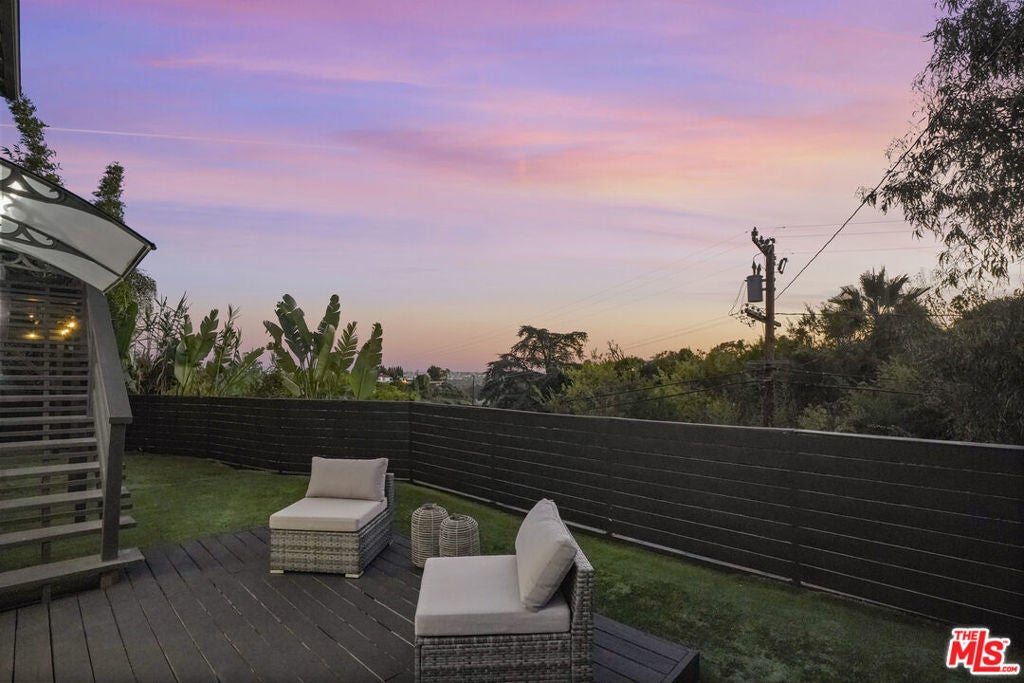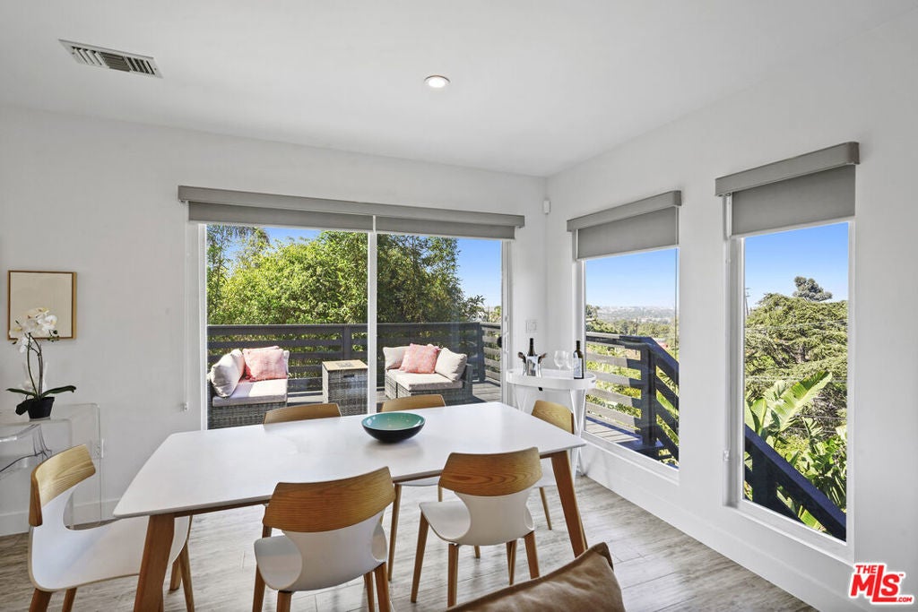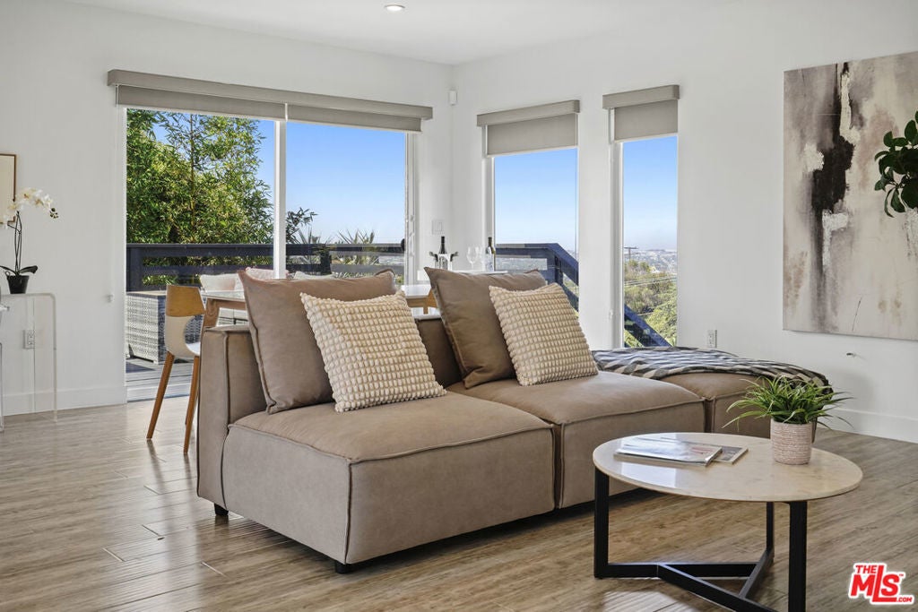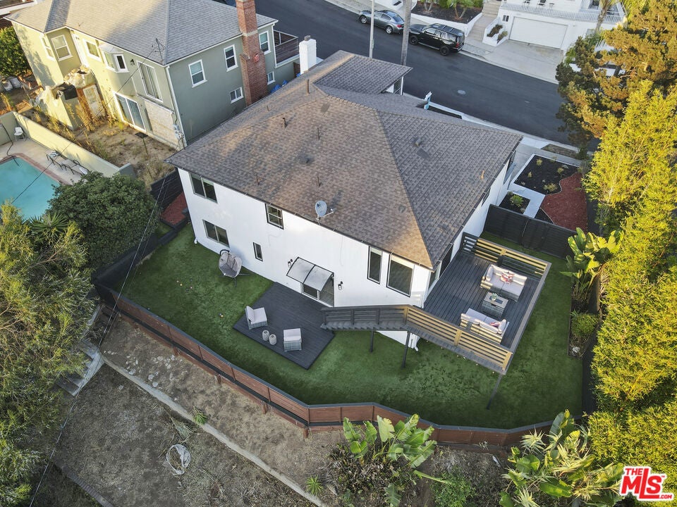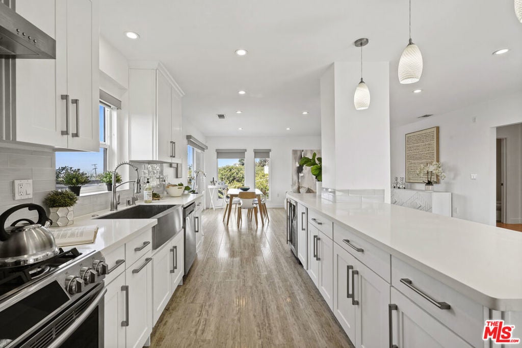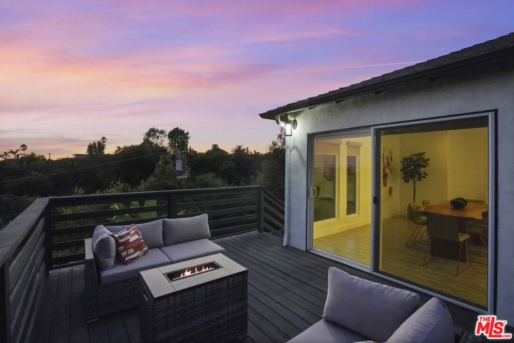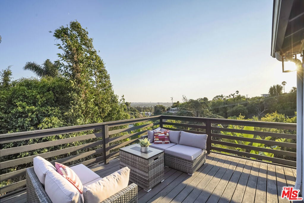 JUST REDUCED!!Picturesque Windsor Hills stunner, with impressive panoramic city to coastline views, and peek-a-boo of the Pacific ocean and Catalina Island. Located on the prestigious Onacrest Drive, this home has been thoughtfully remodeled for buyers who love to entertain and enjoy the indoor-outdoor California lifestyle. A swank new door greets you on the stylish entry patio that has views of the surrounding city lights and treetops. You'll appreciate the clever floor plan that places the main living areas on the 2nd floor to take advantage of the stellar views over the hill. Formal Living Room with elegant white tiled fireplace and 2 bright large windows letting in tons of natural light. Featuring an open and welcoming white kitchen with large island, quartz counters, and plenty of storage. All stainless steel appliances incl French door refrigerator & separate wine/beverage fridge. Flexible dining area perfect for large gatherings and holiday meals. The dining area has direct access to the balcony deck and cozy fire pit. Enjoy a glass of wine on the deck surrounded by lush greenery and panoramic sunset views. An outdoor staircase from the deck allows easy access to the backyard. There are 2 bedrooms on the entry level that share a newly remodeled full sized bathroom with walk-in shower and jetted spa tub. Downstairs you'll find a private laundry room, office nook or playspace area, and two more bedrooms both ensuite. The primary bedroom is ensuite, w/walk-in closet and direct access to it's own backyard patio. You'll also find an outdoor hot tub and plenty of space for kids and pets to play. Newly landscaped with sustainable, easy to maintain turf grass & drought tolerant plants ideal for the Southern California climate. Multiple Terraces below backyard are perfect for gardening, hobbies or future potential ADU. Attached 2 car garage with direct access and EV charger. Many upgrades incl New LED Lighting, Tankless Water Heater, Water Softener, Ring Doorbell and Alarm System. This home ideally located and is convenient walking distance to many shops including Hilltop Coffee Co, Simply Wholesome Grocery as well as Kenneth Hahn Park and beautiful local walking trailheads. Easy access to beaches, freeways, and the new Sofi Stadium. This updated classic Windsor Hills dream property is stylish, modern, mindful and checks all the boxes.