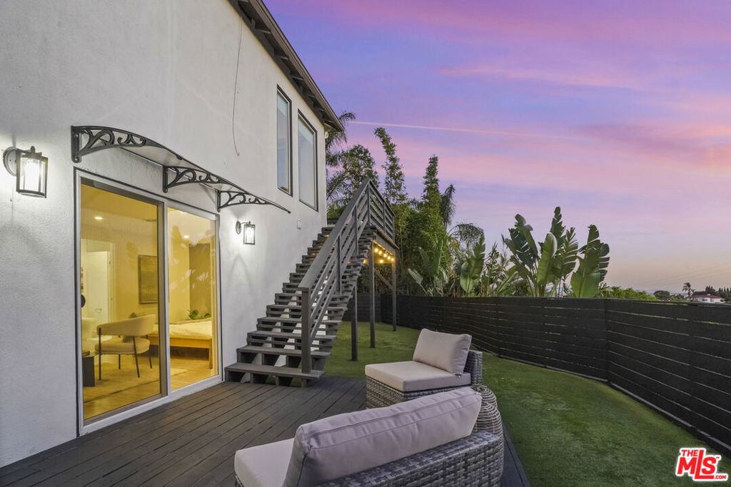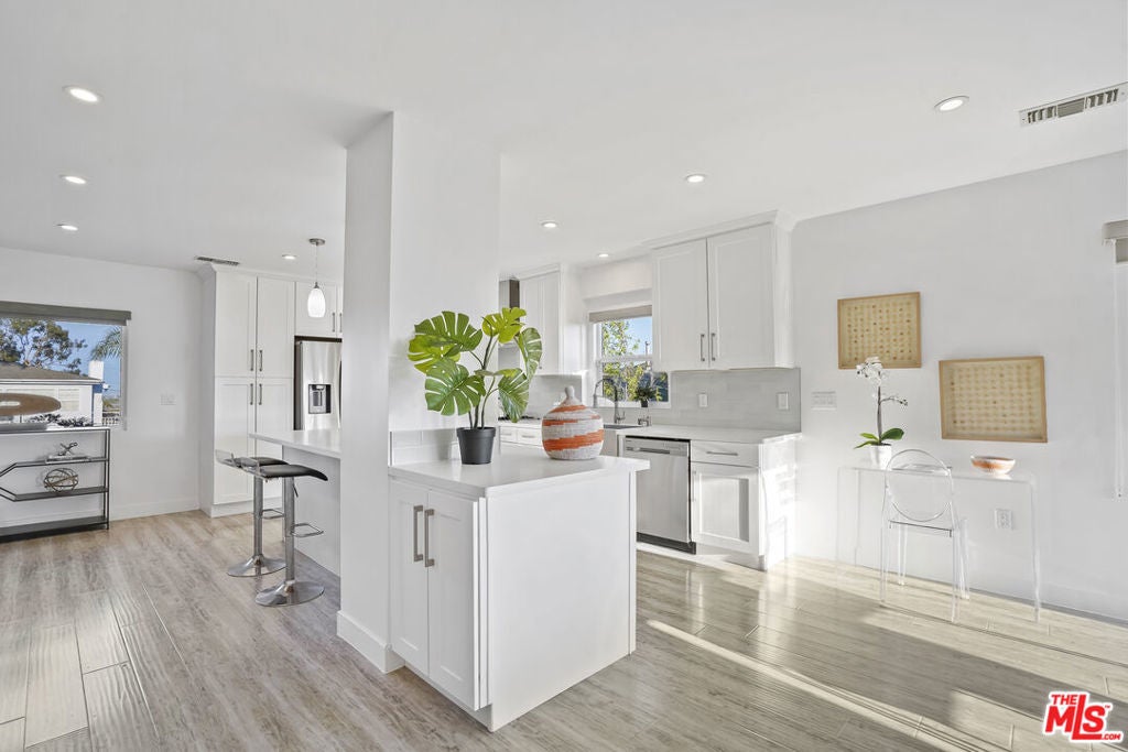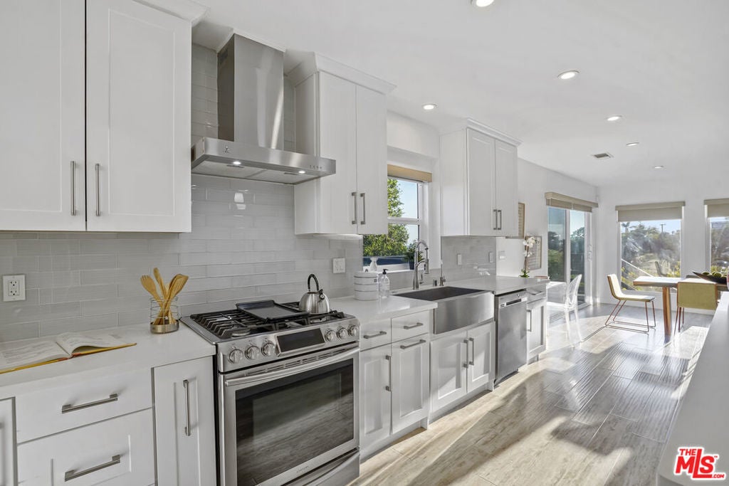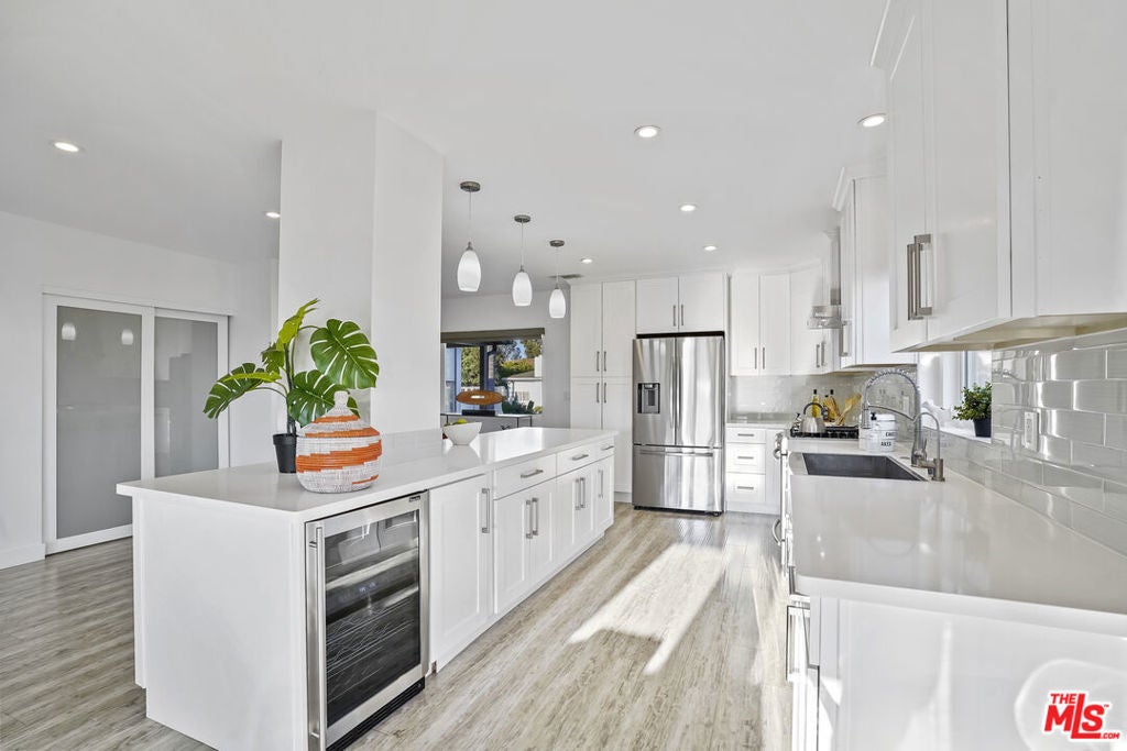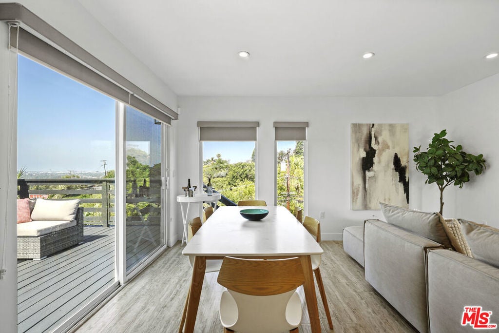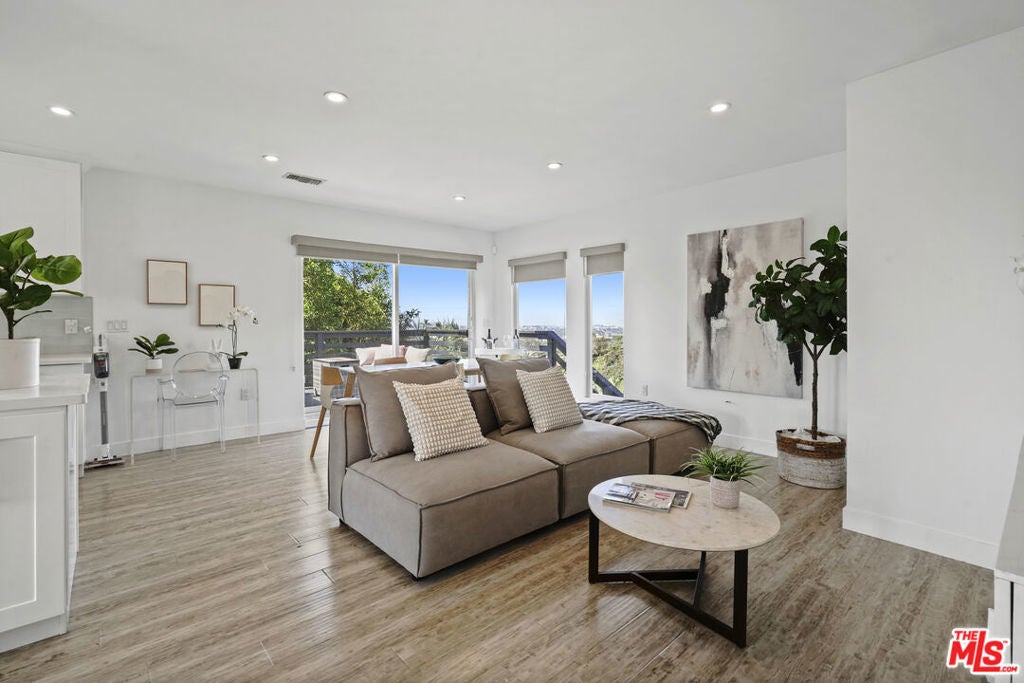 JUST REDUCED!!Picturesque Windsor Hills stunner, with impressive panoramic city to coastline views, and peek-a-boo of the Pacific ocean and Catalina Island. Located on the prestigious Onacrest Drive, this home has been thoughtfully remodeled for buyers who love to entertain and enjoy the indoor-outdoor California lifestyle. A swank new door greets you on the stylish entry patio that has views of the surrounding city lights and treetops. You'll appreciate the clever floor plan that places the main living areas on the 2nd floor to take advantage of the stellar views over the hill. Formal Living Room with elegant white tiled fireplace and 2 bright large windows letting in tons of natural light. Featuring an open and welcoming white kitchen with large island, quartz counters, and plenty of storage. All stainless steel appliances incl French door refrigerator & separate wine/beverage fridge. Flexible dining area perfect for large gatherings and holiday meals. The dining area has direct access to the balcony deck and cozy fire pit. Enjoy a glass of wine on the deck surrounded by lush greenery and panoramic sunset views. An outdoor staircase from the deck allows easy access to the backyard. There are 2 bedrooms on the entry level that share a newly remodeled full sized bathroom with walk-in shower and jetted spa tub. Downstairs you'll find a private laundry room, office nook or playspace area, and two more bedrooms both ensuite. The primary bedroom is ensuite, w/walk-in closet and direct access to it's own backyard patio. You'll also find an outdoor hot tub and plenty of space for kids and pets to play. Newly landscaped with sustainable, easy to maintain turf grass & drought tolerant plants ideal for the Southern California climate. Multiple Terraces below backyard are perfect for gardening, hobbies or future potential ADU. Attached 2 car garage with direct access and EV charger. Many upgrades incl New LED Lighting, Tankless Water Heater, Water Softener, Ring Doorbell and Alarm System. This home ideally located and is convenient walking distance to many shops including Hilltop Coffee Co, Simply Wholesome Grocery as well as Kenneth Hahn Park and beautiful local walking trailheads. Easy access to beaches, freeways, and the new Sofi Stadium. This updated classic Windsor Hills dream property is stylish, modern, mindful and checks all the boxes.