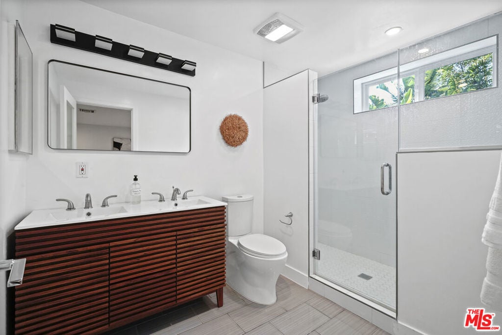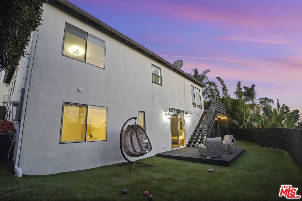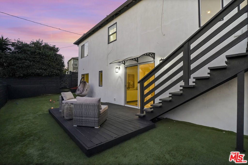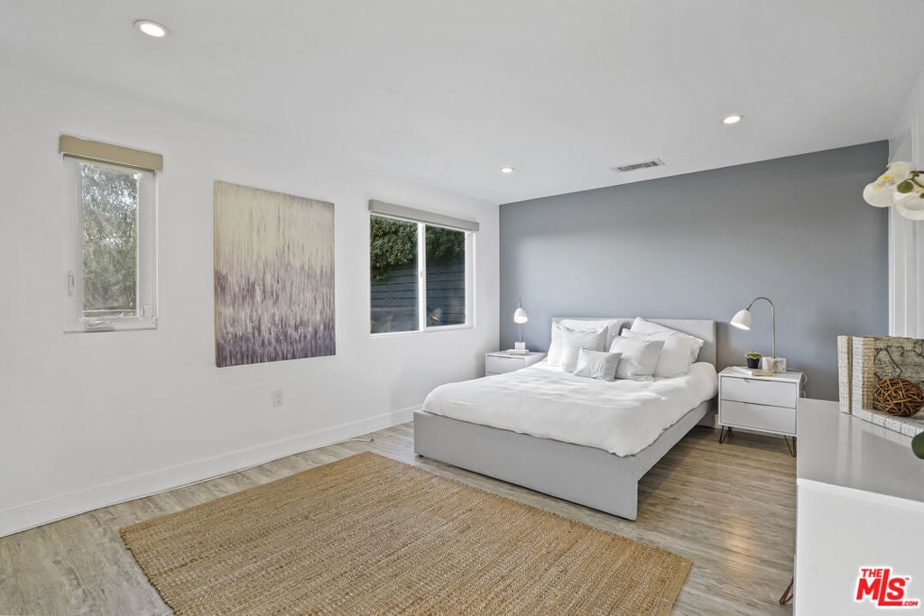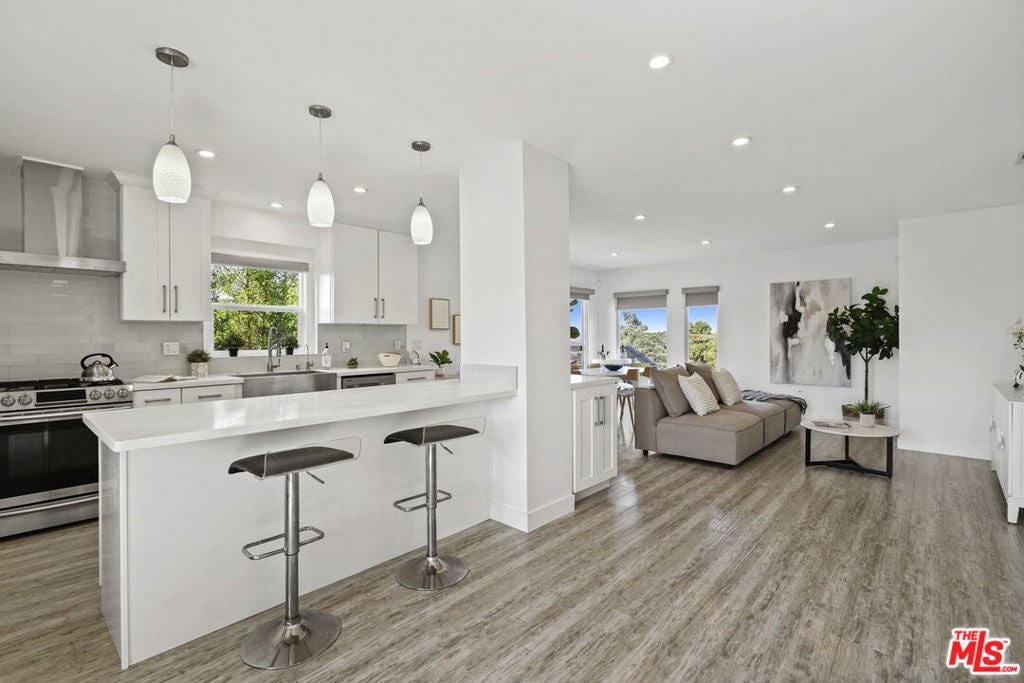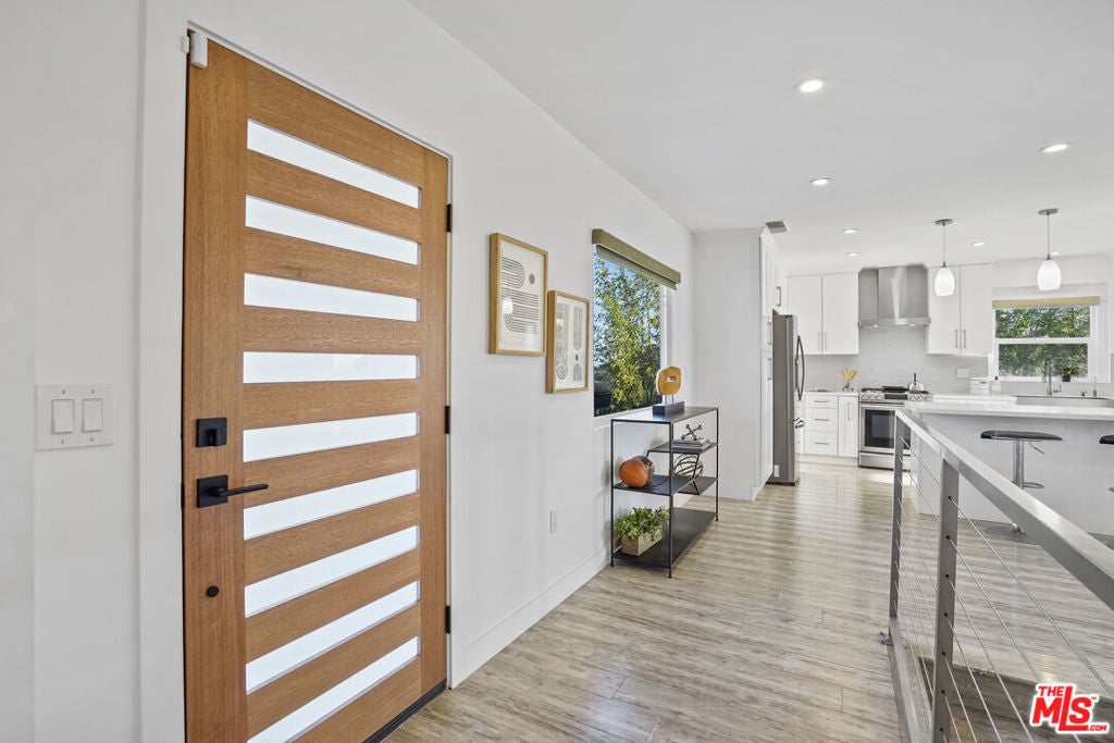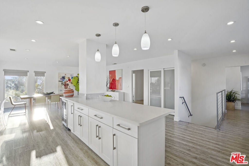 JUST REDUCED!!Picturesque Windsor Hills stunner, with impressive panoramic city to coastline views, and peek-a-boo of the Pacific ocean and Catalina Island. Located on the prestigious Onacrest Drive, this home has been thoughtfully remodeled for buyers who love to entertain and enjoy the indoor-outdoor California lifestyle. A swank new door greets you on the stylish entry patio that has views of the surrounding city lights and treetops. You'll appreciate the clever floor plan that places the main living areas on the 2nd floor to take advantage of the stellar views over the hill. Formal Living Room with elegant white tiled fireplace and 2 bright large windows letting in tons of natural light. Featuring an open and welcoming white kitchen with large island, quartz counters, and plenty of storage. All stainless steel appliances incl French door refrigerator & separate wine/beverage fridge. Flexible dining area perfect for large gatherings and holiday meals. The dining area has direct access to the balcony deck and cozy fire pit. Enjoy a glass of wine on the deck surrounded by lush greenery and panoramic sunset views. An outdoor staircase from the deck allows easy access to the backyard. There are 2 bedrooms on the entry level that share a newly remodeled full sized bathroom with walk-in shower and jetted spa tub. Downstairs you'll find a private laundry room, office nook or playspace area, and two more bedrooms both ensuite. The primary bedroom is ensuite, w/walk-in closet and direct access to it's own backyard patio. You'll also find an outdoor hot tub and plenty of space for kids and pets to play. Newly landscaped with sustainable, easy to maintain turf grass & drought tolerant plants ideal for the Southern California climate. Multiple Terraces below backyard are perfect for gardening, hobbies or future potential ADU. Attached 2 car garage with direct access and EV charger. Many upgrades incl New LED Lighting, Tankless Water Heater, Water Softener, Ring Doorbell and Alarm System. This home ideally located and is convenient walking distance to many shops including Hilltop Coffee Co, Simply Wholesome Grocery as well as Kenneth Hahn Park and beautiful local walking trailheads. Easy access to beaches, freeways, and the new Sofi Stadium. This updated classic Windsor Hills dream property is stylish, modern, mindful and checks all the boxes.