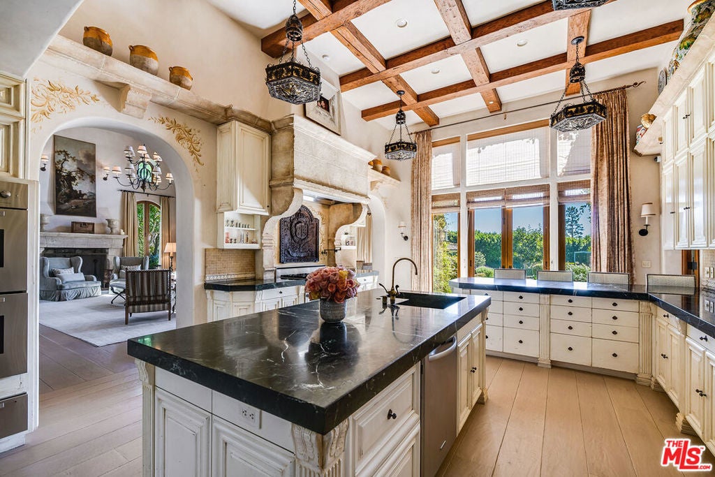 The Leonard Estate stands as the most important legacy property on the Westside - an extraordinary Italian villa of rare scale and pedigree, available once in a generation. Envisioned by world-renowned architect Richard Landry, this Florentine-inspired masterpiece was crafted with only the finest materials and exudes timeless elegance. Perched on nearly two acres of expansive, park-like grounds within the prestigious Palisades Riviera, the estate is hidden behind double gates, towering hedges, and a long private driveway, ensuring complete privacy and security. The ivy-clad facade opens to a grand motor court and sets the stage for over 16,700 square feet of exquisitely designed interiors. Vaulted ceilings, generous proportions, and seamless indoor-outdoor flow create a setting that is equally suited for intimate living or entertaining on a grand scale. The main residence features a dramatic two-story family room, a refined formal living room and dining room, a solarium, a gourmet kitchen with professional appliances and center island, and multiple wings devoted to leisure and entertaining, including a screening room, media room, and gym. There are seven bedrooms in total, with the primary suite serving as a private retreat offering a fireplace, spa-like bath, dressing rooms, and a terrace overlooking breathtaking ocean, canyon, and mountain views. The grounds are a world unto themselves: a sun-drenched oval pool and spa, lit tennis court with viewing pavilion, rolling lawns, meadow, putting green, and lush gardens framed by mature trees. A full two-story guesthouse adjacent to the pool includes a kitchen and guest accommodations, ideal for hosting visitors or poolside gatherings. The Leonard Estate is a true world-class residence that combines European romance with modern luxury, offering both sumptuous and serene living on one of the Riviera's most coveted streets.