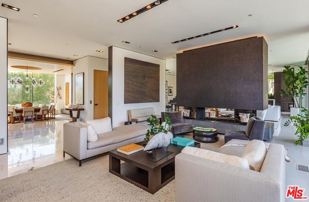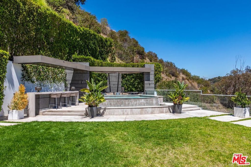 Stand-alone architectural with an enviable Bel Air Road address and unmatched City and Canyon views. Sited behind a gated driveway and mature hedgerow, privacy is optimal, while its unique hillside location delivers vast open vistas and resort-like grounds. This tri-level, light-filled, open-floor-plan contemporary boasts high ceilings, cantilevered staircases, and bold stone finishes throughout. The double-height entry, with skylight, leads to entertainer-grade living spaces, anchored by a mid-century-inspired fireplace, automated retractable glass walls, and ample wall space for discerning art collectors. The blonde wood chef's kitchen features a central low-profile oversized island flanked by grey-hued counters with pull-up seating, banks of bespoke cabinets, and top-tier appliances. Deck access through glass-paneled doors makes outside entertaining seamless.1740 Bel Air Rd boasts 7 bedrooms and 10 bathrooms. The modern wood-paneled primary suite features floor-to-ceiling windows that lead to a glass-fronted balcony, outdoor fireplace, and hilltop canyon views. Other stand-out features of the home include a 300-bottle temperature-controlled glass wine cellar, butler's pantry, a tasteful, transformative screening room with theatre-worthy drapes, wet-bar, a private studio, fully equipped gym, and elevator. Outside is host to a half-moon infinity pool and an elevated spa. The outdoor kitchen, bar, and covered patios are reached via a series of well-placed stepping stones over a verdant lawn. Off-street parking is facilitated by a driveway entrance and separate egress. A statement property with next-level amenities within a prestigious location just moments from Beverly Hills, Westwood Village, and Brentwood.