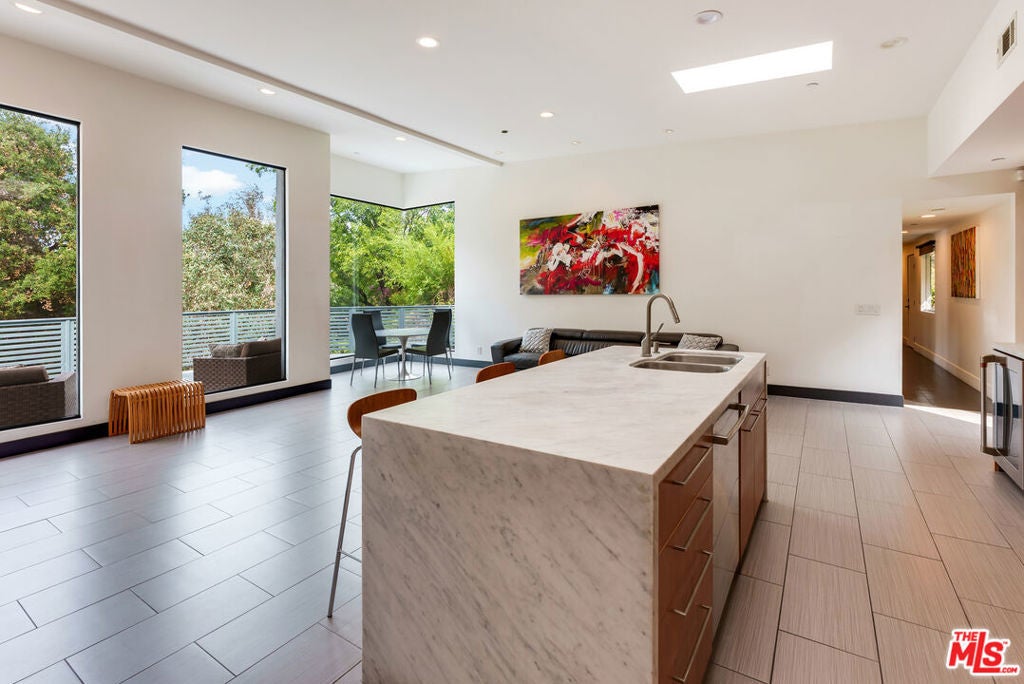 Single-Level Modern Home with Open Concept Living. Prime Location, available furnished or unfurnished. This beautifully designed single-level residence exudes modern elegance, featuring sleek lines and expansive windows that invite natural light throughout. The thoughtfully crafted open floor plan flows seamlessly from a spacious living area to a designer kitchen, complete with exquisite Carrara marble countertops, top-of-the-line stainless steel appliances, and a generous island perfect for hosting gatherings. Enjoy the serene ambiance as you take in views of lush greenery from the house and the deck, creating a relaxing atmosphere that invites you to unwind and connect with nature. Retreat to your luxurious primary suite, boasting a spa-like bathroom with a walk-in shower and a custom closet designed for ultimate convenience. An additional room offers versatile space for guests, or a home office. This home is located just minutes from Valley View Elementary School, short distance from iconic attractions like the Hollywood Bowl, Universal Studios, and world-class dining and entertainment.