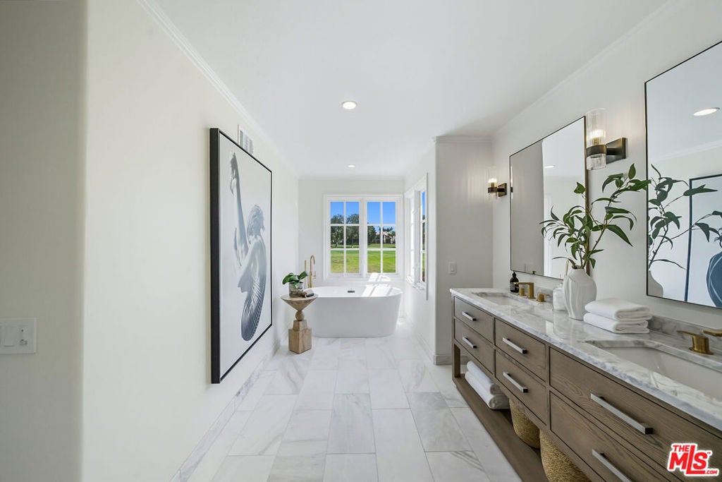 Price improvement! Let's get you a home for the holidays! This stunning and rare offering is located in the prestigious Sea Cliff, a guard-gated community with privacy, views, and pool. This fully restored and thoughtfully renovated estate blends timeless character with modern living. With nearly 4,000 square feet, 4 bedrooms up (possible 1 down used as an office) and 3.5 baths. This light-filled residence sits perfectly on the golf course, showcasing a sparkling pool, spa, and breathtaking vistas. Lovingly maintained by the same family for 38 years, this turnkey home is ready for its next chapter. Set back from the street, the entrance welcomes you with a grand walkway, lush greenery, and a calming fountain. Inside, soaring ceilings, a dramatic chandelier, and dark hardwood floors set the stage. The main level offers two distinct step-down living areas: one with arched doorways, a fireplace, a formal bar, and an interior courtyard with fountain; the other with a chic, vacation-inspired vibe and another fireplace. A formal dining room overlooks the living space, perfect for large gatherings, with French doors opening to the side yard. Also on this floor is a nanny's suite ideal for guests or multi-generational living, or an office (as shown) with built-ins, French doors, and a newly redone en suite bath. At the rear of the home, the chef's kitchen shines with white cabinetry, polished nickel fixtures, top-of-the-line appliances, and honed Calacatta marble countertops, overlooking the golf course and pool. A sunny breakfast area, spacious laundry room, powder room, and ample storage round out this level. Up the grand staircase, illuminated by a beautiful chandelier, the primary suite enjoys its own private wing. This serene retreat features a spa-like bath with a freestanding soaking tub and picturesque views, a Restoration Hardware double vanity with Signature fixtures, a large shower, fireplace, and two walk-in closets awaiting custom design. A private terrace offers yet another place to savor morning coffee or quiet moments. At the opposite end of the hall, three generous bedrooms provide flexibility for family, guests, or a lounge/playroom with access to another patio. These rooms share a spacious bathroom. Thoughtful details include a laundry chute from the upper level, delivering clothing directly to the laundry room below. The backyard is an entertainer's dream, tranquil and inviting with a pool, spa, fountains, and seamless indoor/outdoor flow overlooking one of the best 18-hole championship golf courses in SoCal. Practical features include a three-car garage (two with direct access), driveway parking for six, and ample guest parking. Beyond the gates, The Huntington Club offers optional membership with tennis, pickleball, pilates, gym, and more. Just blocks from the beach and minutes to Downtown, top-rated schools, parks, oceanfront dining, and the iconic pier. A short drive takes you to other amazing coastal towns; Long Beach, Newport, Balboa, Lido Island and Laguna. A real show stopper, everyone that comes by loves this home. You will too!