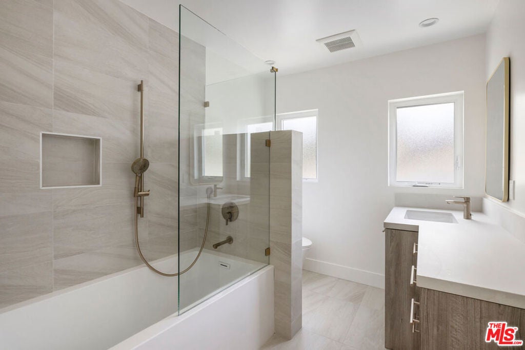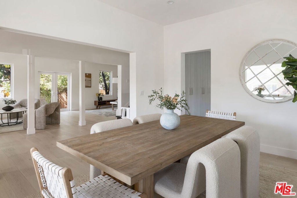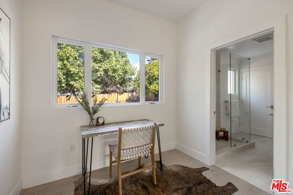 On a tree-lined street in Highland Park, this updated Craftsman is a wonderful find with abundant space and a yard filled with fruit trees. The generous layout spans two levels, featuring large windows, great sunlight, white oak floors, and period-style built-ins including a charming entry bench. The spacious living room and formal dining set the stage for entertaining; the bright kitchen has ample storage along with Bertazzoni and Thor appliances. Four bedrooms include a generous primary suite with dual closets and a luxe bath, plus a second ensuite and two more bedrooms with access to a balcony; a separate office adds flexibility for work or creative pursuits. French doors open to an expansive flat yard dotted with mature fruit trees, a peaceful setting for al fresco dining and barbecues. Amenities include AC/heat and tandem parking. The great location puts you close to Little Beast, Amara Kitchen, Trader Joe's, and all the energy of nearby Eagle Rock and Highland Park.
